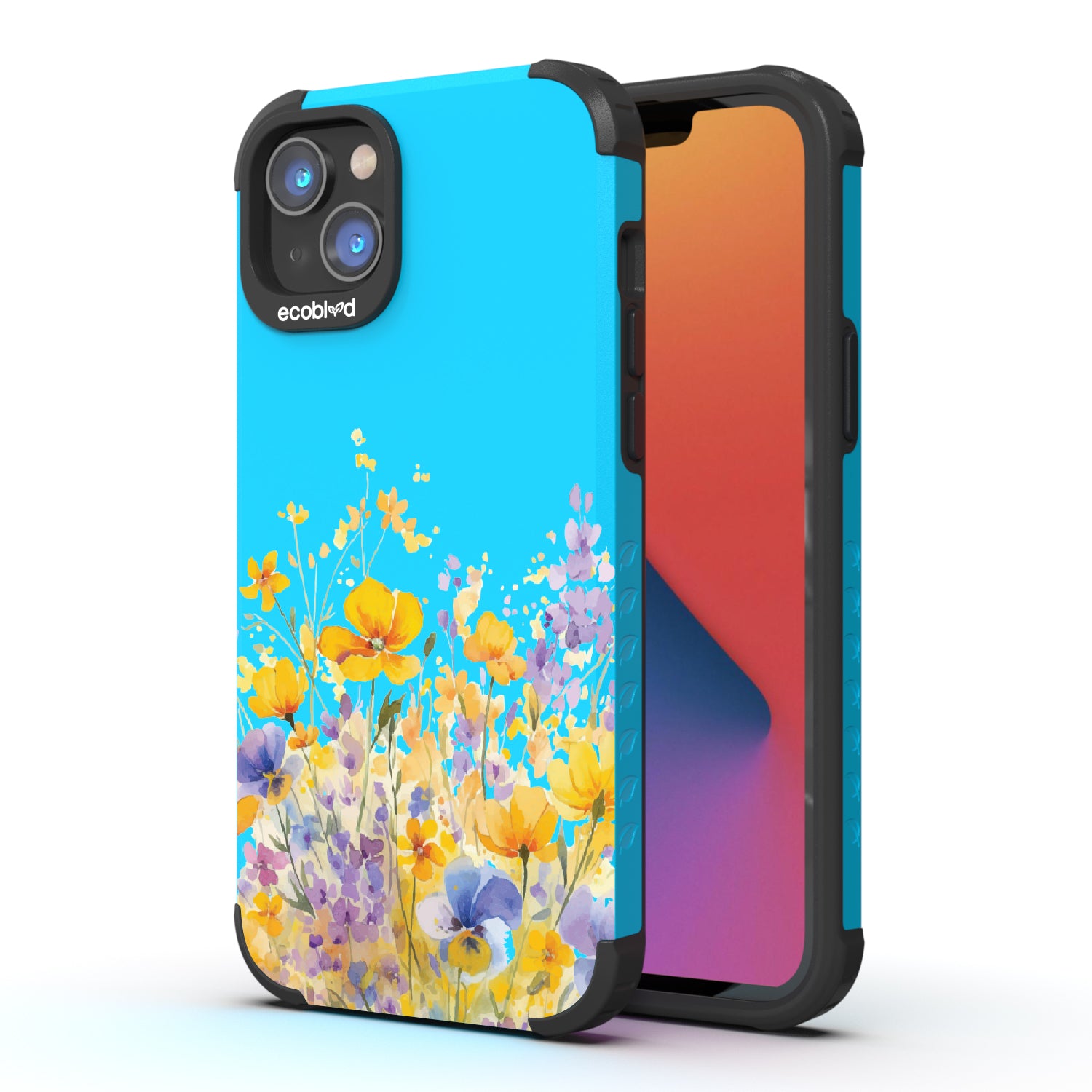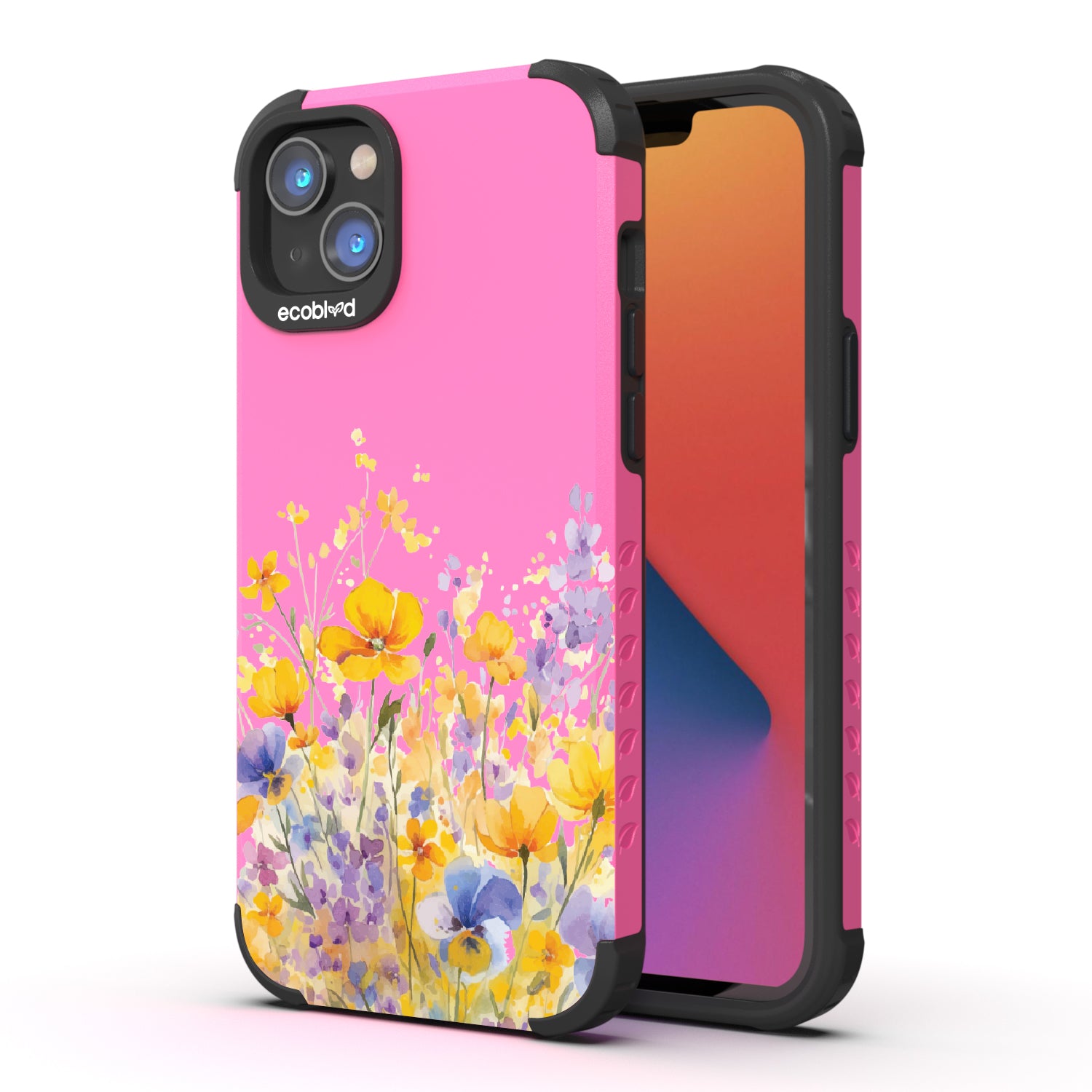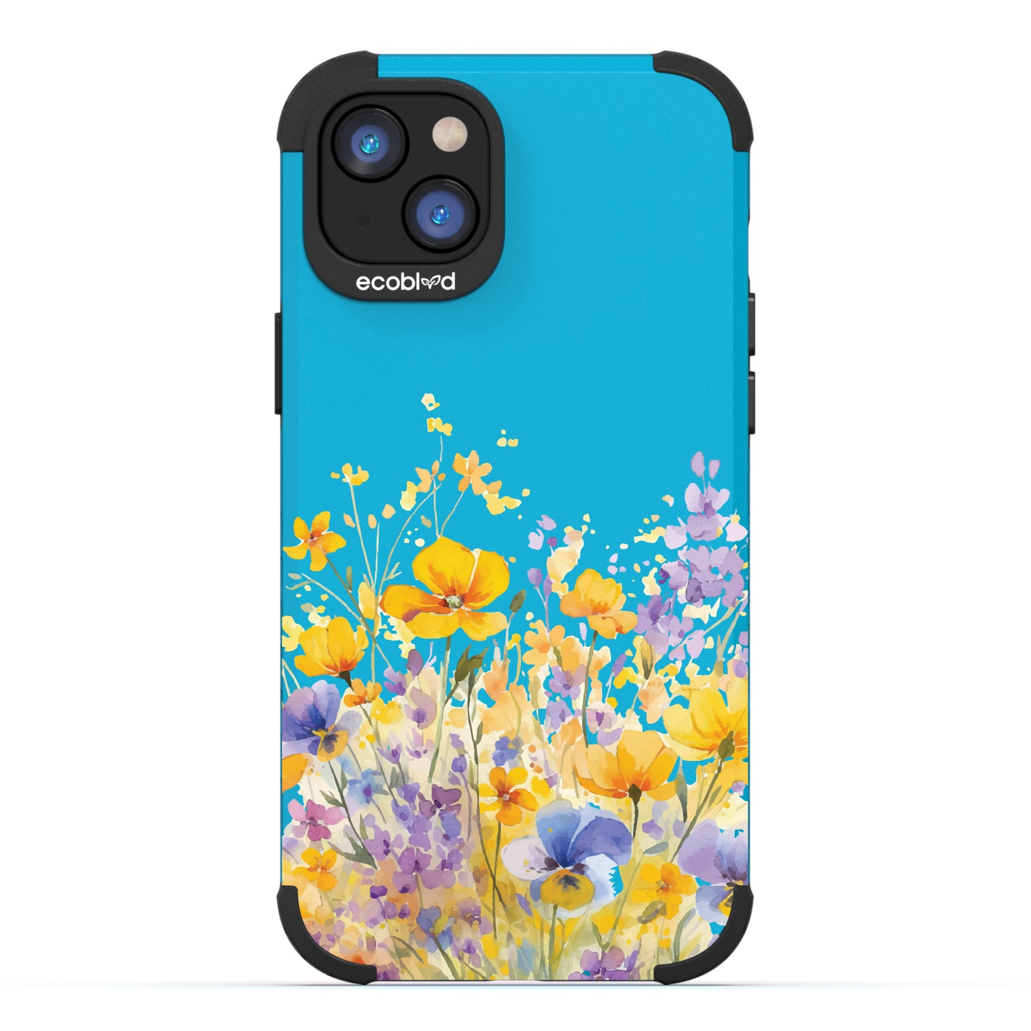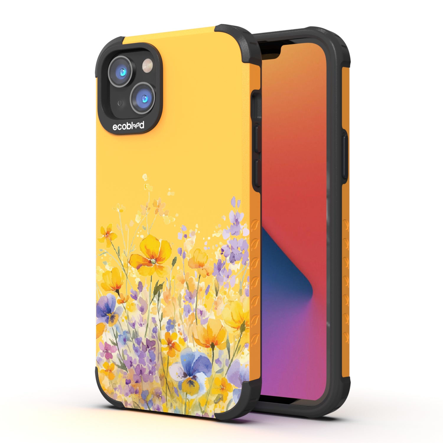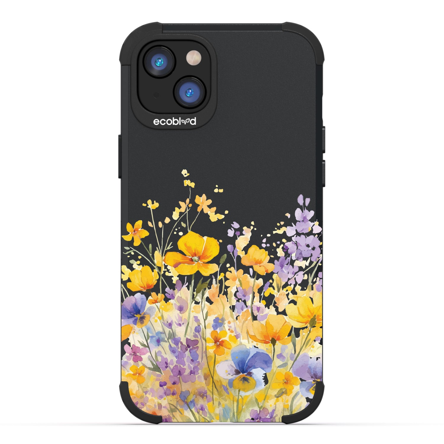 A moment in the light never looked so wild. The Meadowlight design on our Mojave rugged and compostable iPhone 14 Plus case lets soft florals run free in a watercolor wash of gold and lavender. A design that glows like a field at its most unfiltered.