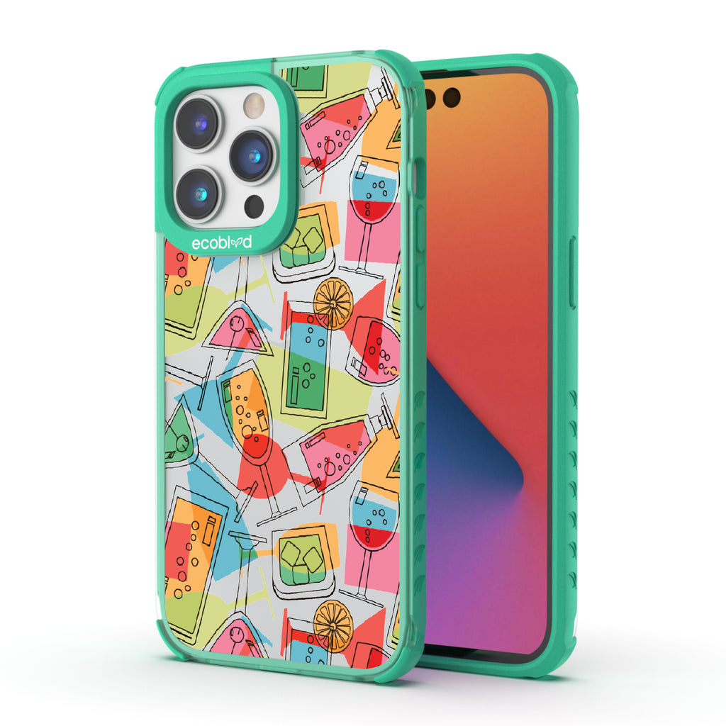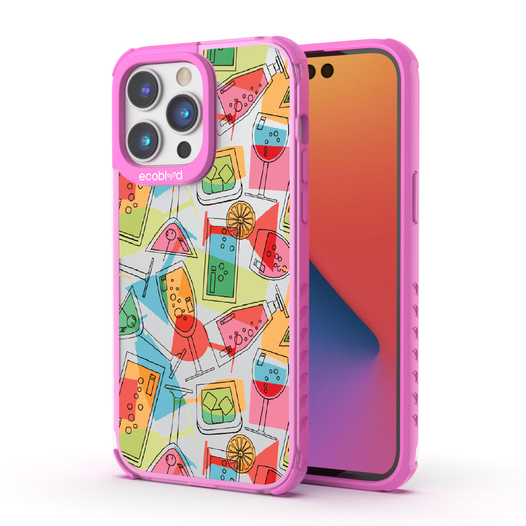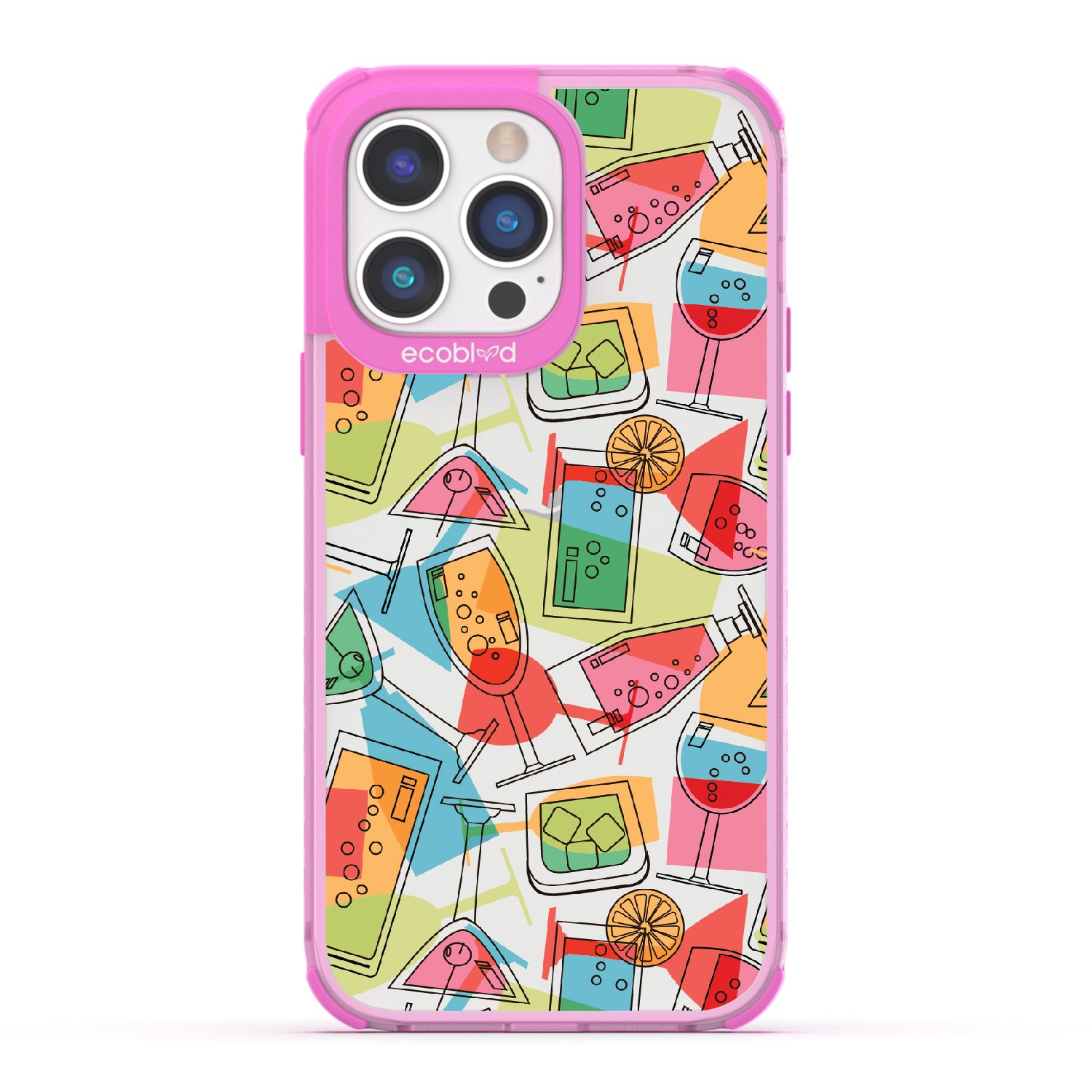 It's always party time with the 5 O'clock Somewhere design on our Laguna clear iPhone 14 Pro case. This lively design serves up a vibrant concoction of martini, cocktail, and other lively drinks, capturing the summertime spirit. Whenever and wherever you are, let loose, relax, and kick back. It's time to raise a glass, toast to good times, and make your phone the life of the party!