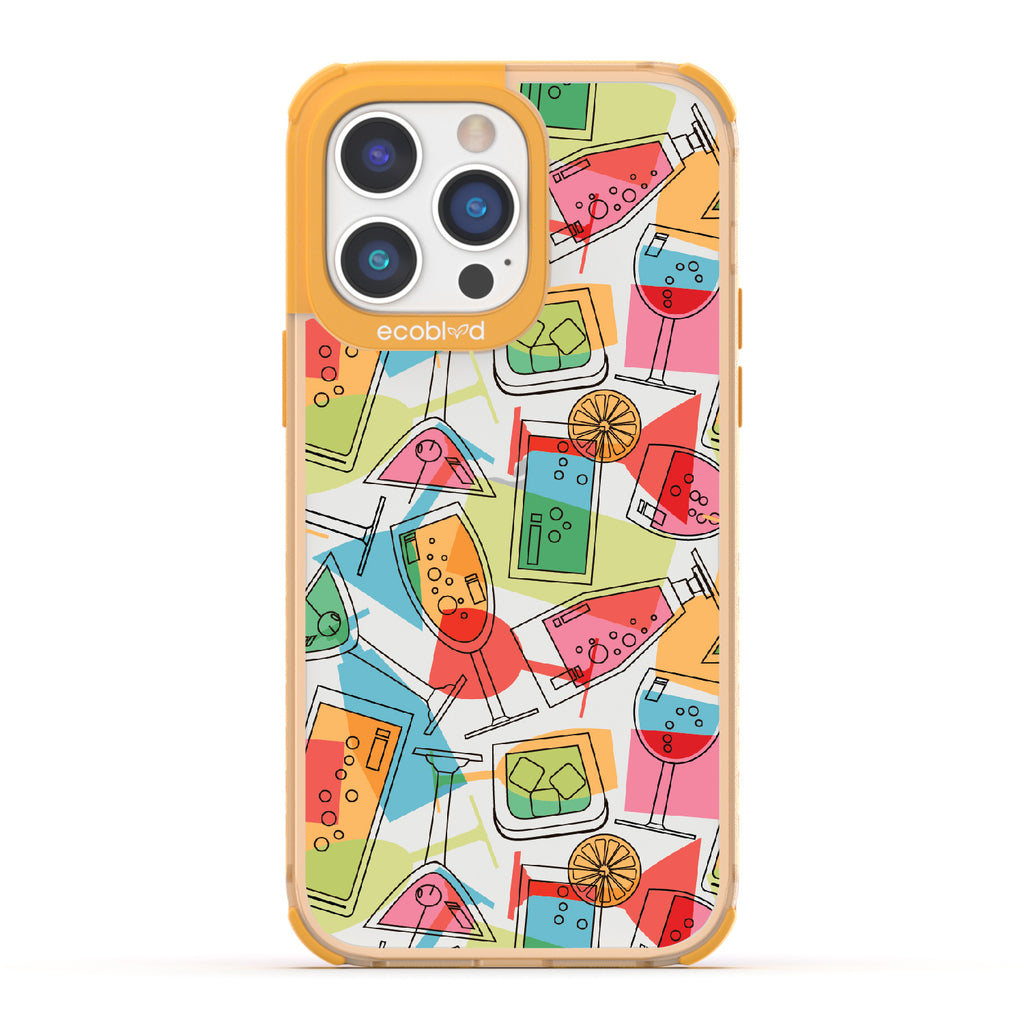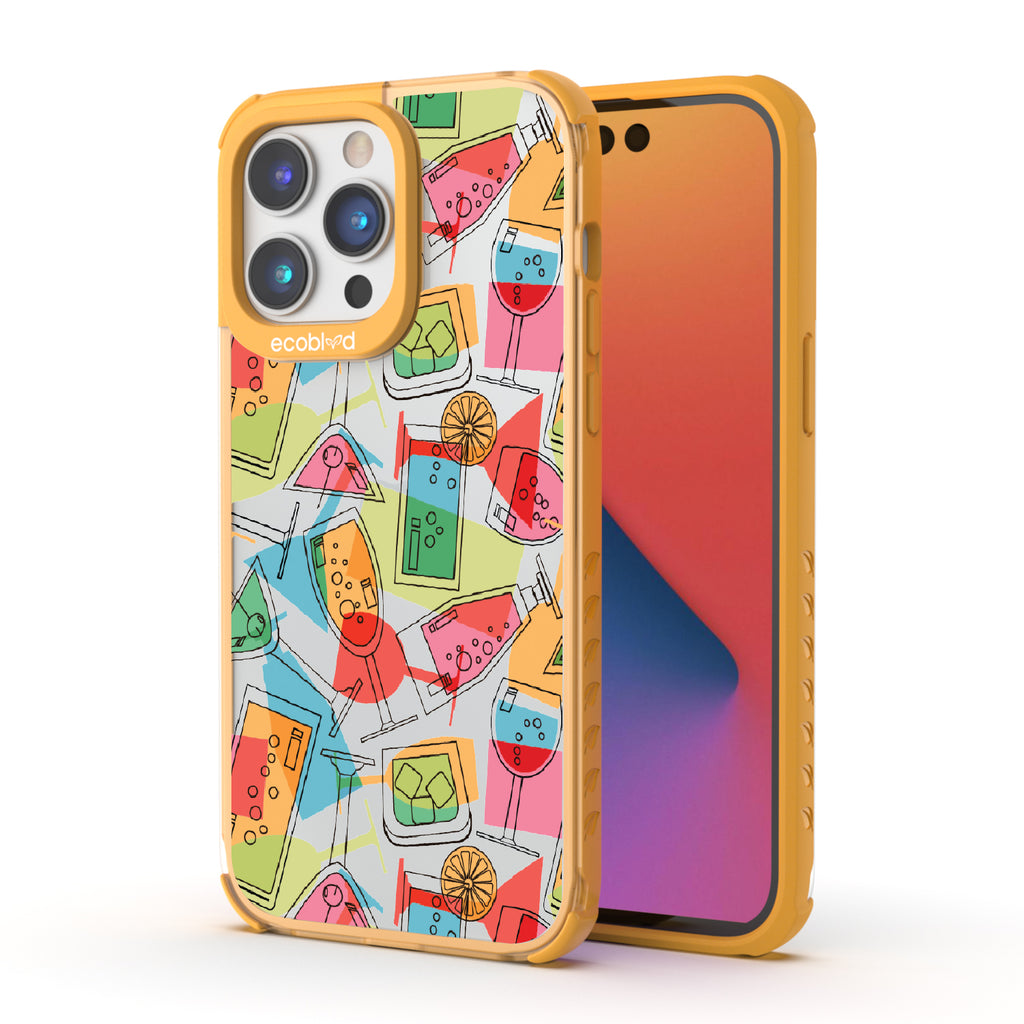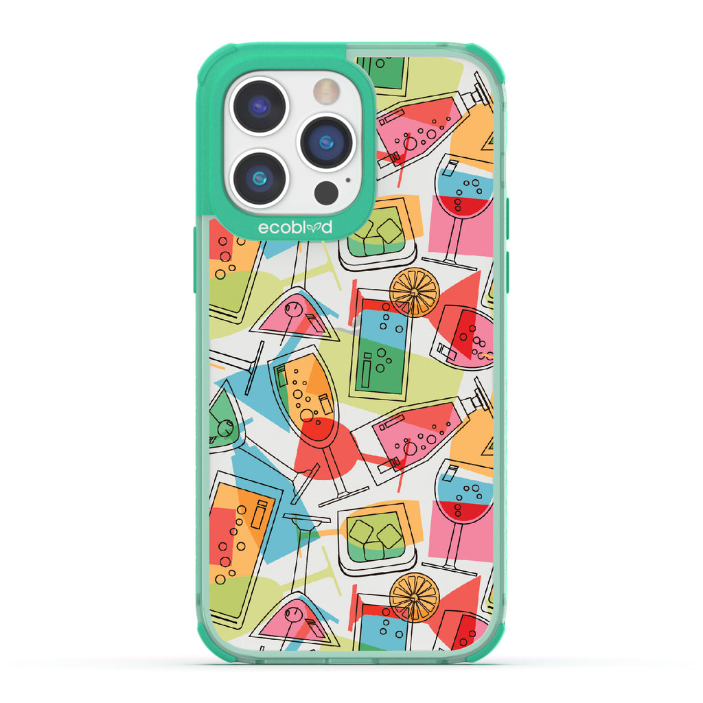 It's always party time with the 5 O'clock Somewhere design on our Laguna clear iPhone 14 Pro case. This lively design serves up a vibrant concoction of martini, cocktail, and other lively drinks, capturing the summertime spirit. Whenever and wherever you are, let loose, relax, and kick back. It's time to raise a glass, toast to good times, and make your phone the life of the party!