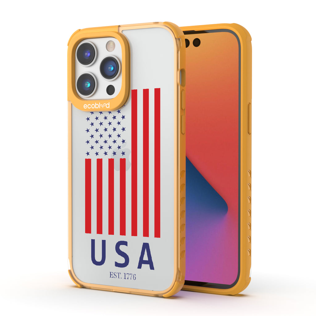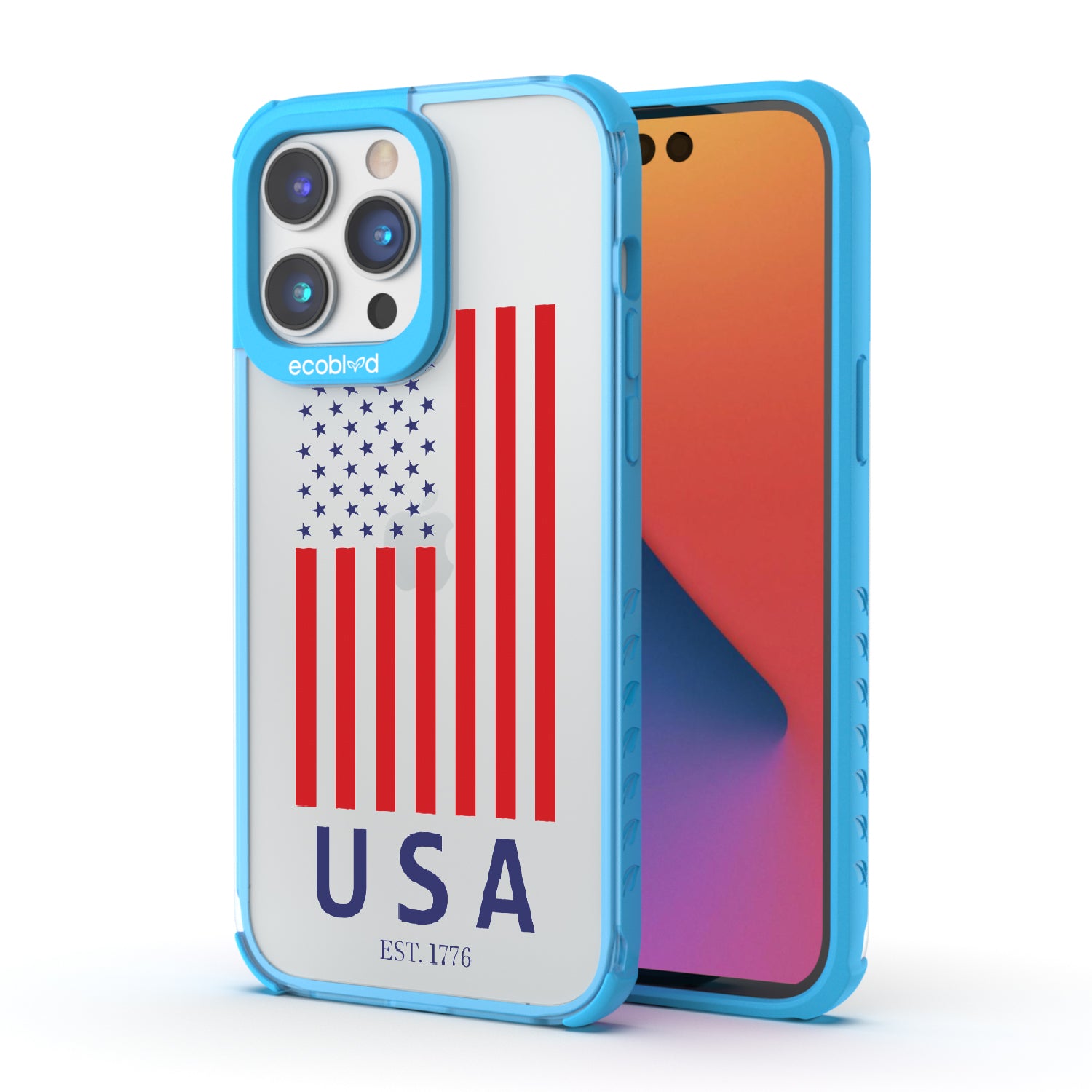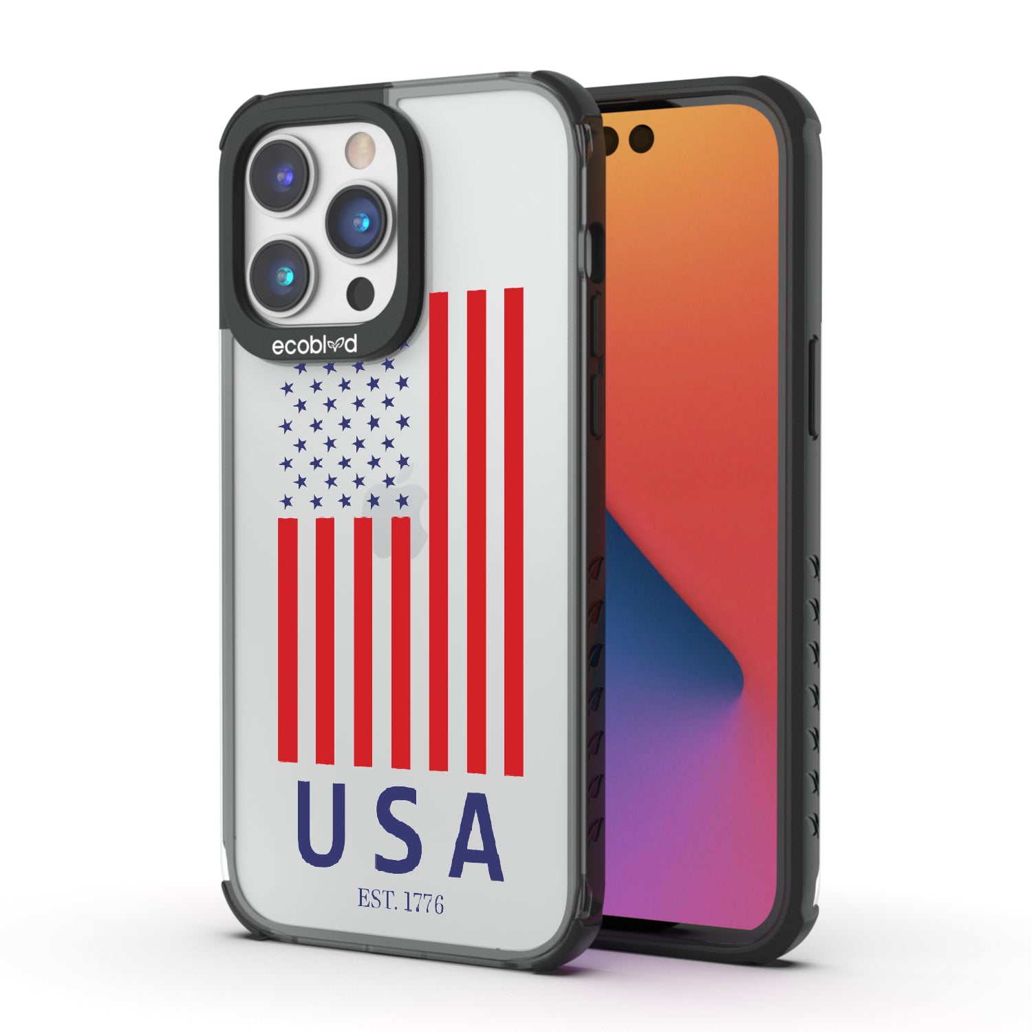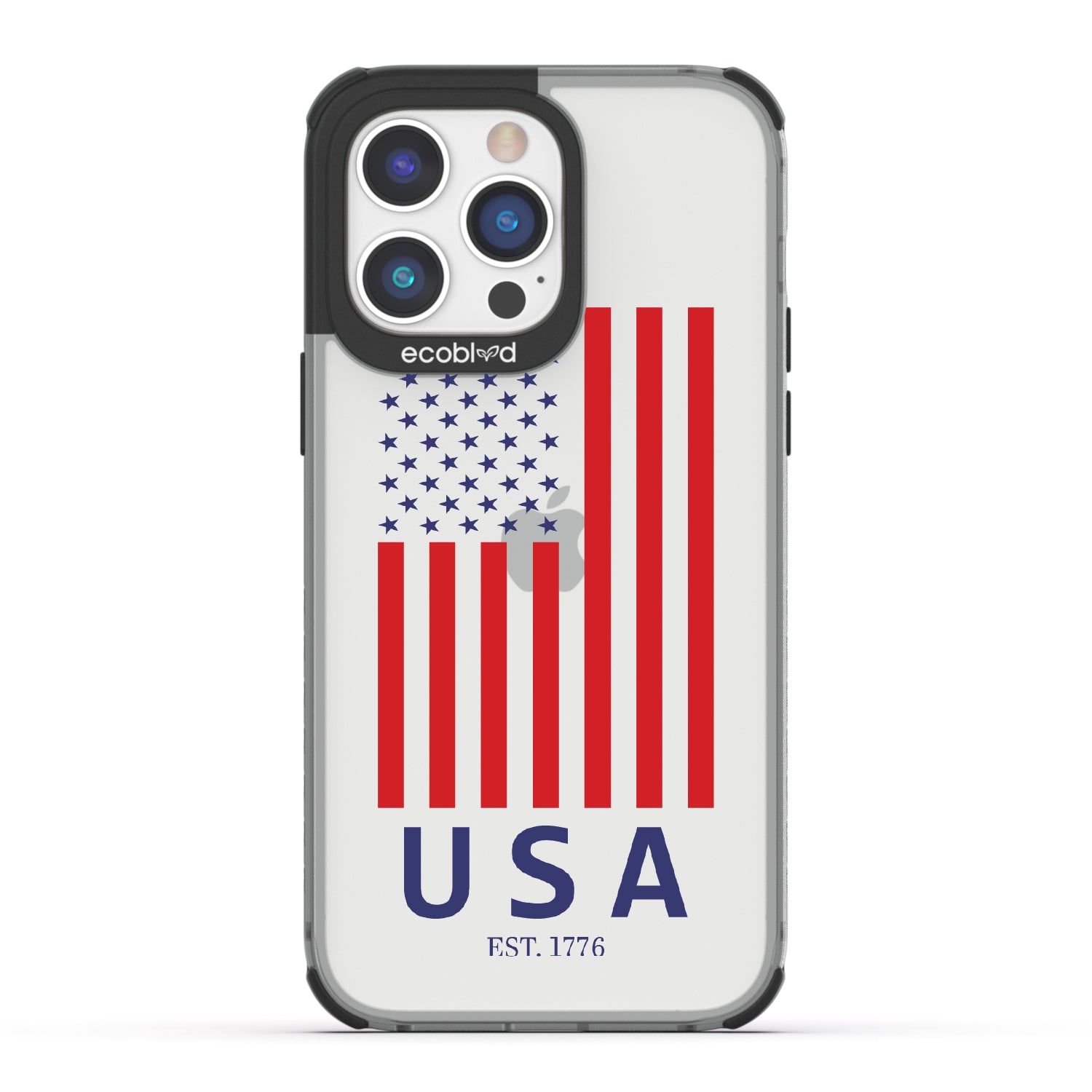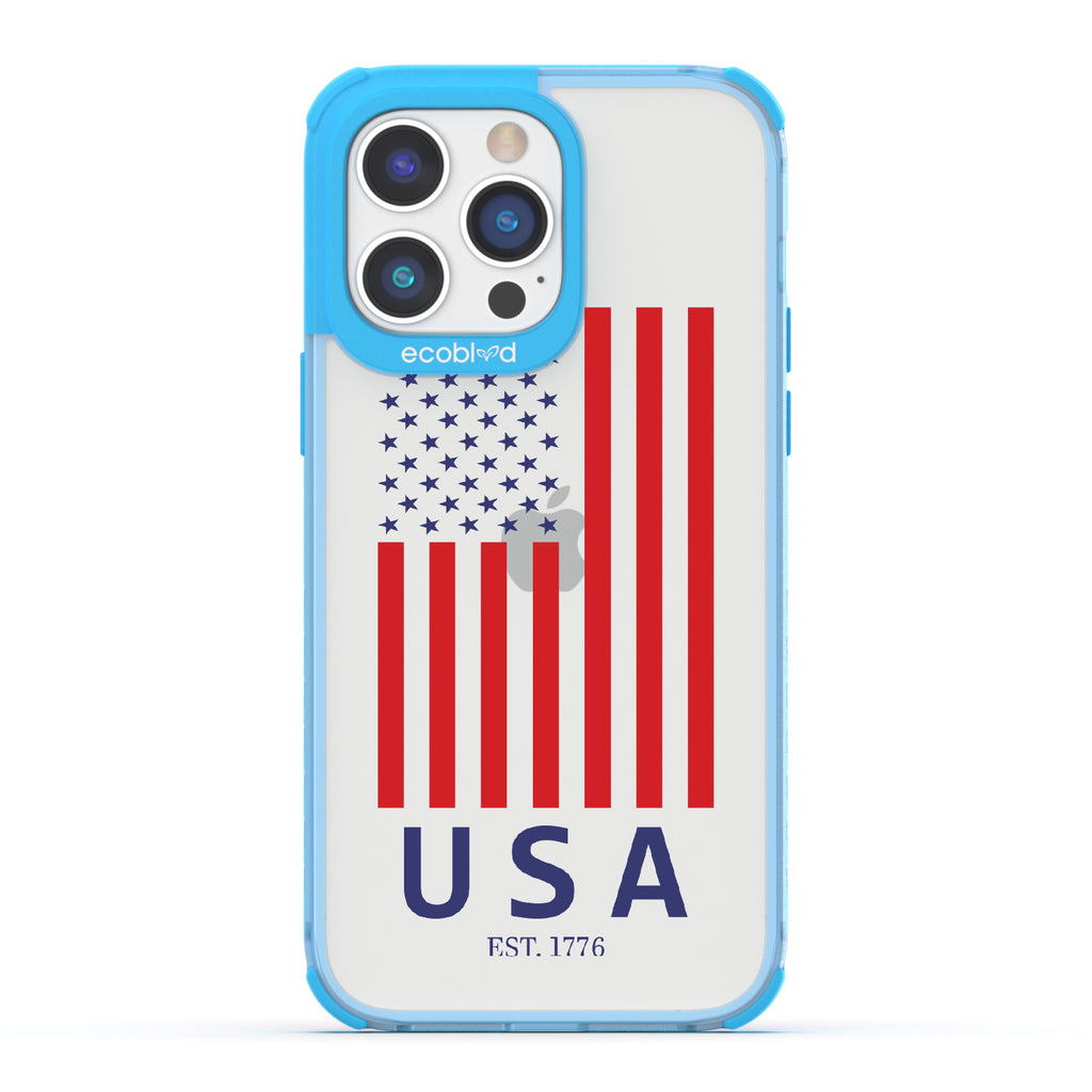 Let freedom ring loud all year long with the EST 1776 design on our Laguna clear iPhone 14 Pro phone case. This design showcases the iconic stars and stripes, along with "USA" and "EST. 1776," making it the perfect accessory for all patriotic festivities and beyond.