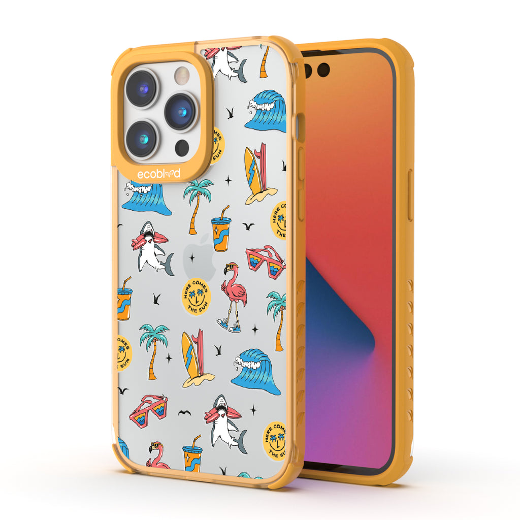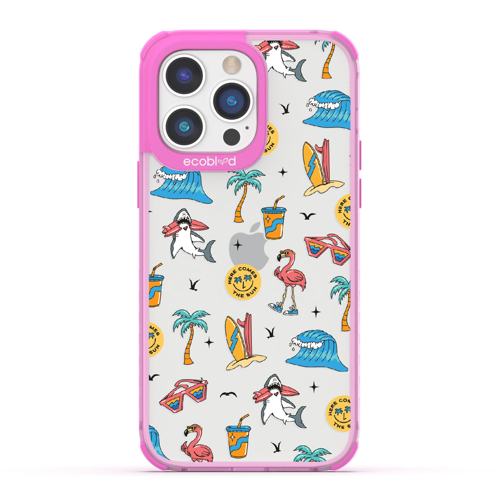 Slip on your flip-flops, grab your shades, and let the Here Comes The Sun design on our Laguna clear iPhone 14 Pro phone case complete your sun-soaked style. From sunrise to sunset, it brightens your world, just like the summer sun. Here comes the fun, so make sure your phone shines wherever you roam.