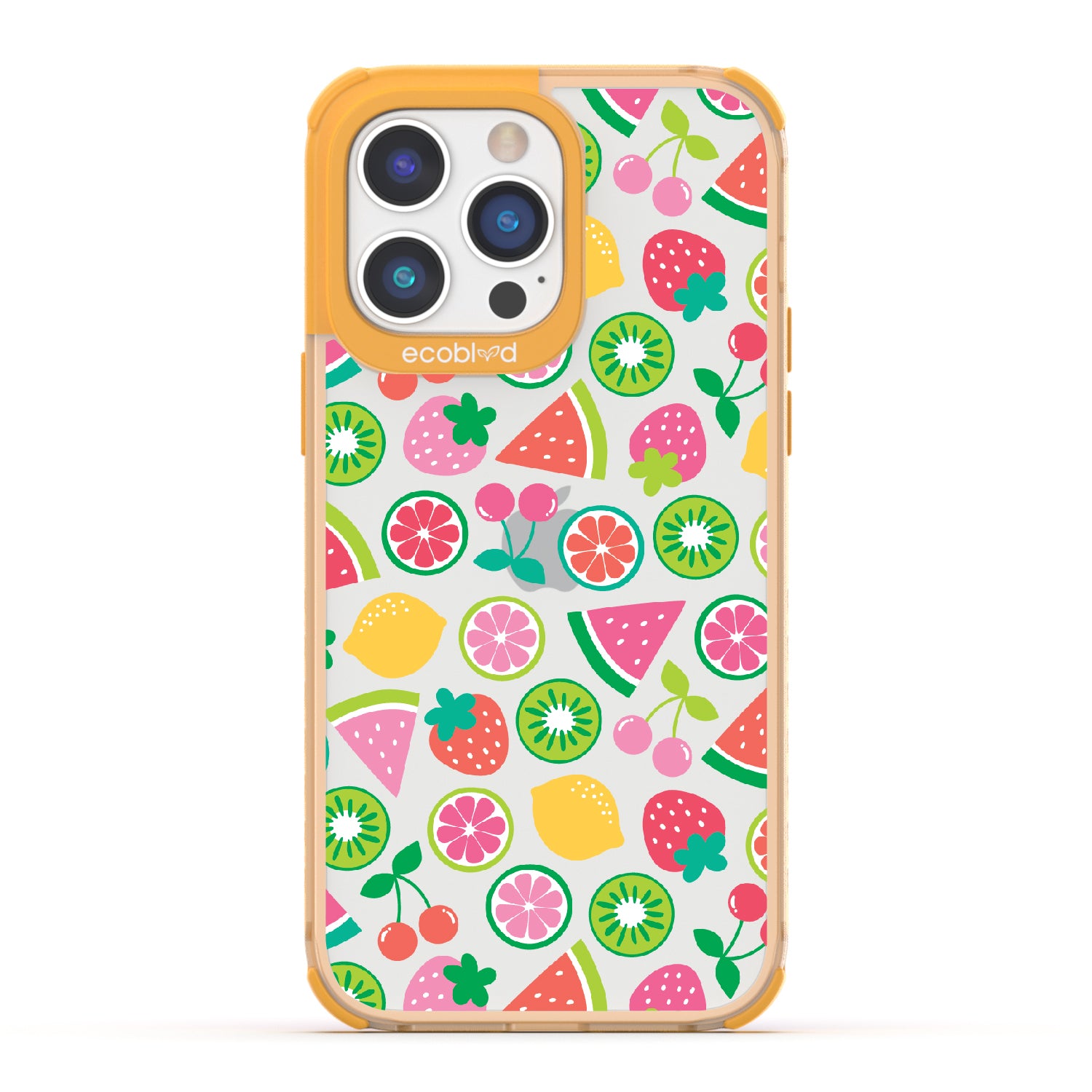 Savor the juicy goodness of summer with the Juicy Fruit design on our Laguna clear iPhone 14 Pro phone case, a delightful blend of vibrant fruits that will quench your style thirst. From the juicy watermelon to the tangy lemon, zesty lime, tropical guava, refreshing kiwi, luscious strawberries, and succulent cherries, this case is a juicy treat for your eyes. This phone case is a reminder to see the juicy side of life, to add a pop of fruity freshness to your style, and to use your phone to start juicy conversations.