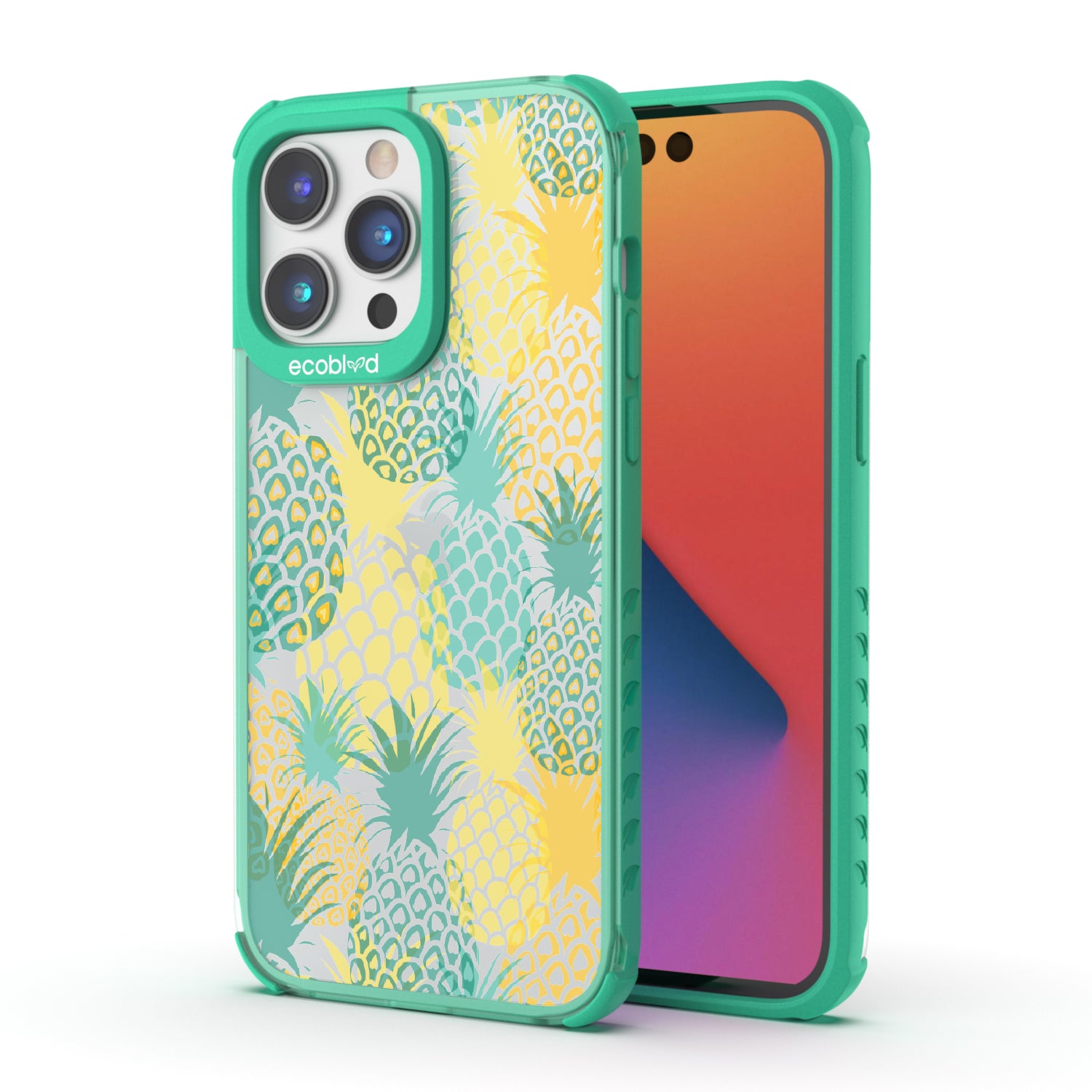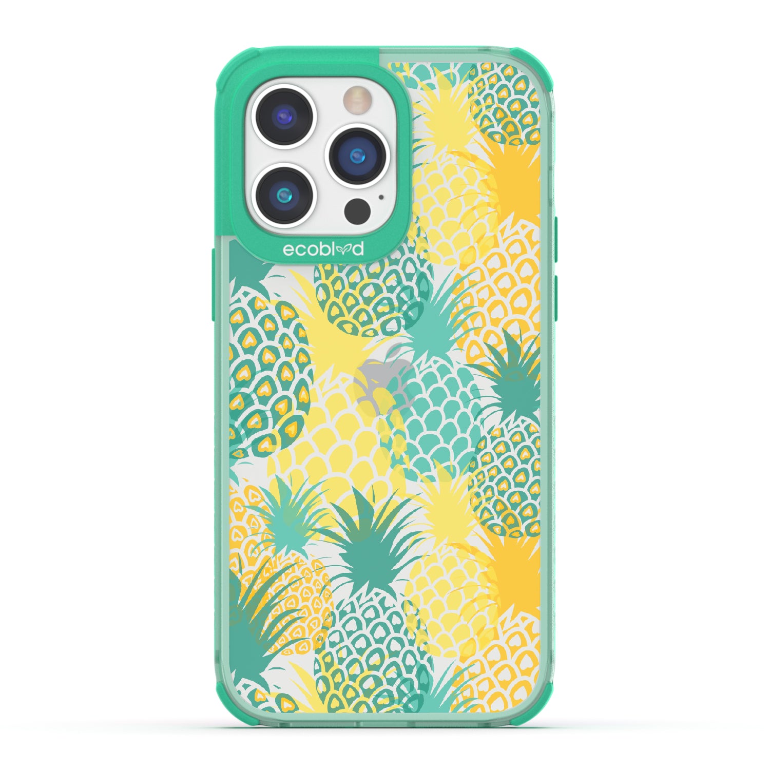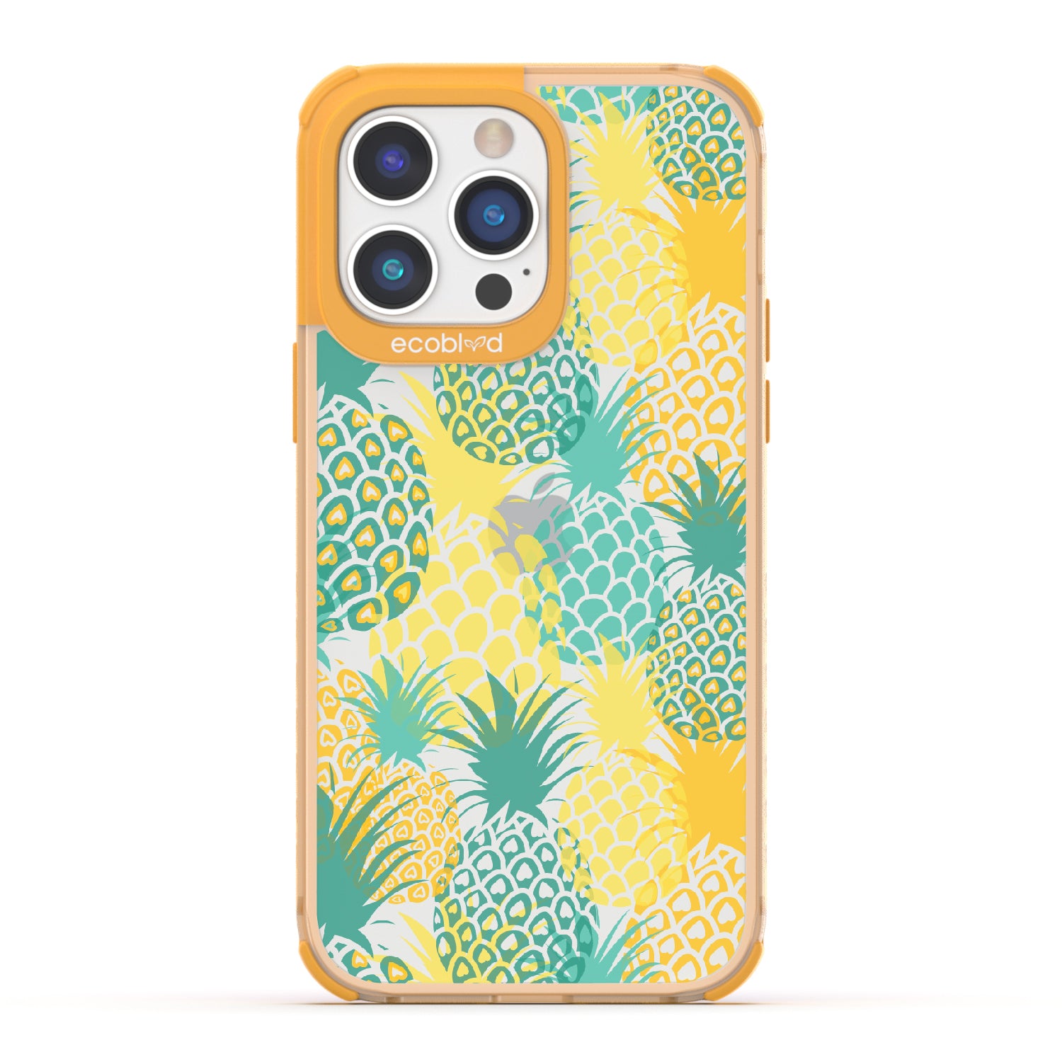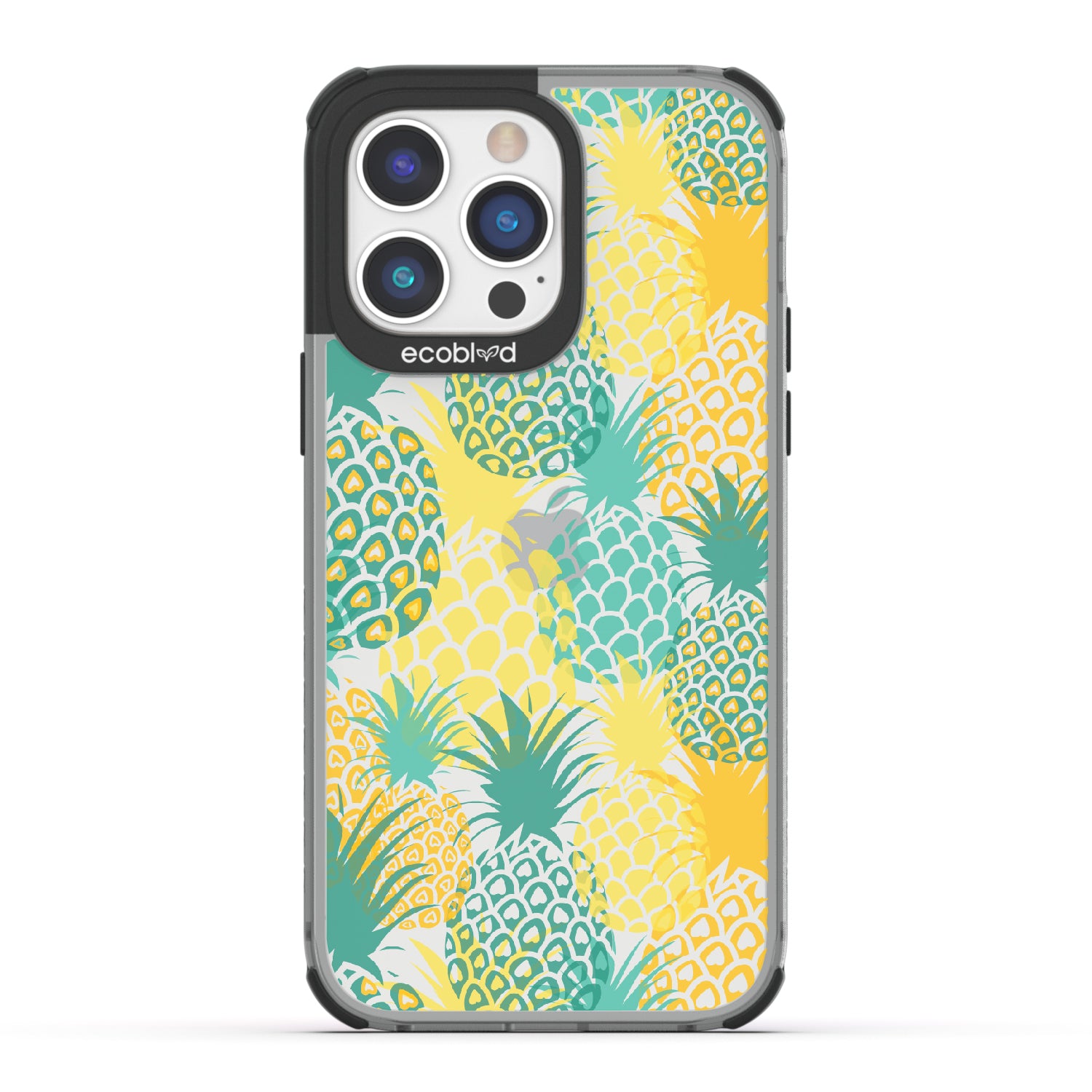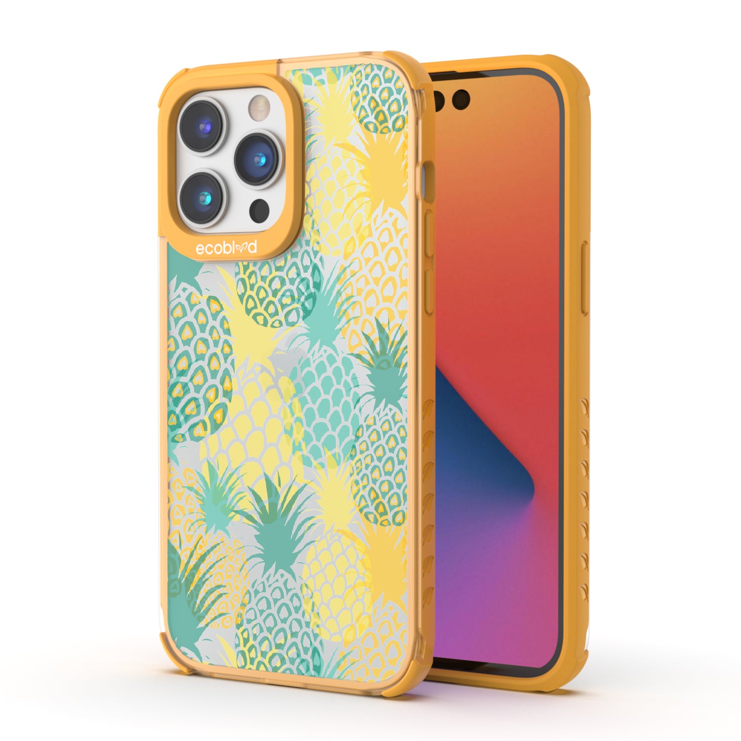 If you like Pina Coladas and getting caught in the sun, then this design on our Laguna clear iPhone 14 Pro case is for you! Pineapple Breeze is a refreshing phone case that embodies the spirit of tropical relaxation. Its vibrant array of ripe pineapples will transport you to exotic shores, where the golden rays of the sun dance upon your skin.