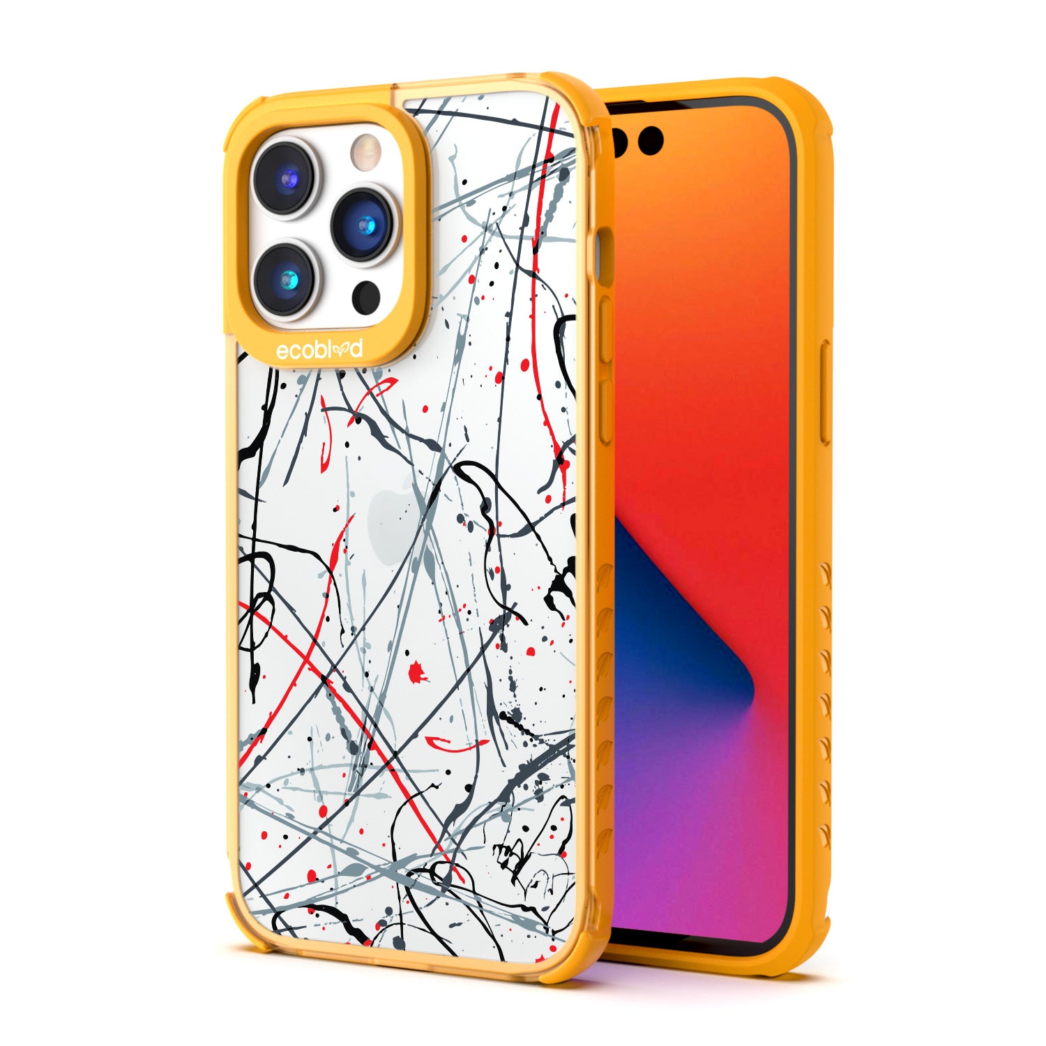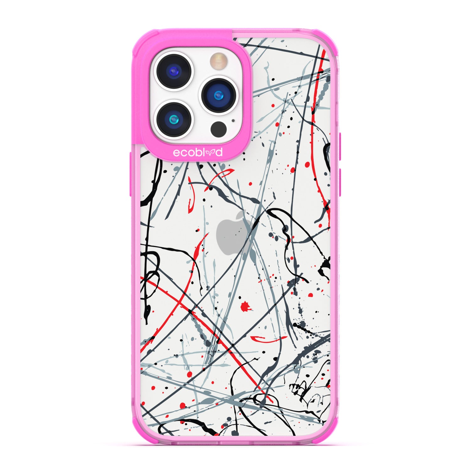 Unconventional and avant-garde, the Stroke Of Genius design on our Laguna clear iPhone 14 Pro case is a bold statement of progress that captures the essence of a creative journey - its abstract paint splatter lines with black and red lines resembling brush strokes signify the power, potential, and elegance of a stroke or flick that can ignite the genius within you, or at least on your phone.