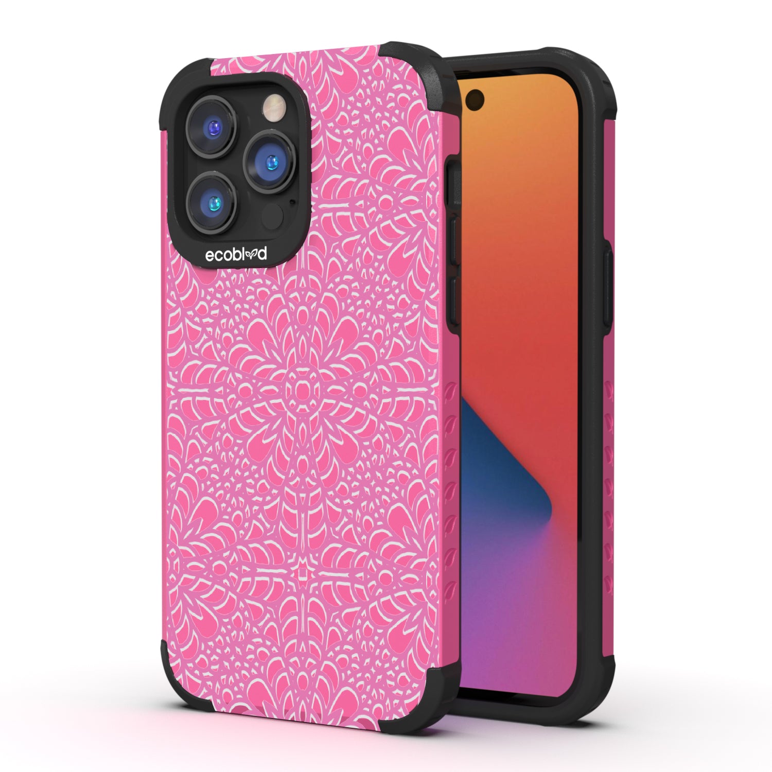 Immerse yourself in the elegance of the A Lil' Dainty design on our Mojave rugged and compostable iPhone 14 case as it exudes sophistication and elegance with its delicate lace and tapestry-like patterns. Available in five enchanting colors: Midnight Black, Cascade Blue, Foliage Green, Illuminating Yellow, and Wildflower Pink.