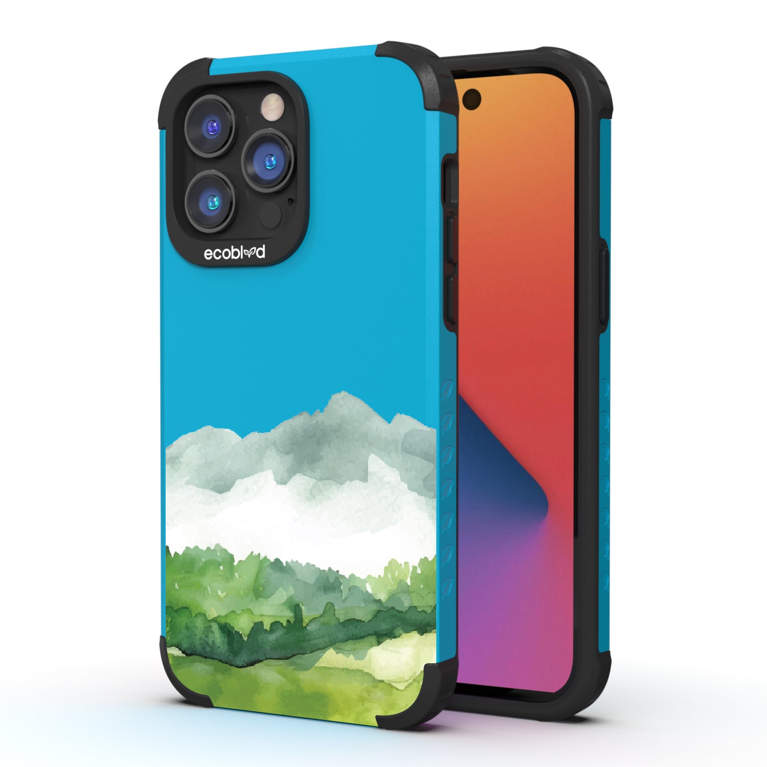 The view is endless, just like the possibilities. The Open Horizon design on our Mojave rugged and compostable iPhone 14 Pro case layers soft washes of green and misty blue, stretching like rolling hills beneath an open sky. The watercolor effect creates a serene, boundless landscape, a quiet reminder that there’s always more to explore.