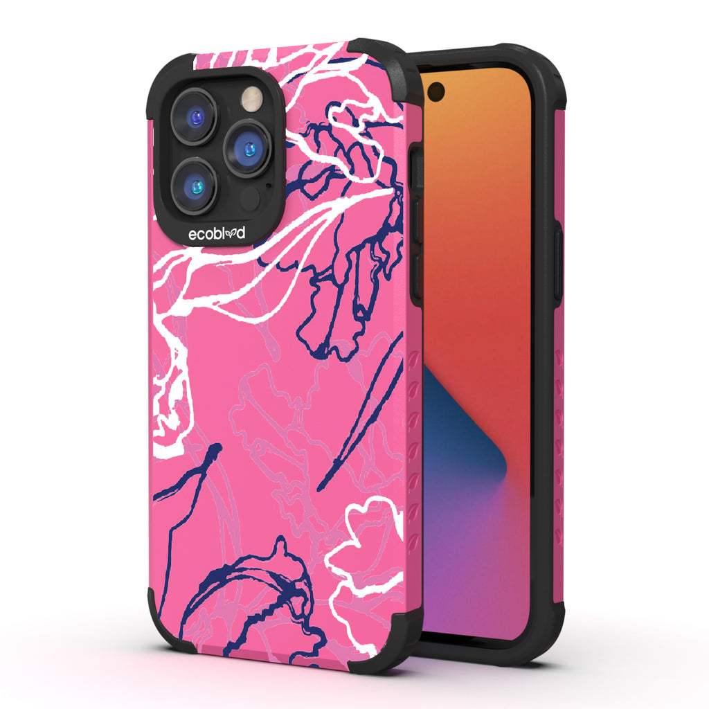 Get ready to break the mold with Outside The Lines design on our Mojave rugged and compostable iPhone 14 Pro case, proving that you're not just a follower but a true trendsetter with its abstractly artistic and individualized style of eccentric lines and squiggles, creating a one-of-a-kind look on your phone. Available in five colorways: Midnight Black, Cascade Blue, Foliage Green, Illuminating Yellow, and Wildflower Pink.