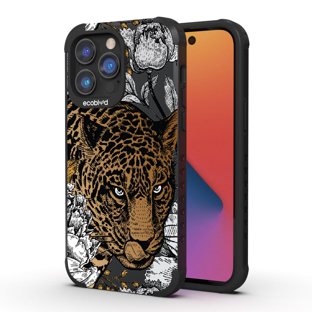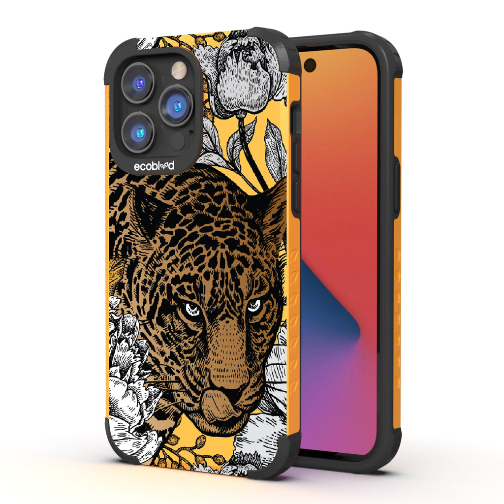 Captivating with its striking rendition of a fierce leopard in action, Purrfectly Striking design on our Mojave rugged and compostable iPhone 14 Pro case embraces the untamed beauty of this majestic wildcat. Experience the perfect blend of impeccable style and protection while championing ocean conservation efforts. Step out of the ordinary and into the wild with this Purrfectly Striking design! Featuring a fierce leopard on the prowl amidst a sea of grayscale flowers, this phone case roars with confidence thanks to its bold print and striking contrast in two captivating colors: Midnight Black and Illuminating Yellow. Purrfectly Striking is the perfect choice for those who want to unleash their inner wild side and look ferociously cool.