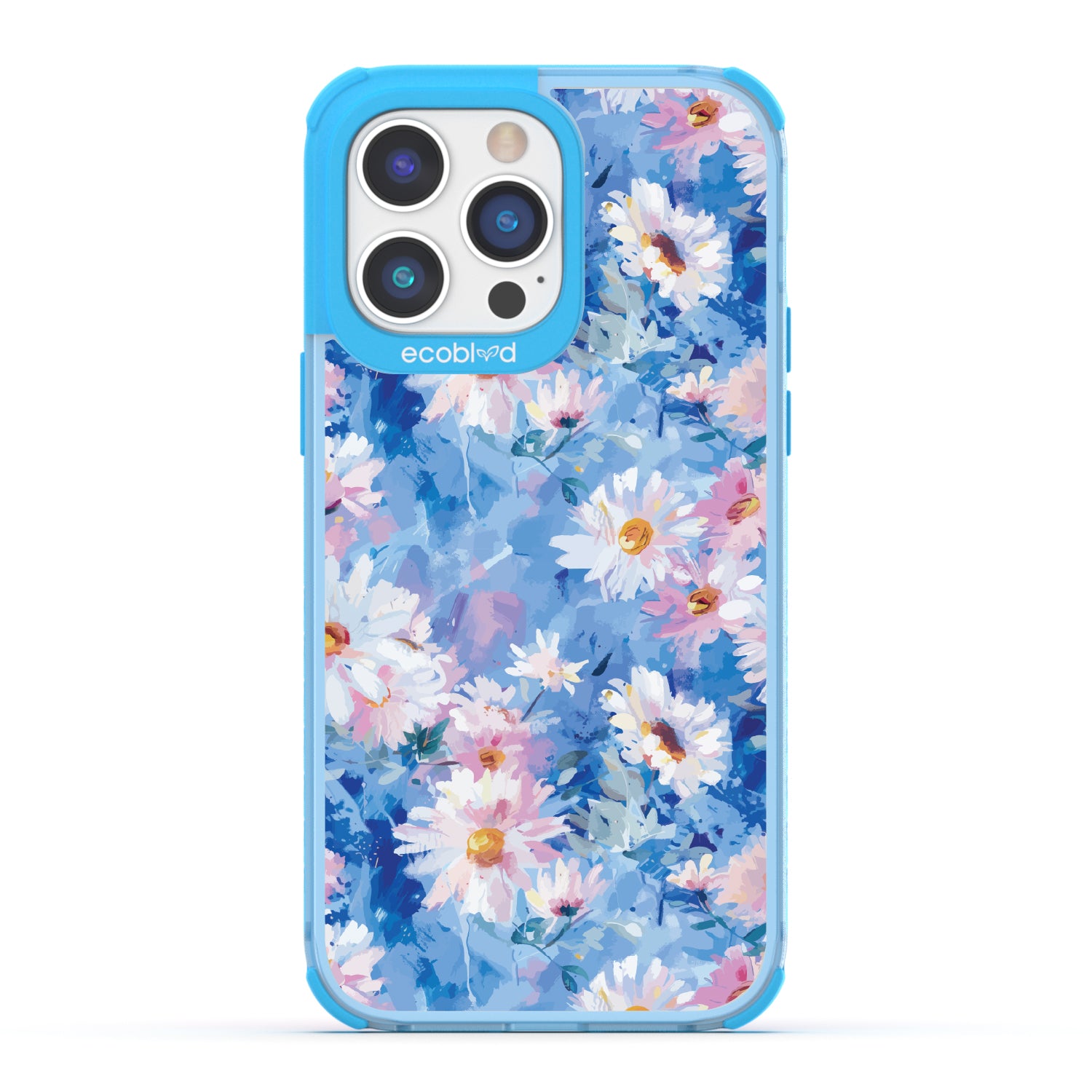 It’s a breeze really. The Blown Away design on our Laguna clear iPhone 14 Pro case sends soft daisy petals swirling across layered blue strokes, like a gust caught mid-canvas. Each pastel bloom feels weightless but intentional—an airy moment you can hold onto.