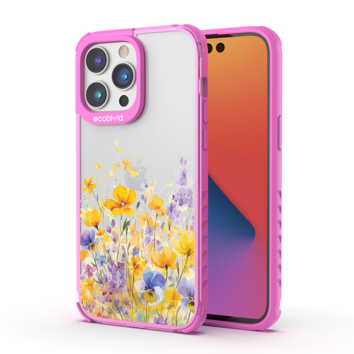 A moment in the light never looked so wild. The Meadowlight design on our Laguna clear iPhone 14 Pro case lets soft florals run free in a watercolor wash of gold and lavender. A design that glows like a field at its most unfiltered.