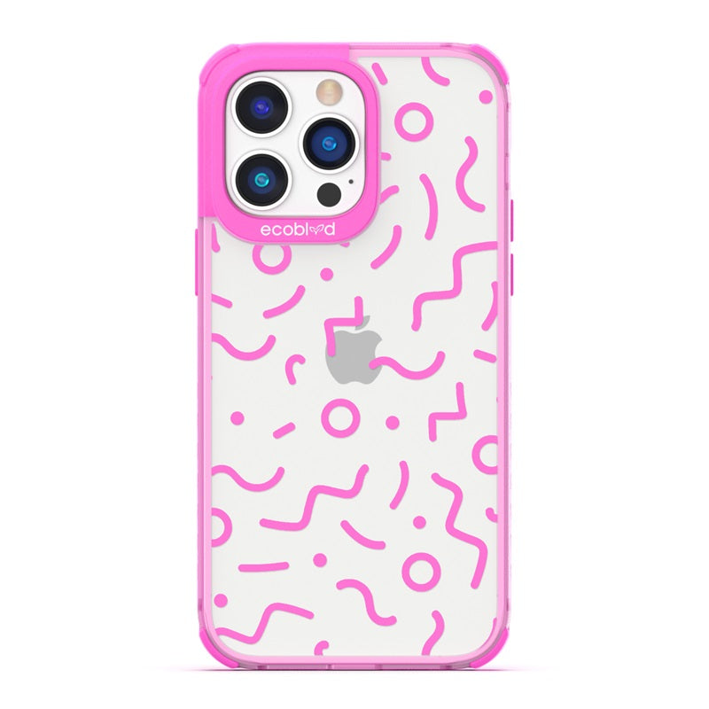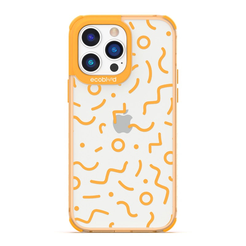 Experience a nostalgic blast from the past with the Laguna clear iPhone 14 Pro Max case - with a 90's-themed phone case design that offers style and protection while supporting ocean conservation efforts. The 90's Kids design features bold, wavy, and squiggly lines and circles in five vibrant colors: Midnight Black, Cascade Blue, Foliage Green, Illuminating Yellow, and Wildflower Pink.