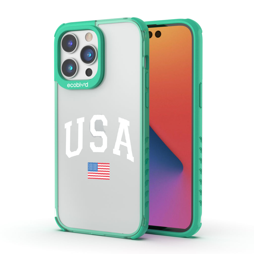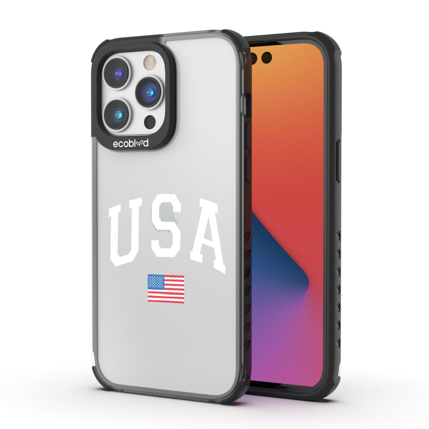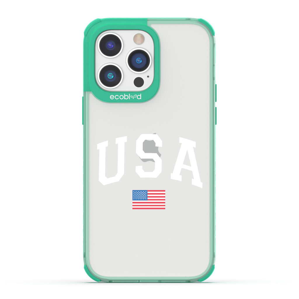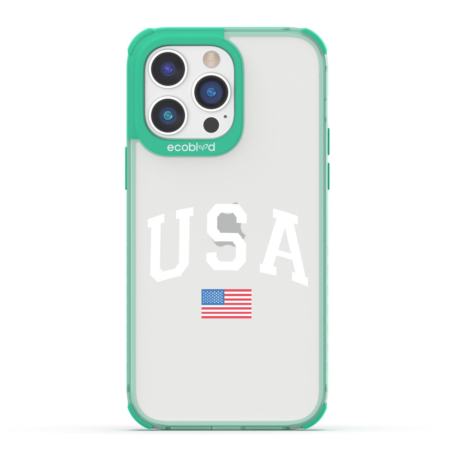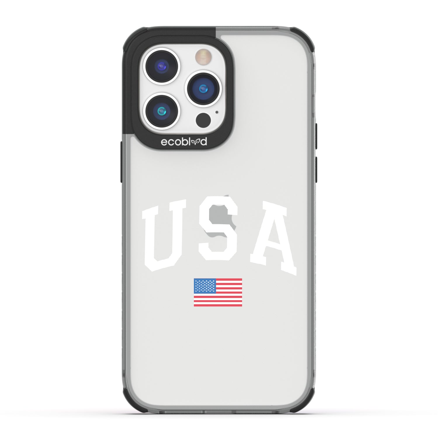 Cheer on the stars and stripes with the All-American design on our Laguna clear iPhone 14 Pro Max phone case. With bold "USA" and the American flag, this case celebrates Team USA and the Olympic games.