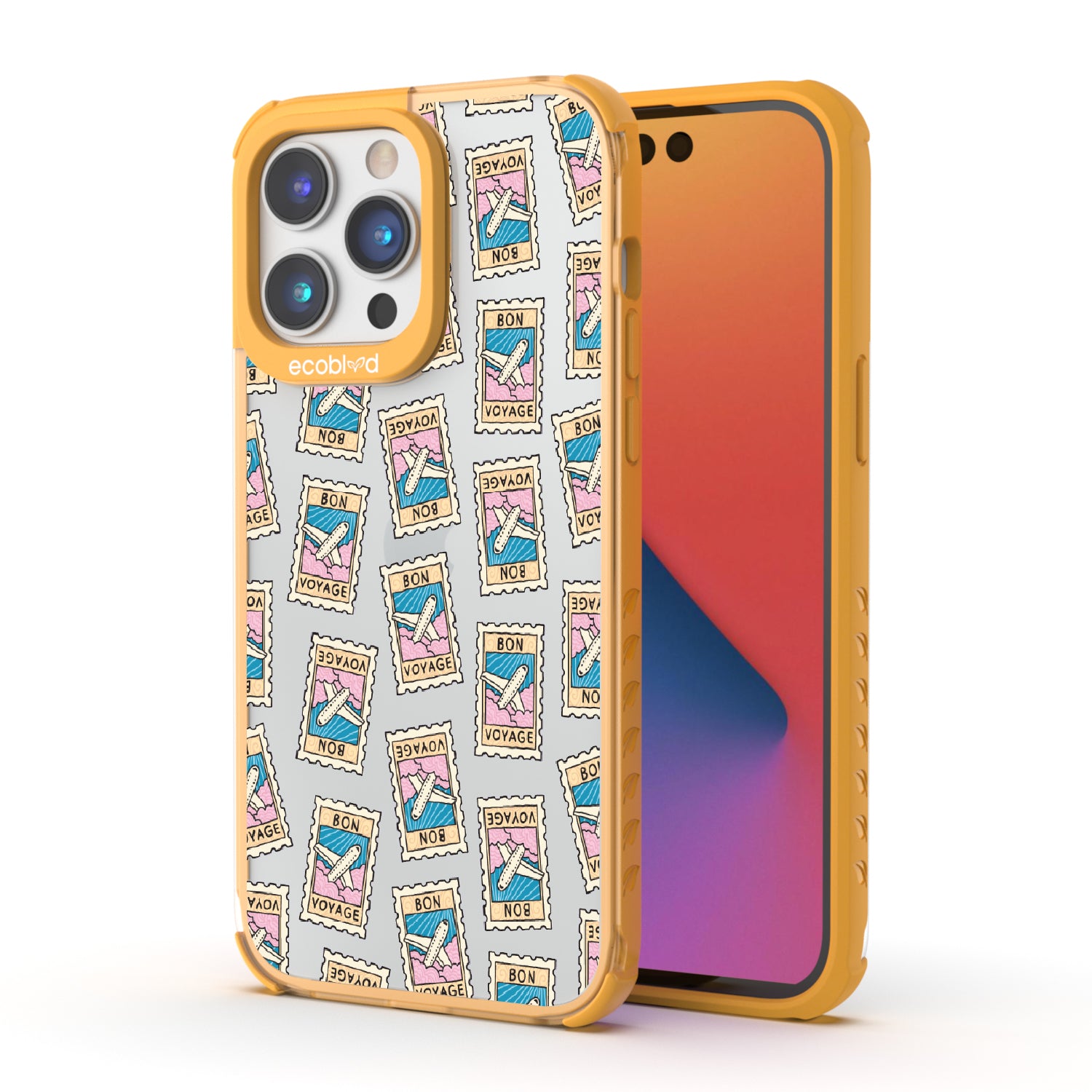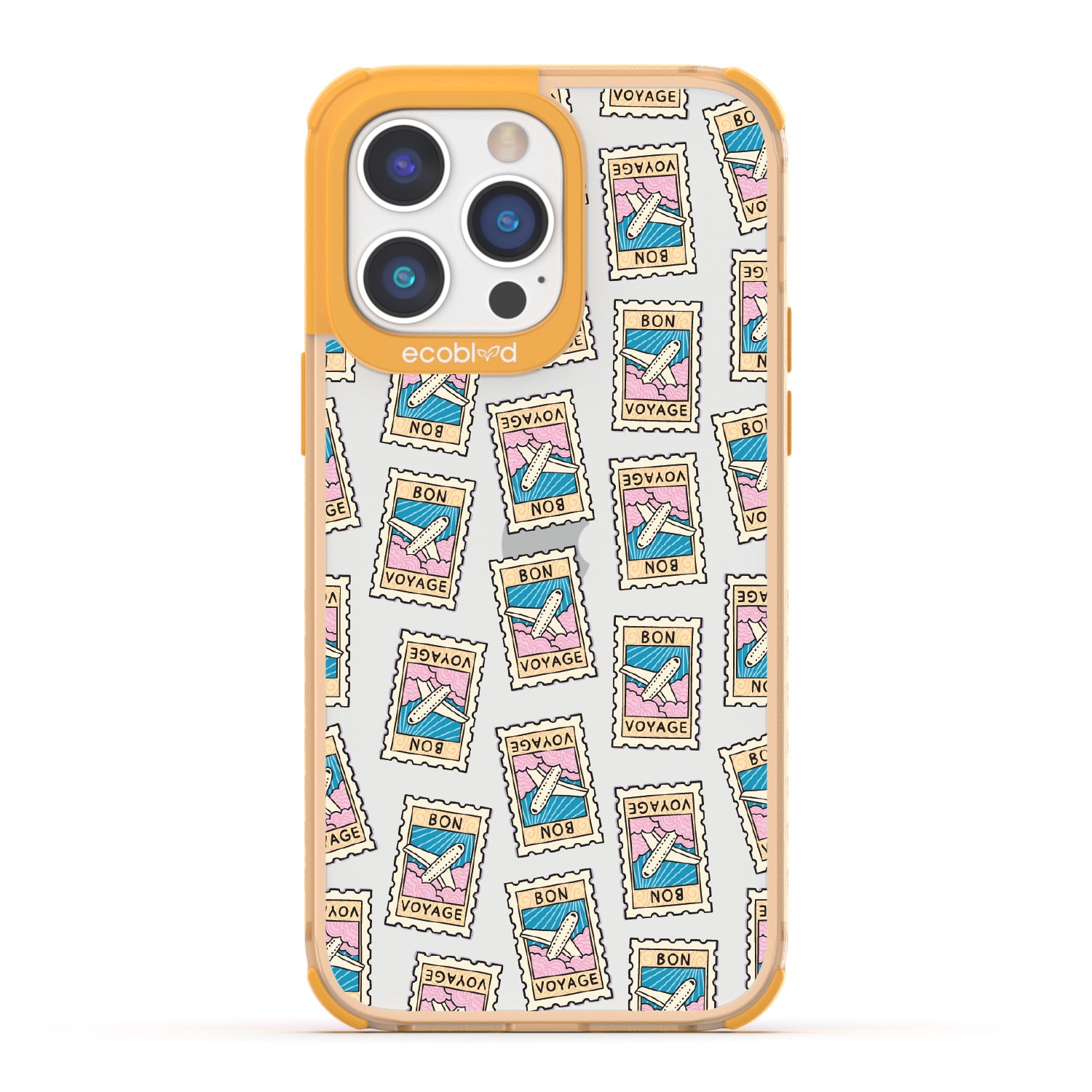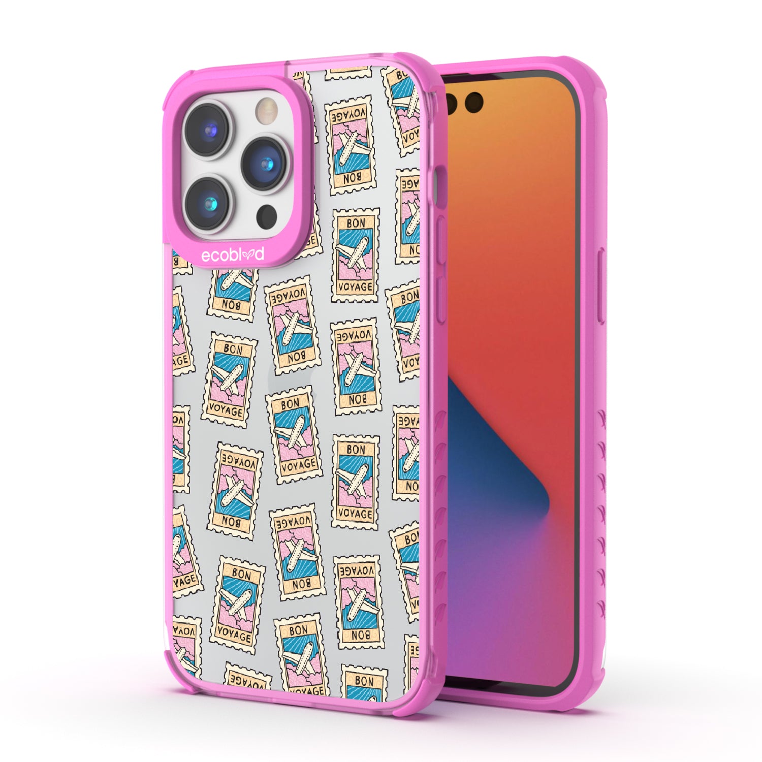 Ready for a stylish departure? The Bon Voyage design on our Laguna clear iPhone 14 Pro Max case is your phone's own first-class upgrade, where every 'Bon Voyage' stamp is a nod to your next great getaway. It's like turning on flight mode with a twist of runway—your sidekick dressed for adventure. Snap this case on, and let your phone's wanderlust lead the way. Buckle up, traveler—your pocket-sized co-pilot is about to make every journey fashionably memorable.