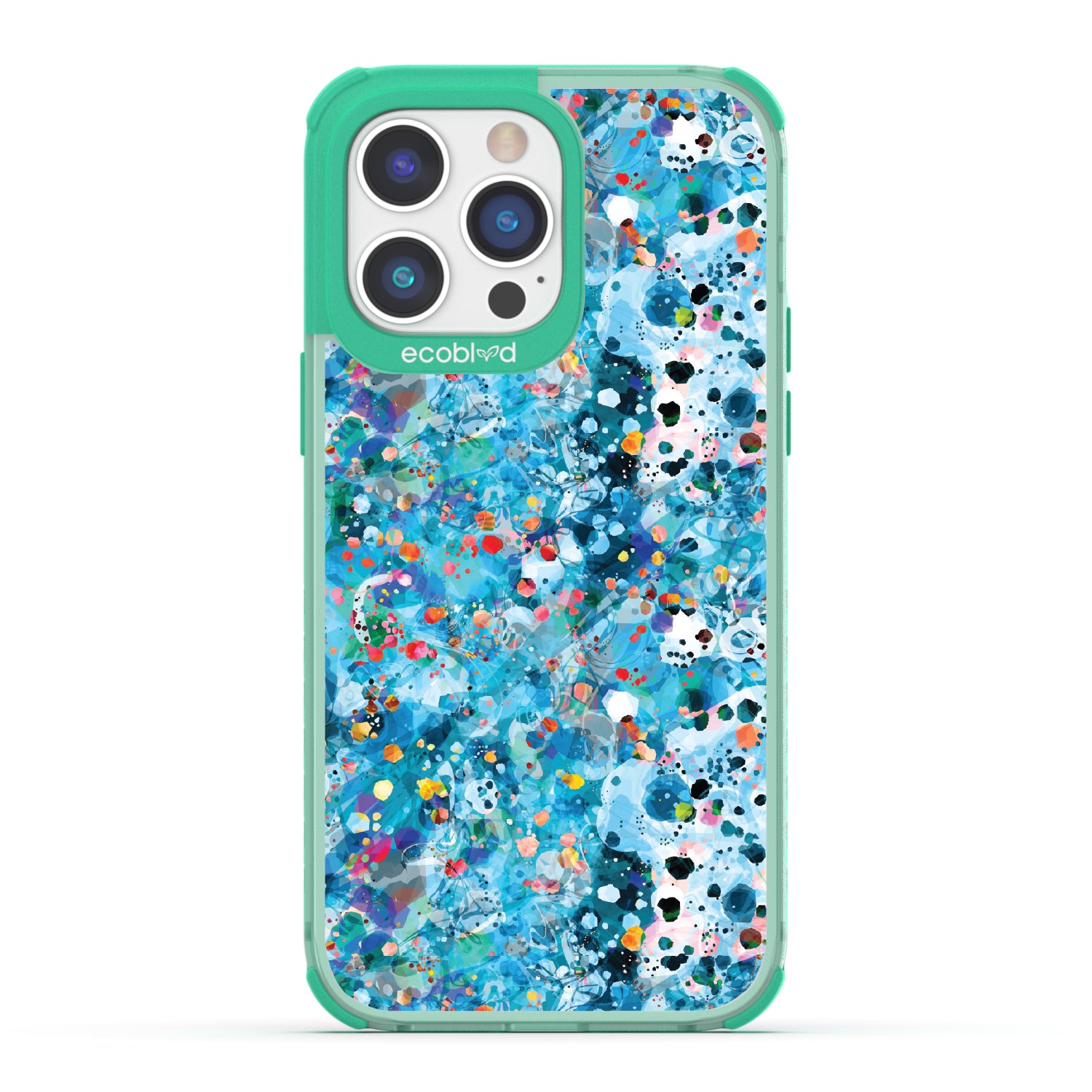The tide rolls in, leaving something new behind. The Brushed By The Tide design on our Laguna clear iPhone 14 Pro Max case swirls in deep blues and scattered flecks of color, like treasures left along the shore. A composition shaped by movement, light, and the sea’s natural artistry.