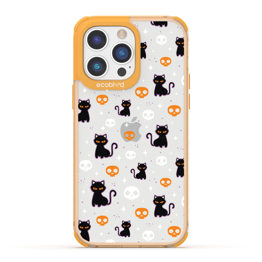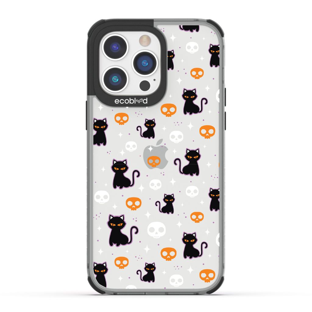 Delve into the depths of the Catacombs design on our Laguna clear iPhone 14 Pro Max case, where black cats and skulls offer an unexpected and delightful deviation from the typical eerie association. Rather than fear, this design brings forth joy and playfulness, transforming catacombs into a realm of spirited enchantment and Halloween festivity.