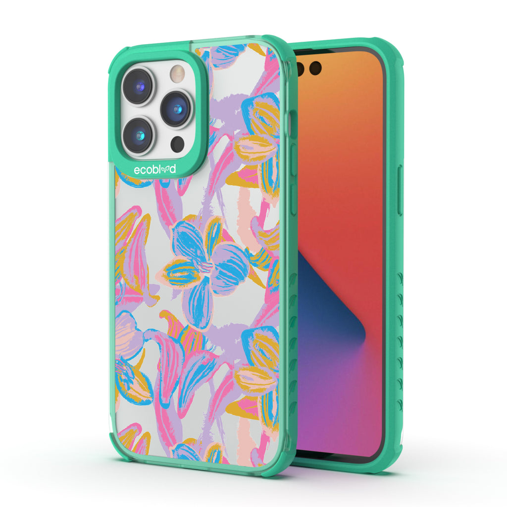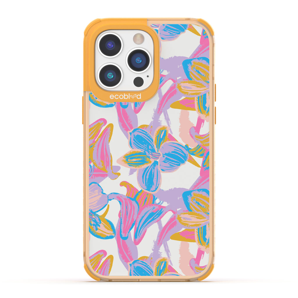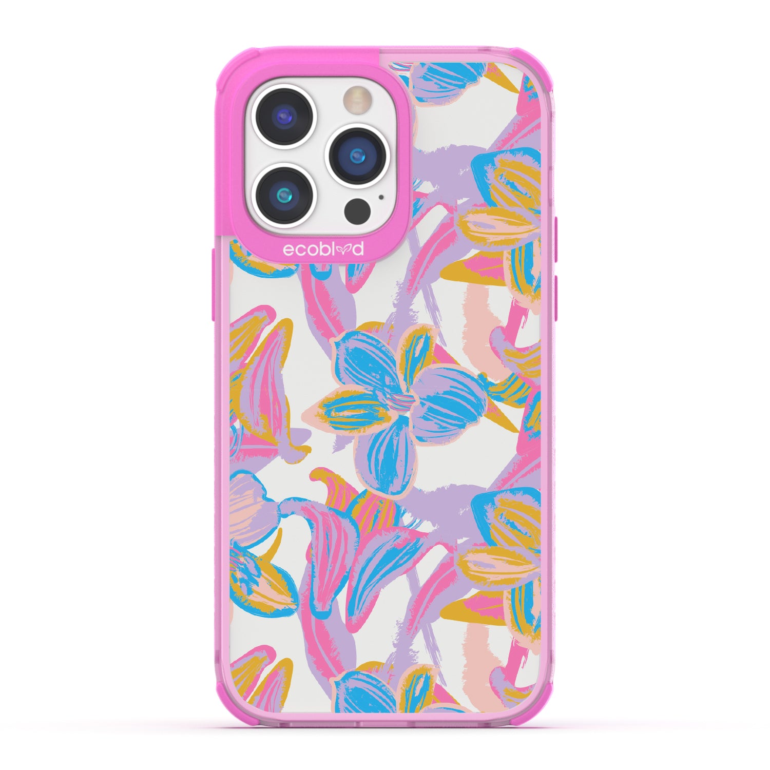 Illuminate your look with the Electric Feel design on our Laguna clear iPhone 14 Pro Max case, where pastel flowers glow with an almost neon vibrance. Pastel petals infused with neon-like brightness give this design an electric feel, adding a modern twist to the natural beauty of flowers. Energize your phone and style with a burst of spring's electric beauty, making every moment vibrant and lively.