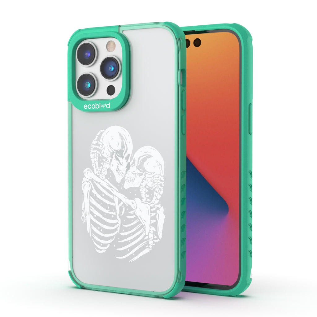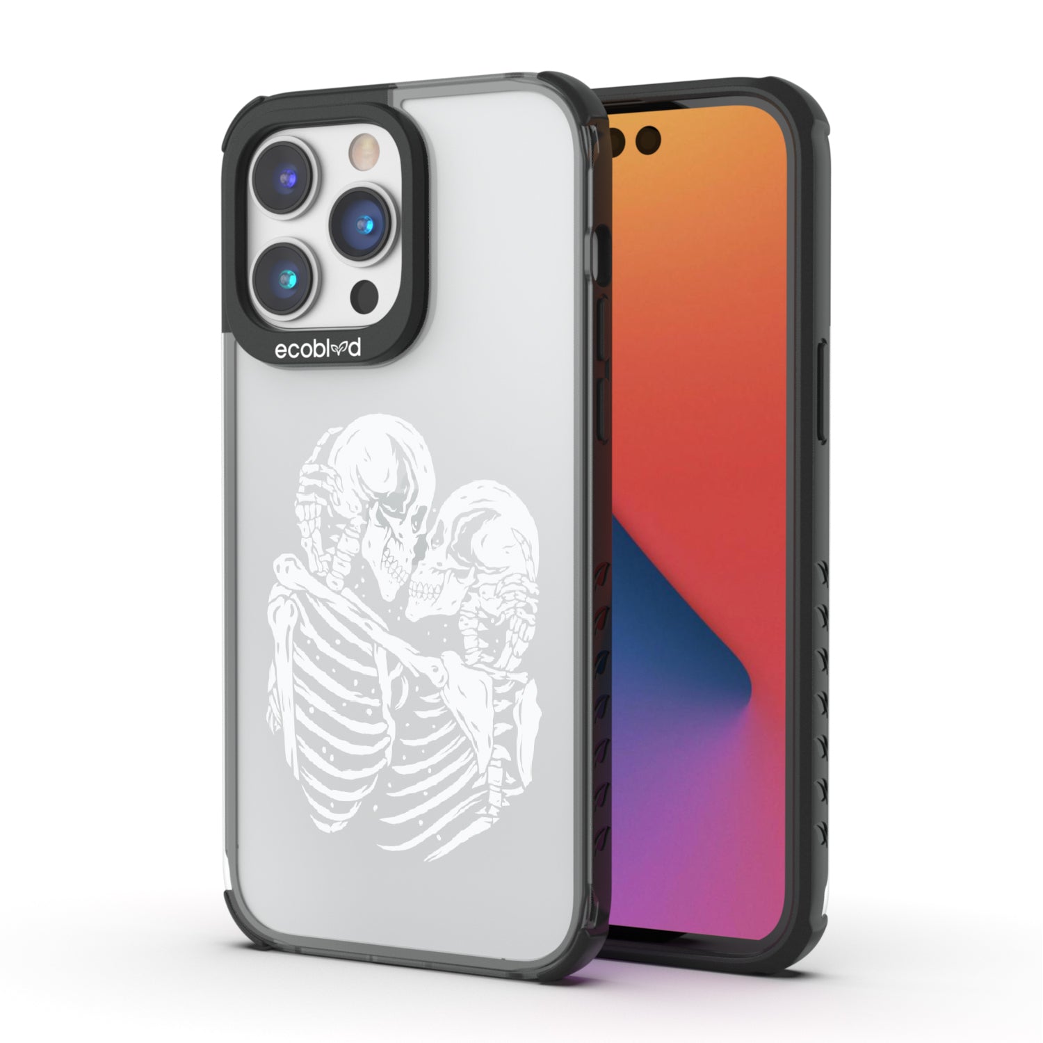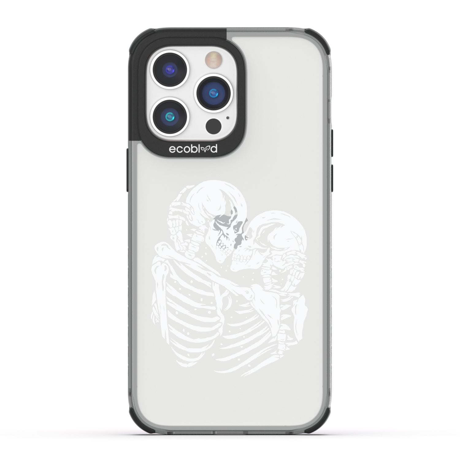 Love lasts longer than life with the Evermore design on our Laguna clear iPhone 14 Pro Max case, where love's flame persists beyond life's extinguishing. A skeletal couple's eternal kiss serves as a testament to the enduring power of affection.