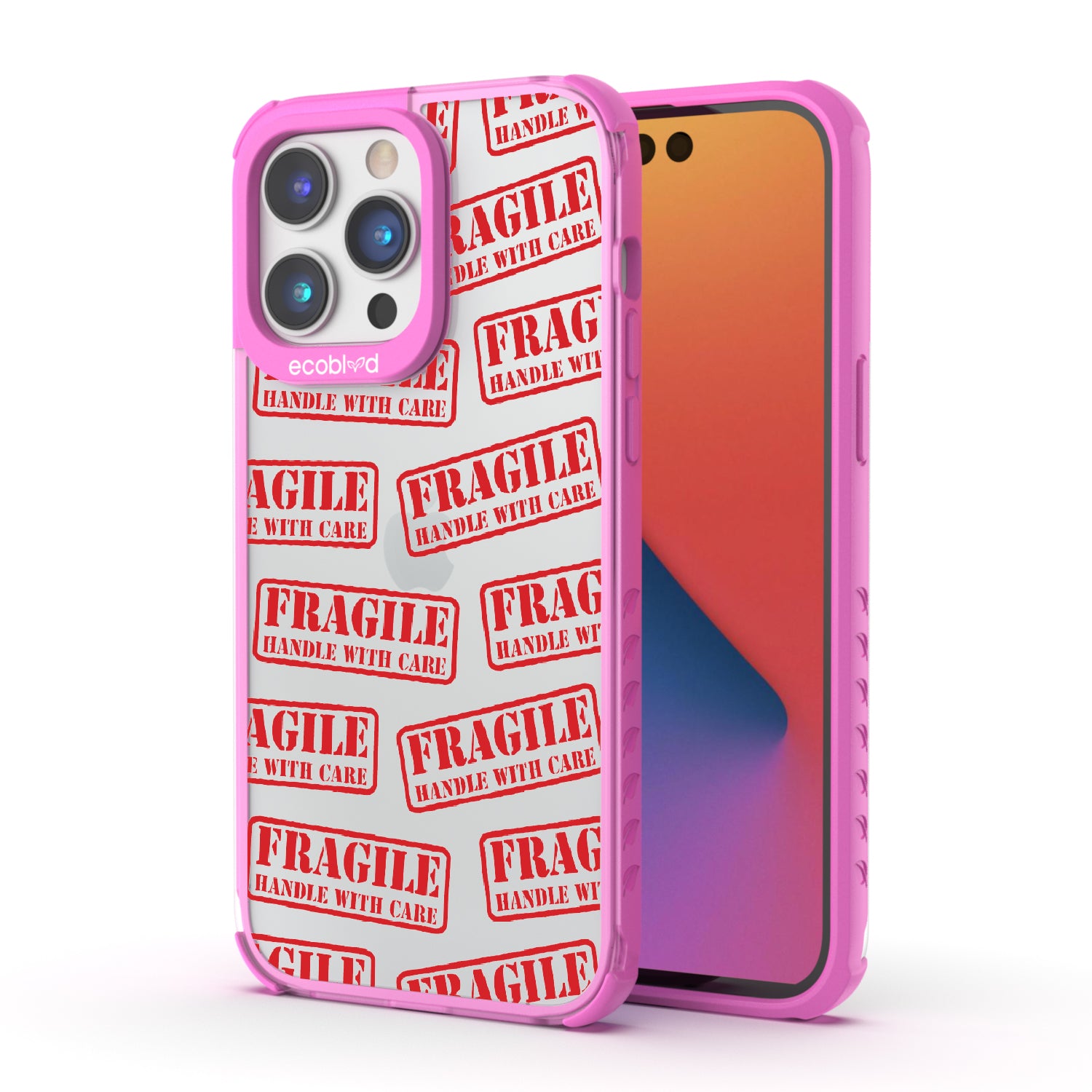 Your phone is precious cargo, and the Handle With Care design on our Laguna clear iPhone 14 Pro Max case makes sure everyone knows it. Like the most treasured package in the post, this design stamps your device with VIP status, demanding the gentle touch and special attention reserved for the things we can't live without.