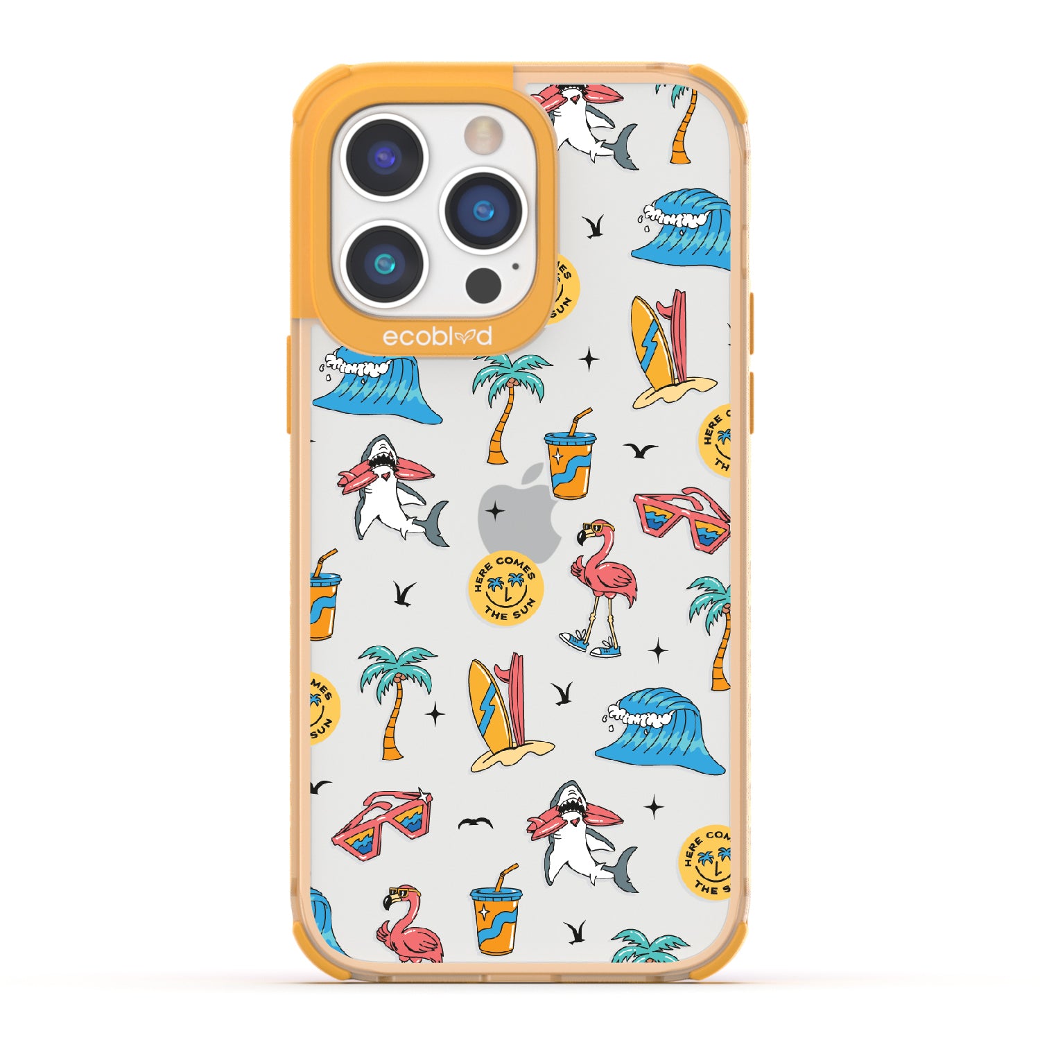 Slip on your flip-flops, grab your shades, and let the Here Comes The Sun design on our Laguna clear iPhone 14 Pro Max phone case complete your sun-soaked style. From sunrise to sunset, it brightens your world, just like the summer sun. Here comes the fun, so make sure your phone shines wherever you roam.