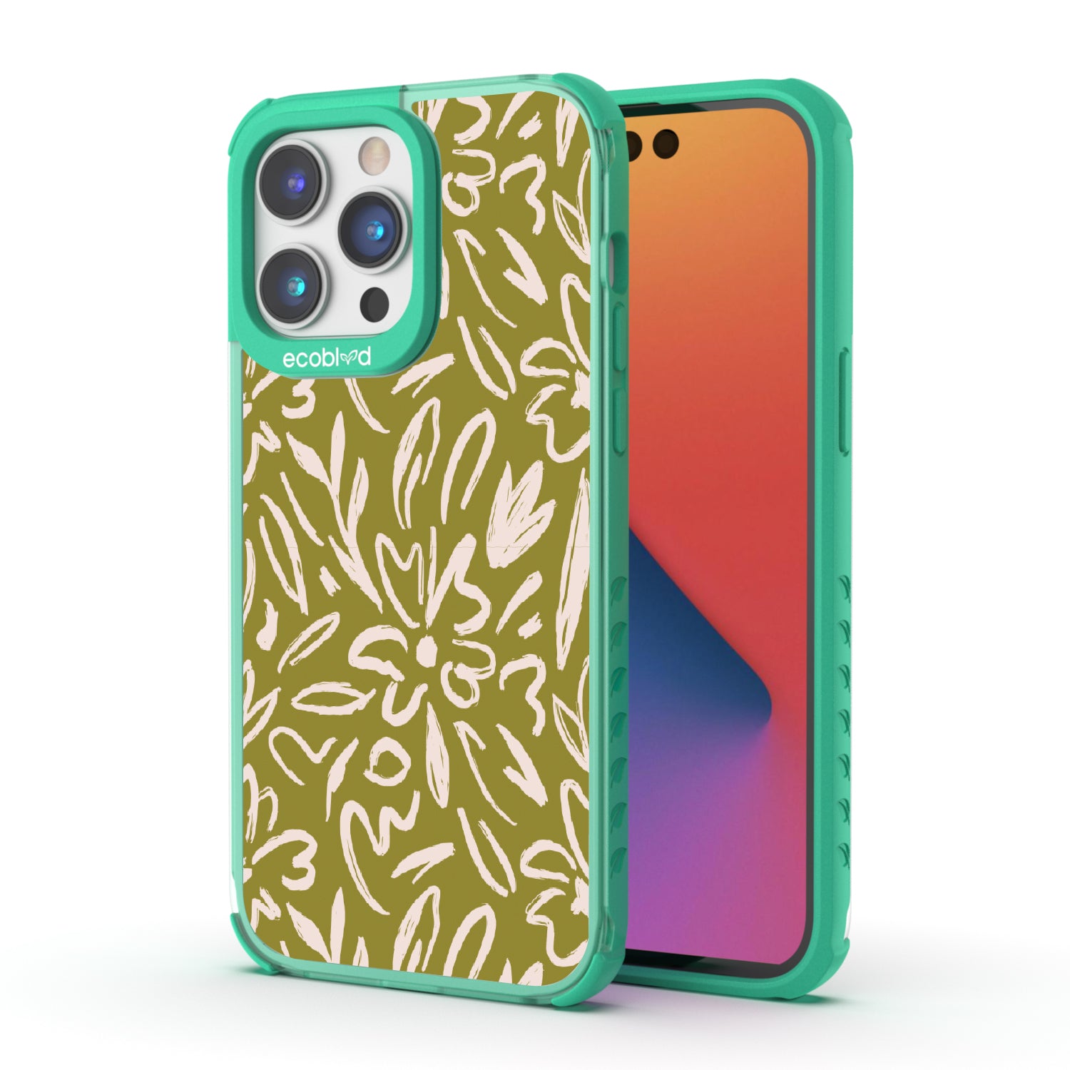 Radiating with the energy of new bloom with the In The Green design on our Laguna clear iPhone 14 Pro Max phone case, as hand-painted flowers thrive with the beauty of renewal and growth.