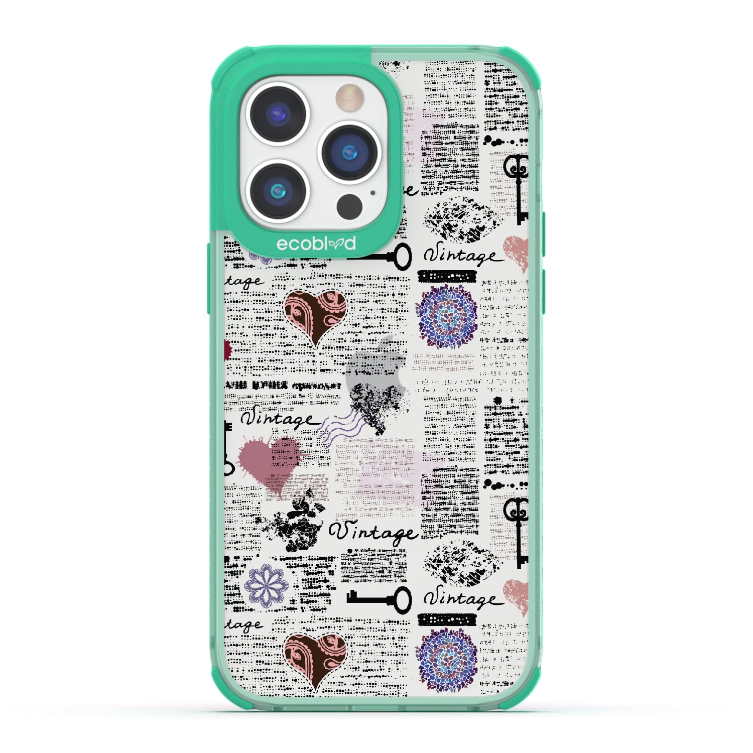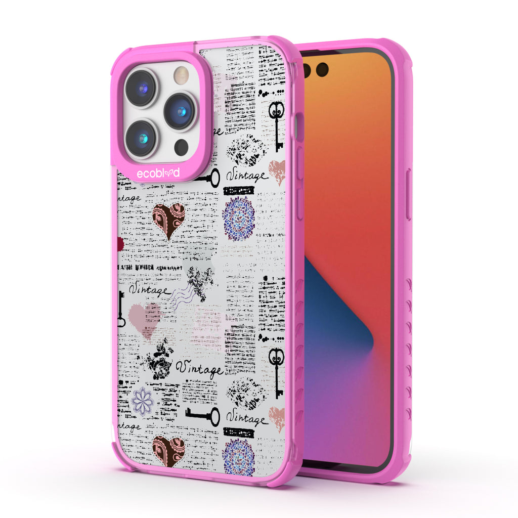 Craft a tale of everlasting love with the In The Pages design on our Laguna clear iPhone 14 Pro Max phone case This delightful vintage scrapbook look is adorned with loving hearts, keys, and notes and encourages you to build a story through your memories that never fade, forever preserving your love.