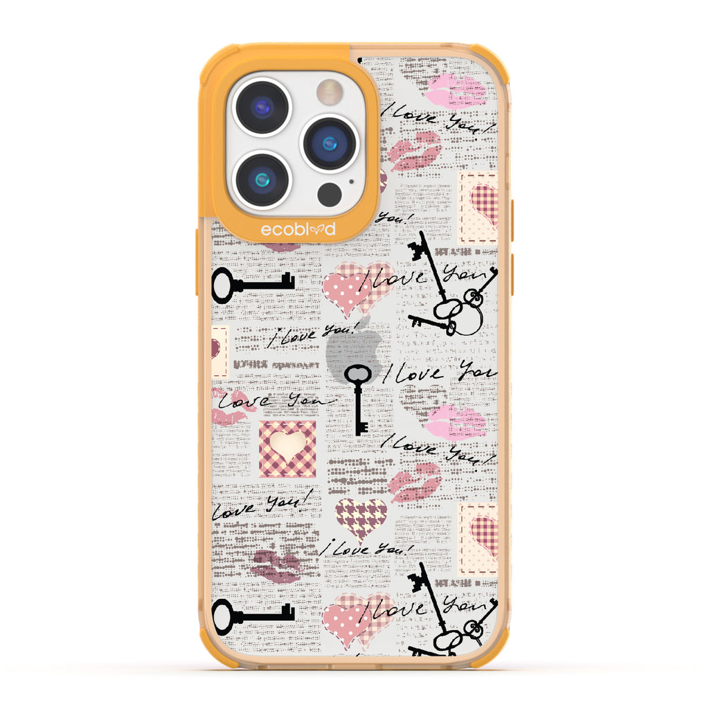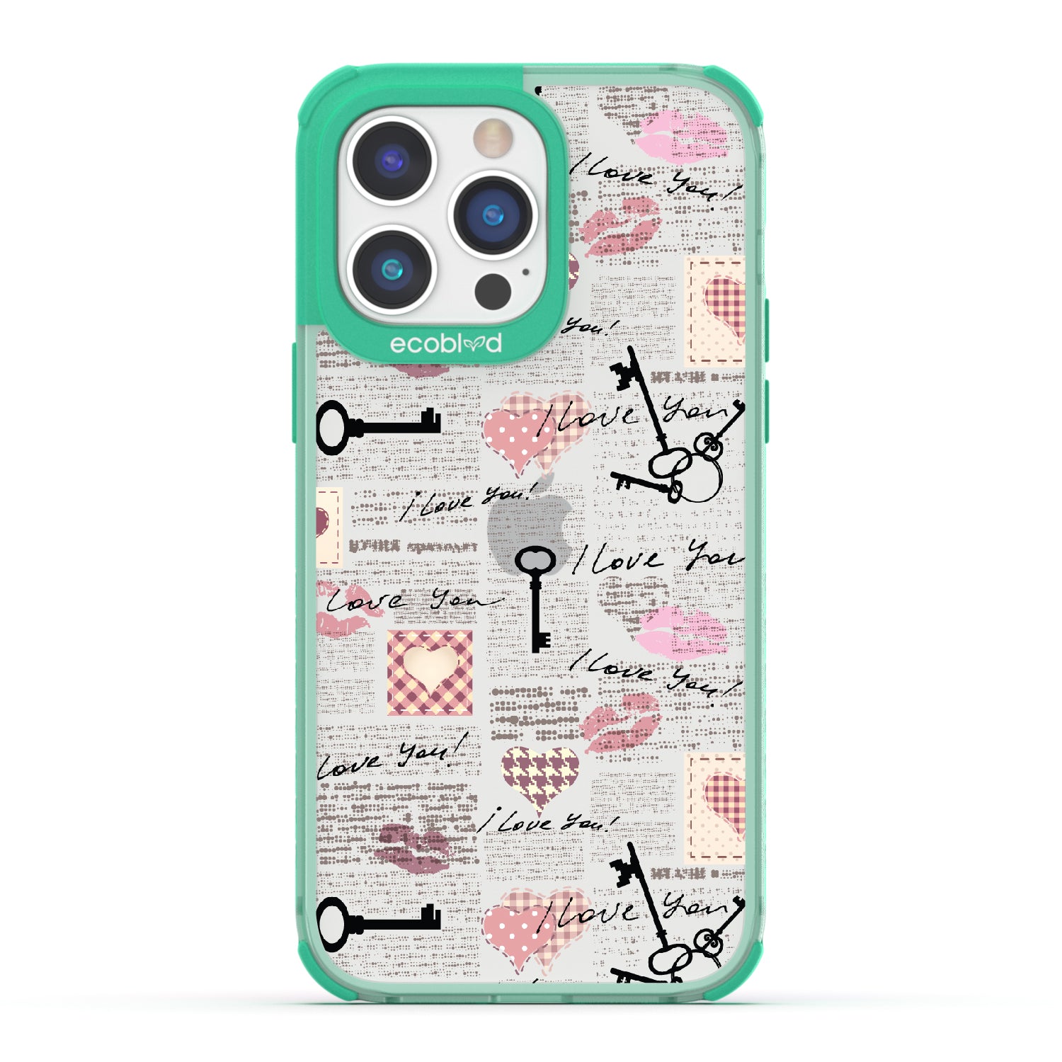 Unlock the romance with the Key to My Heart design on our Laguna clear iPhone 14 Pro Max phone case. This scrapbook-inspired pattern, adorned with keys and sweet kisses, captures the essence of a cherished love story. Your phone becomes a treasure chest of memories, each key and kiss telling a tale of affection.