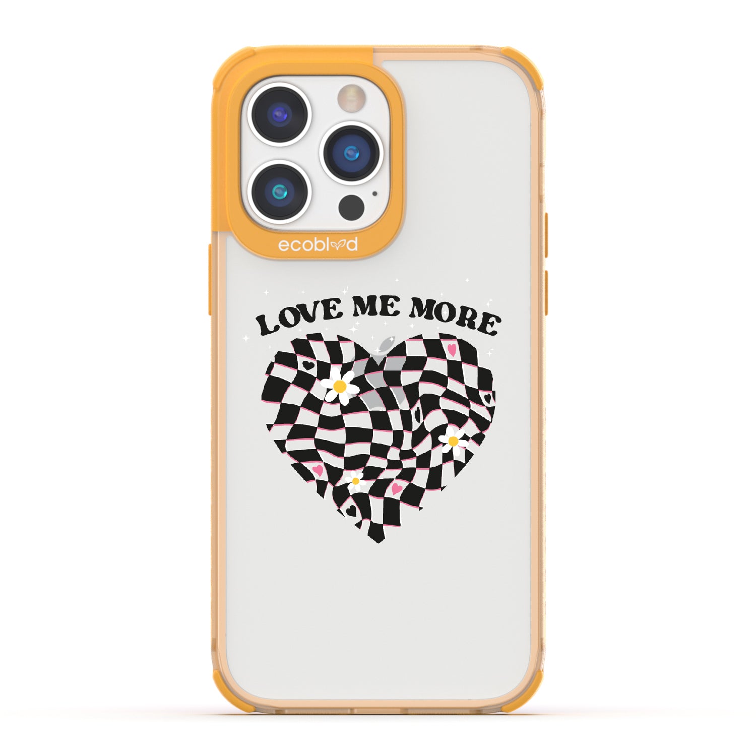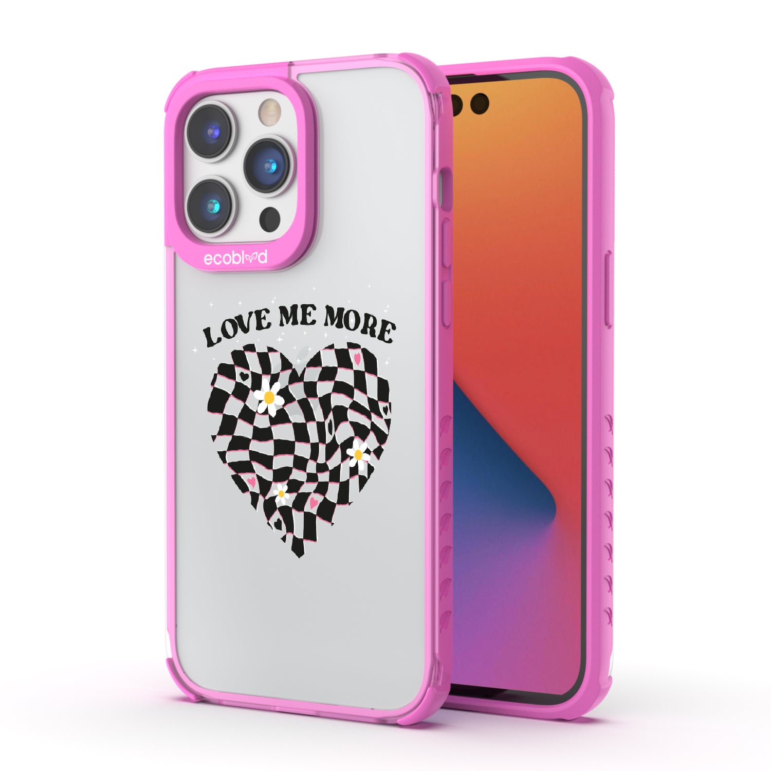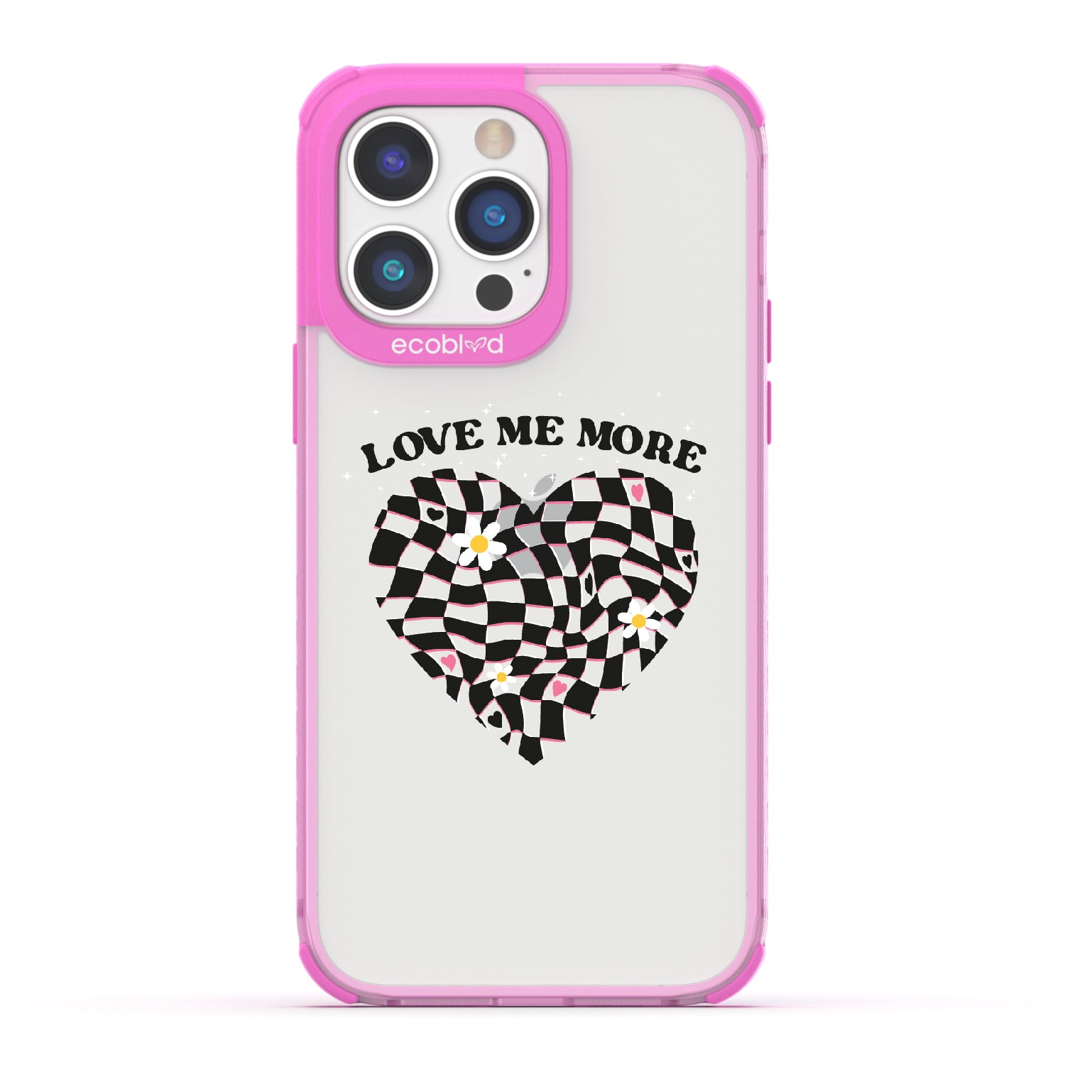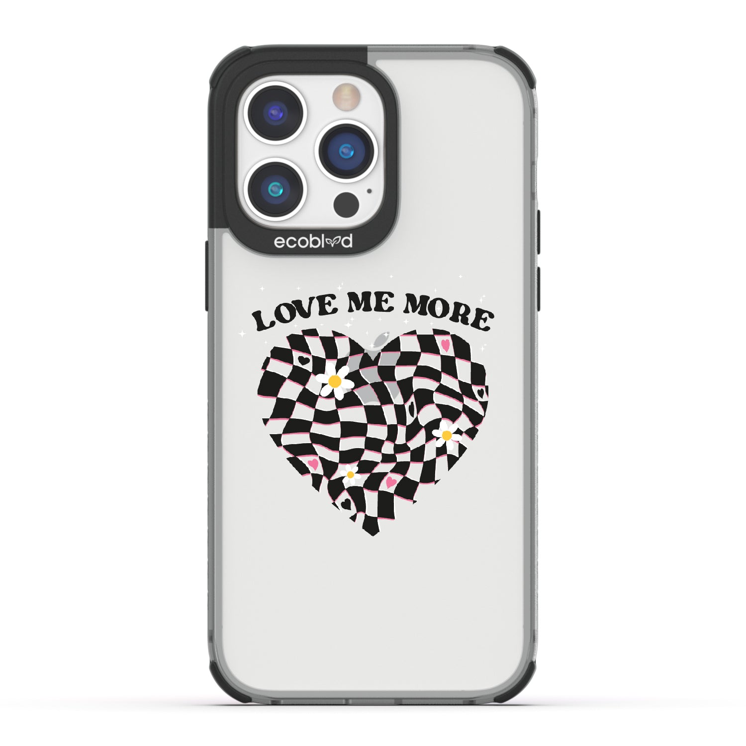On our Laguna clear iPhone 14 Pro Max phone case, Love Me More intricately portrays the language of desire, with a checkered heart adorned by an intoxicating symphony of blossoms. The patterns speak volumes of yearnings, while the text passionately conveys the plea for more passion, leaving an indelible mark that echoes "Forever in Your Heart."