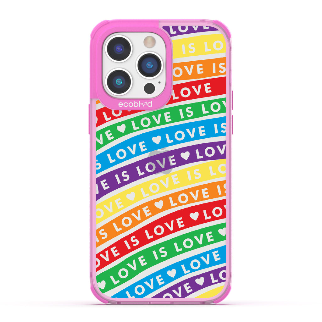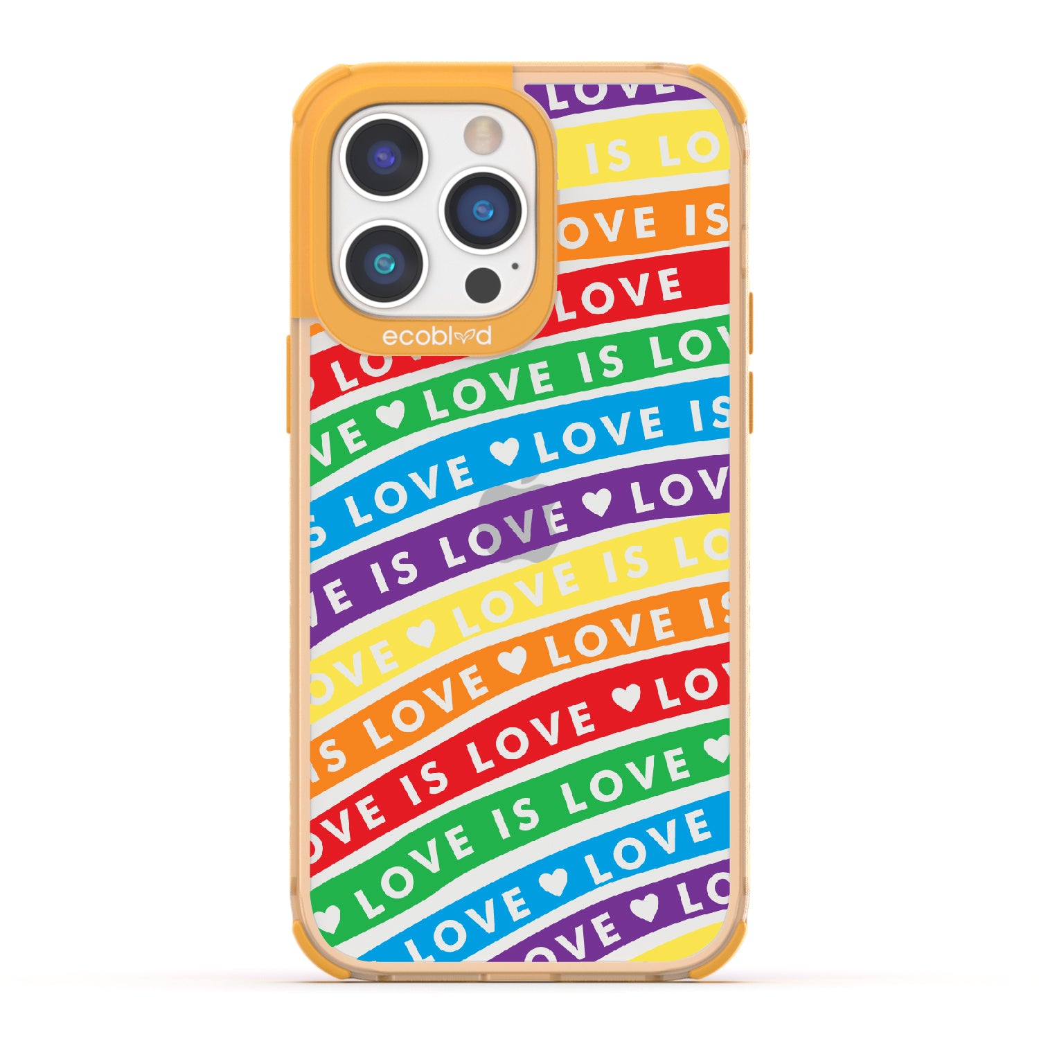 Celebrate the universal language of love with the Love Unites All phone case, exclusively designed for the Laguna clear iPhone 14 Pro Max phone case. With its mesmerizing rainbow lines, each carrying the heartfelt message "love is love" and a heart, this design beautifully embodies the spirit of acceptance and unity. Let your phone become a vivid representation of love's infinite power, igniting conversations and inspiring others to embrace the beautiful truth that love unites us all. Embrace this powerful symbol and spread the message of love wherever you go.