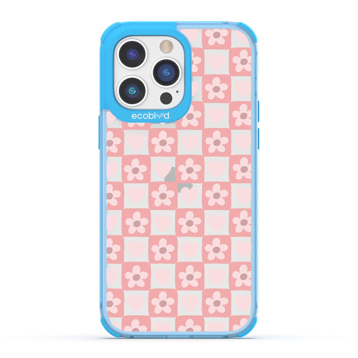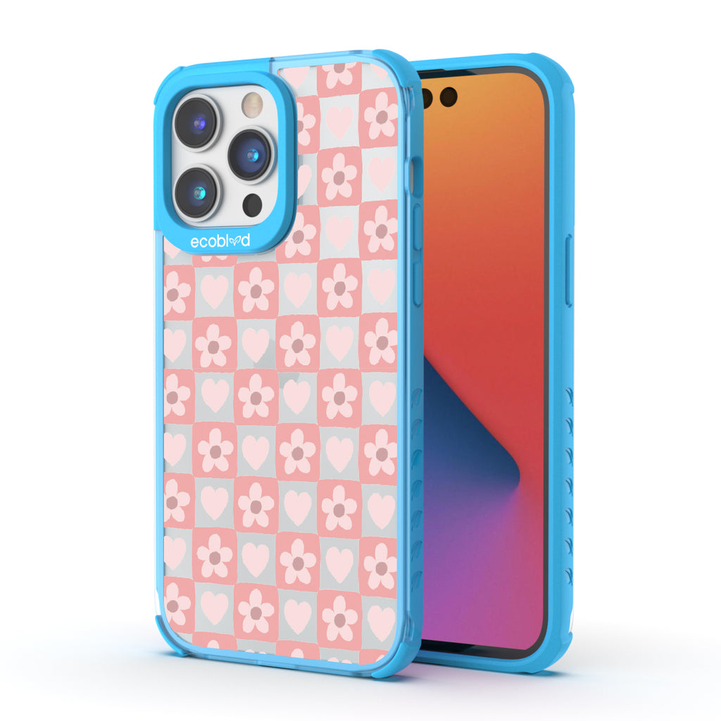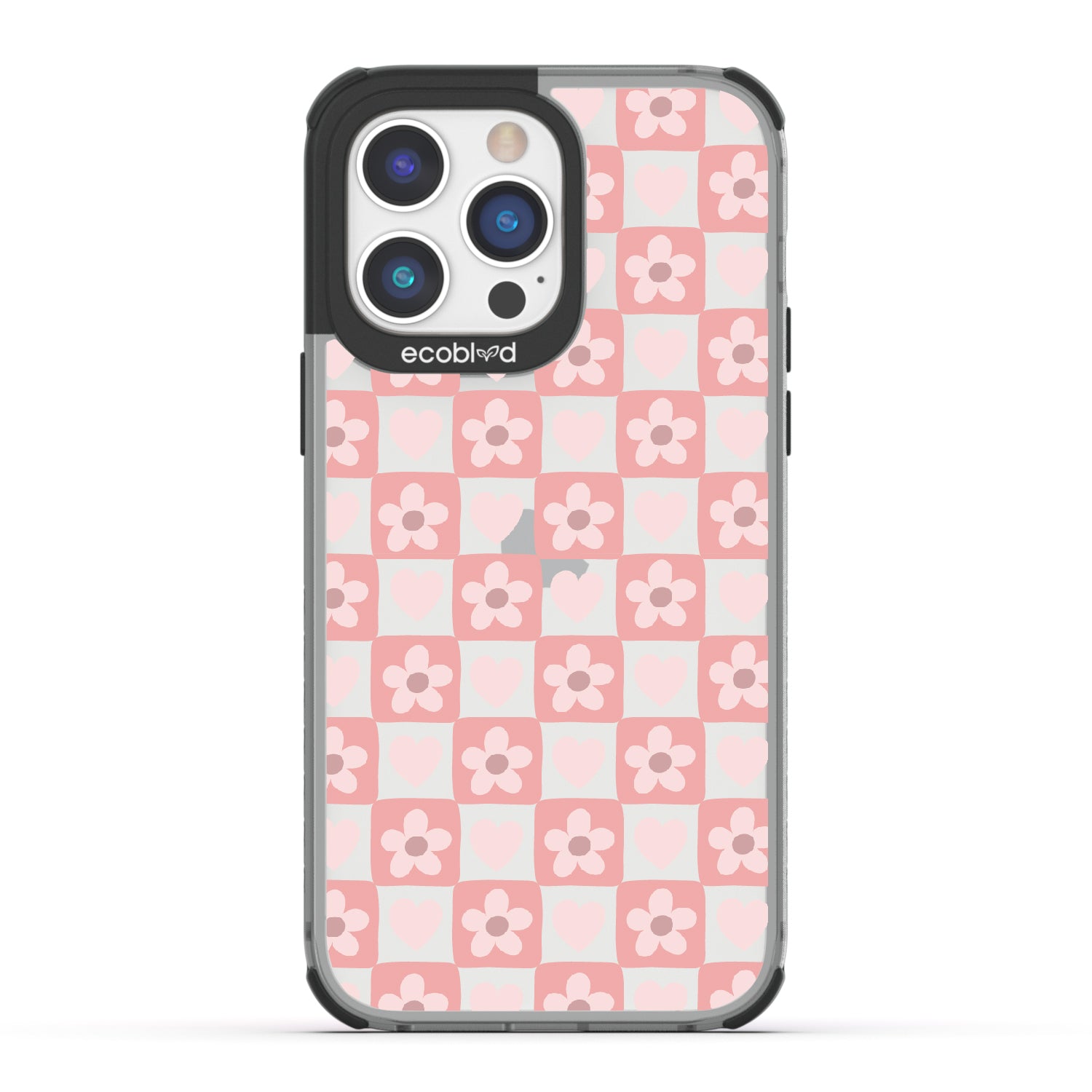 iPhone 14 Pro Max phone case. Adorned with hearts and flowers, this girly checker print pattern brings a sweet yet strategic flair to your phone. Each piece is a step towards fashion wins.