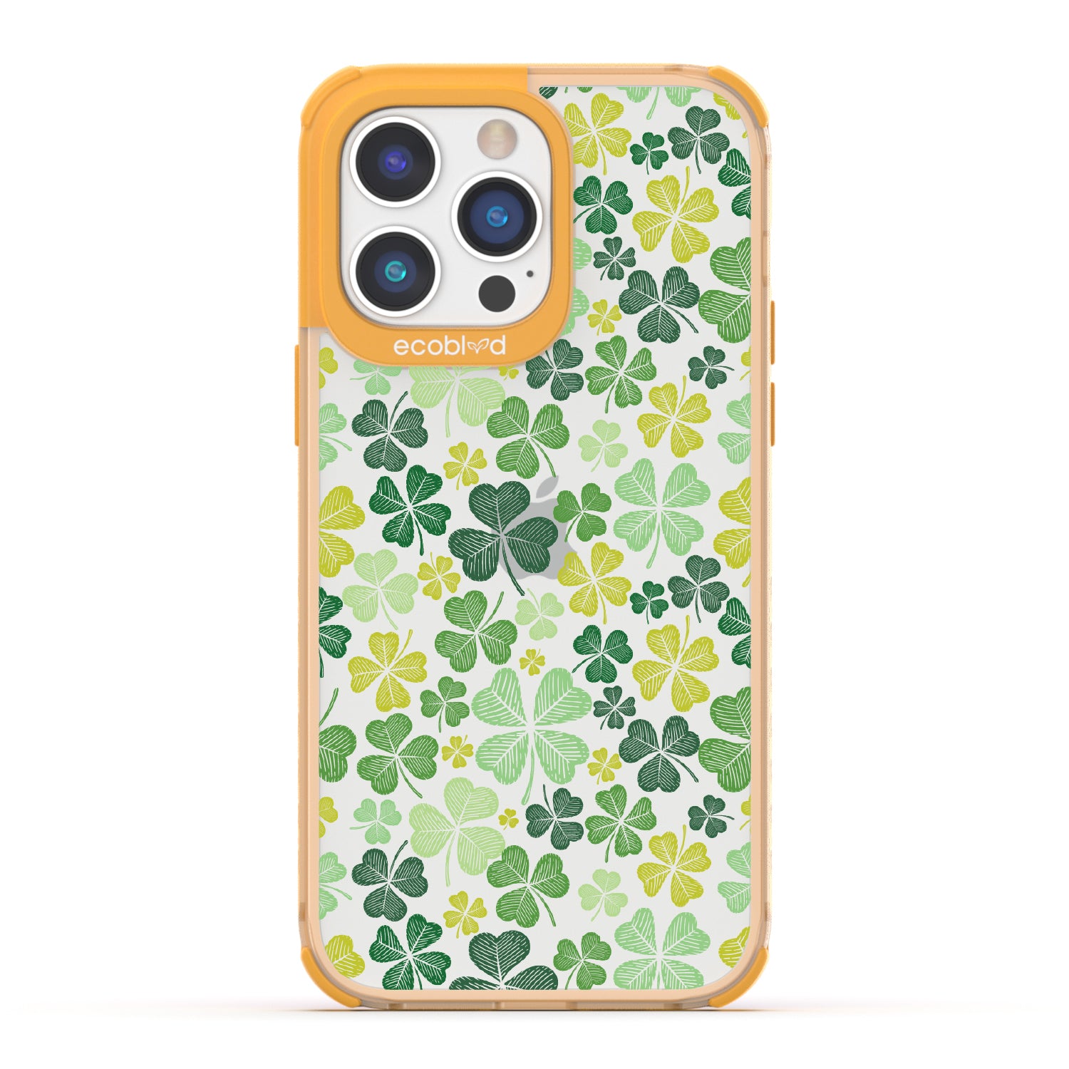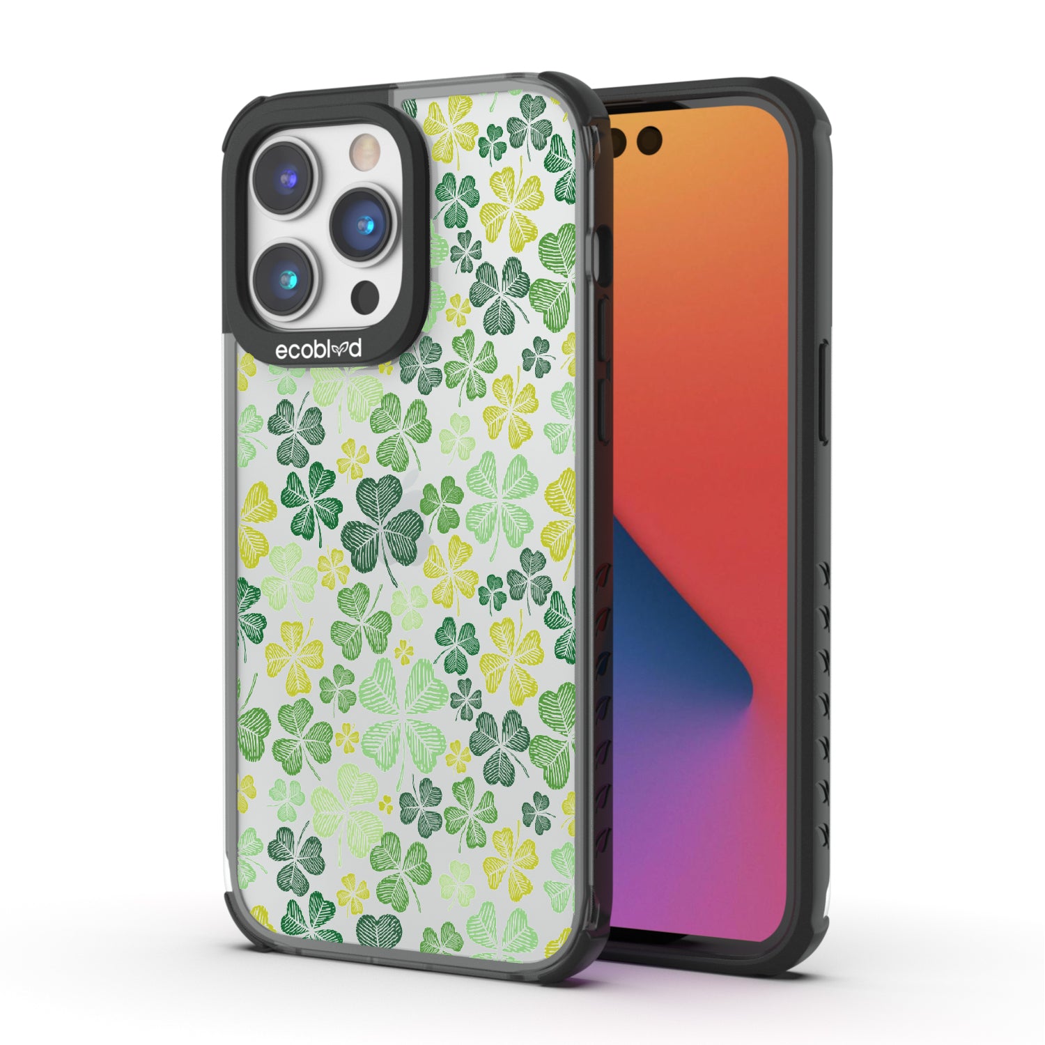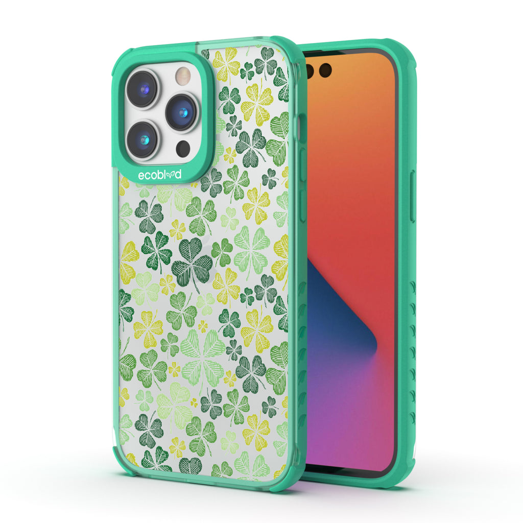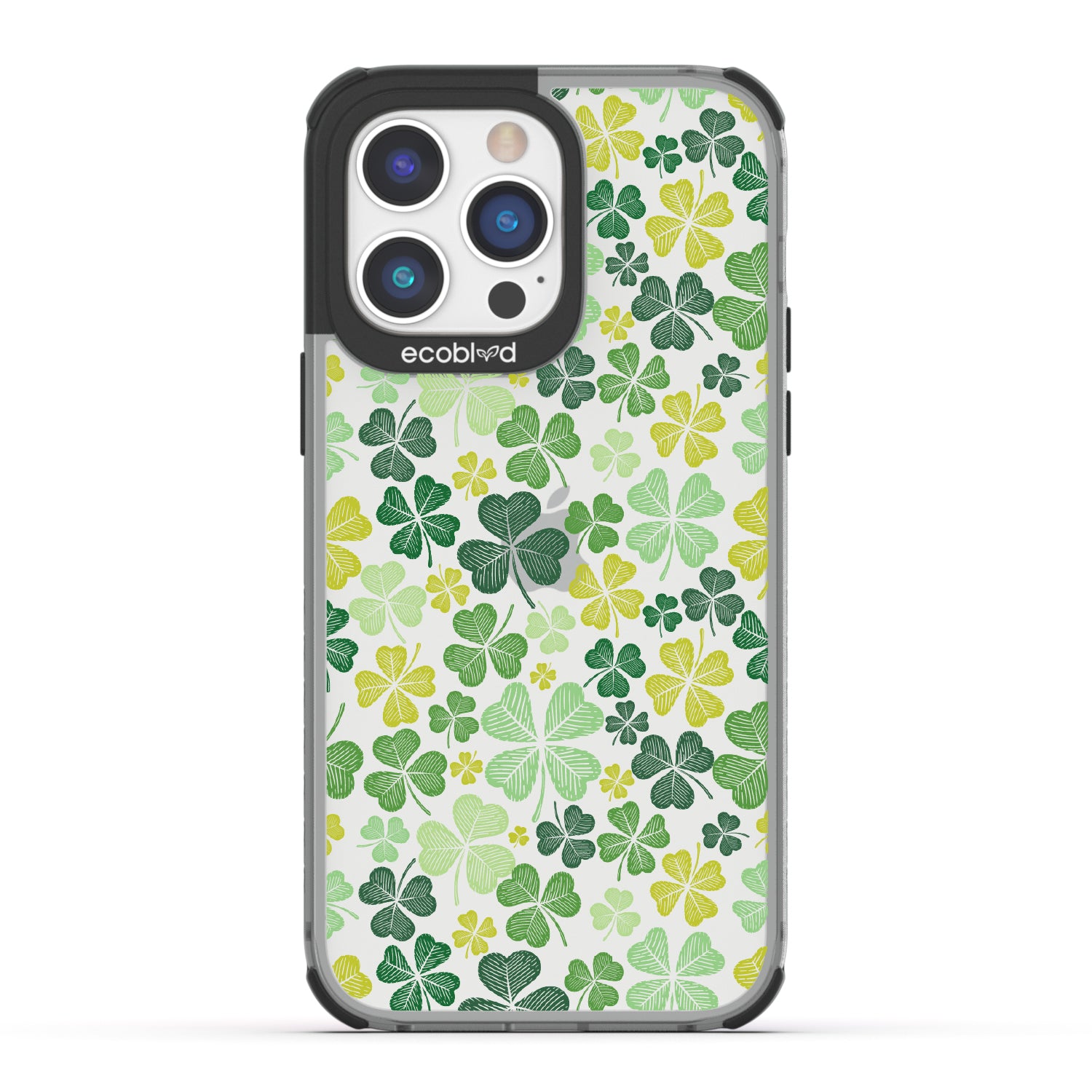 Turn your luck around with the vibrant Shamrock design on our Laguna clear iPhone 14 Pro Max case, where every leaf whispers tales of fortune and fate. Adorned with a sea of green four-leaf clovers, this design is a true emblem of luck, designed to bring a touch of charm.