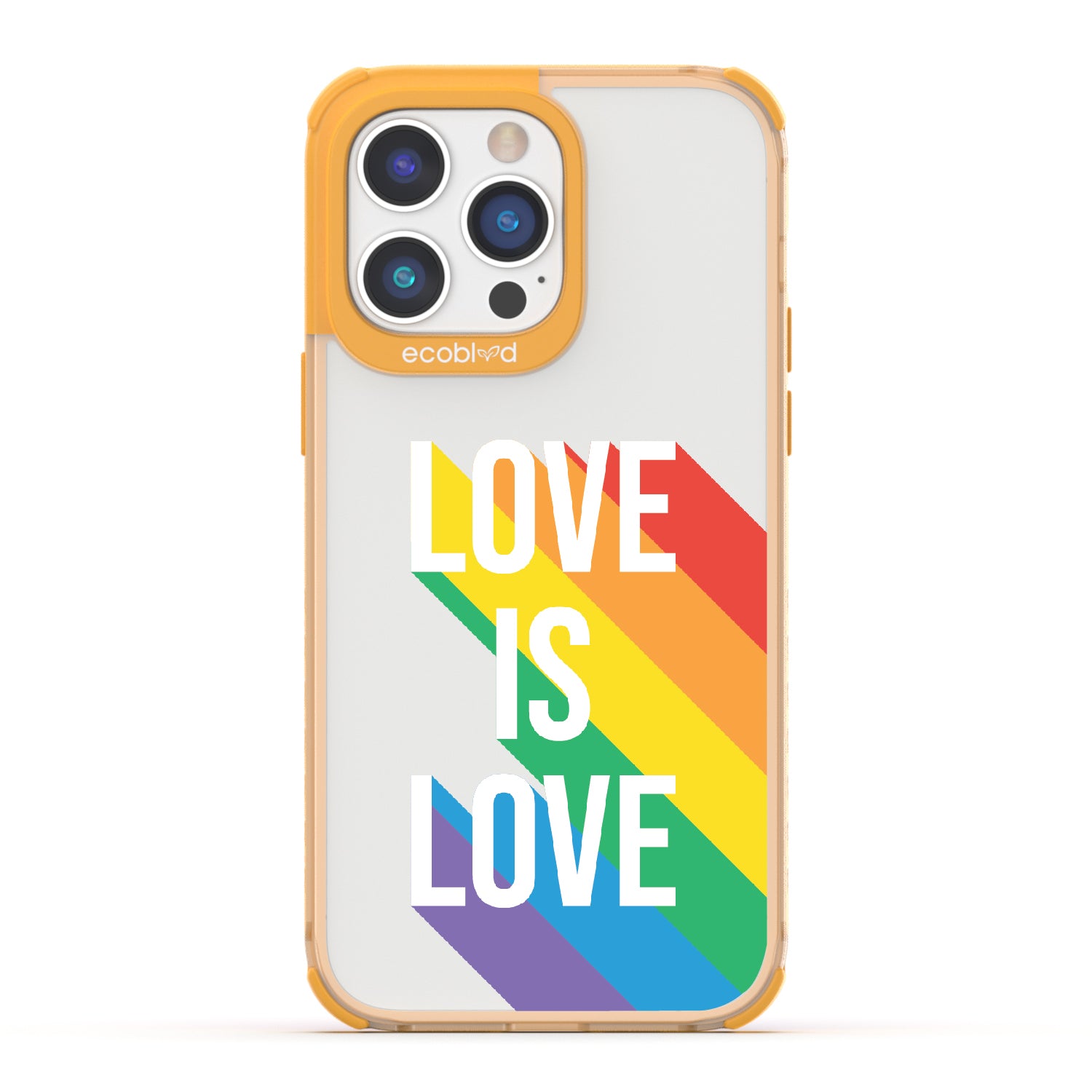 Unleash the radiant energy of the Spectrum of Love design with the Laguna clear iPhone 14 Pro Max case, where the words 'Love Is Love' become a powerful declaration of pride and acceptance. Each letter is adorned with a vibrant cascade of rainbow colors, beautifully mirroring diversity and inclusivity. Let this design be a symbol of your pride, radiating love and acceptance wherever you go. Embrace the spectrum of love and make a bold statement, spreading positivity and celebrating the beauty of every unique love story.