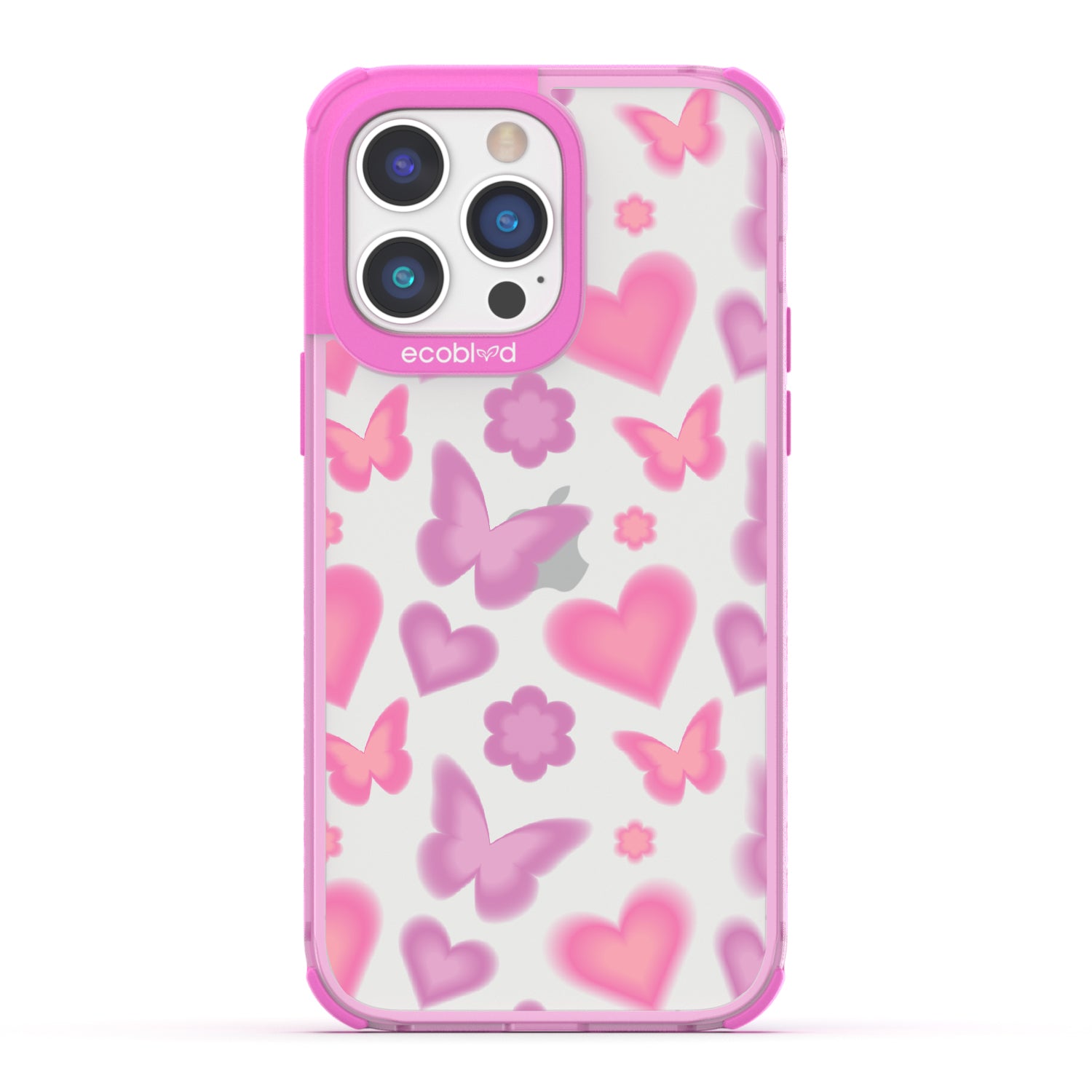 Let your heart flutter with the Spring Fling design on our Laguna clear iPhone 14 Pro Max case, where neon butterflies and hearts spark romance in the air. This vibrant design combines the electrifying energy of neon with the delicate beauty of butterflies and hearts, embodying the essence of a spring romance. Add a dash of love and vibrancy to your phone, letting the Spring Fling case be a beacon of joy and connection.