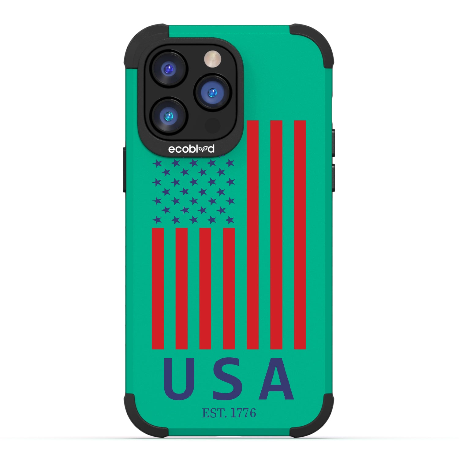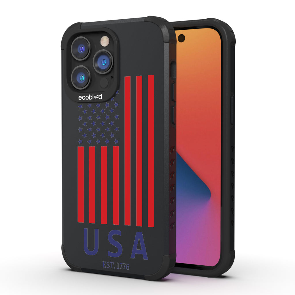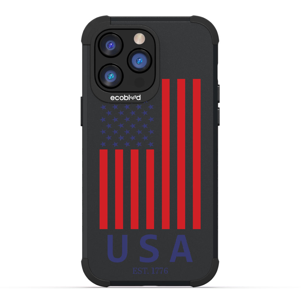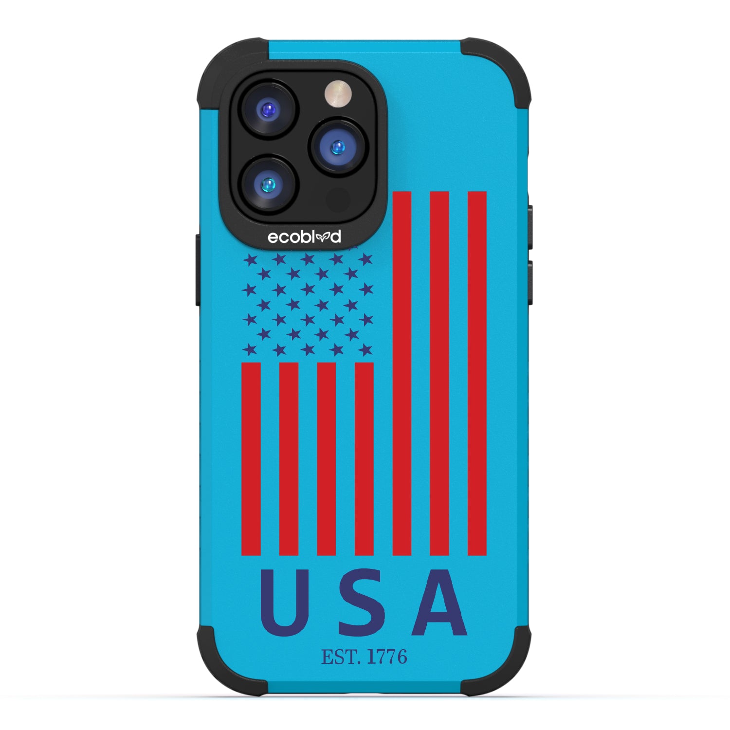 Let freedom ring loud all year long with the EST 1776 design on our Mojave rugged iPhone 14 Pro Max phone case. This design showcases the iconic stars and stripes, along with "USA" and "EST. 1776," making it the perfect accessory for all patriotic festivities and beyond.