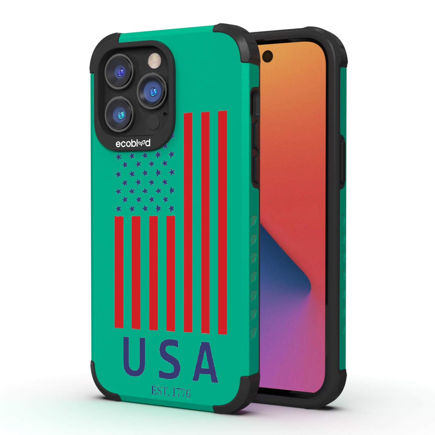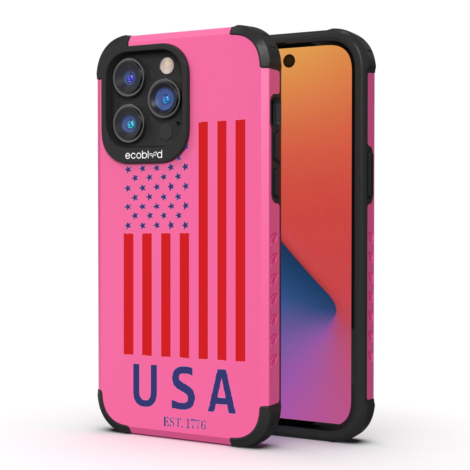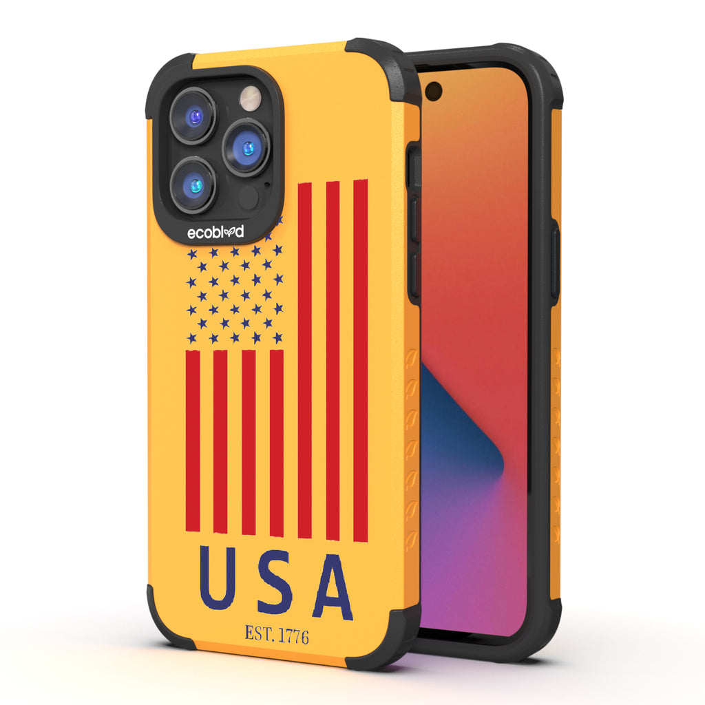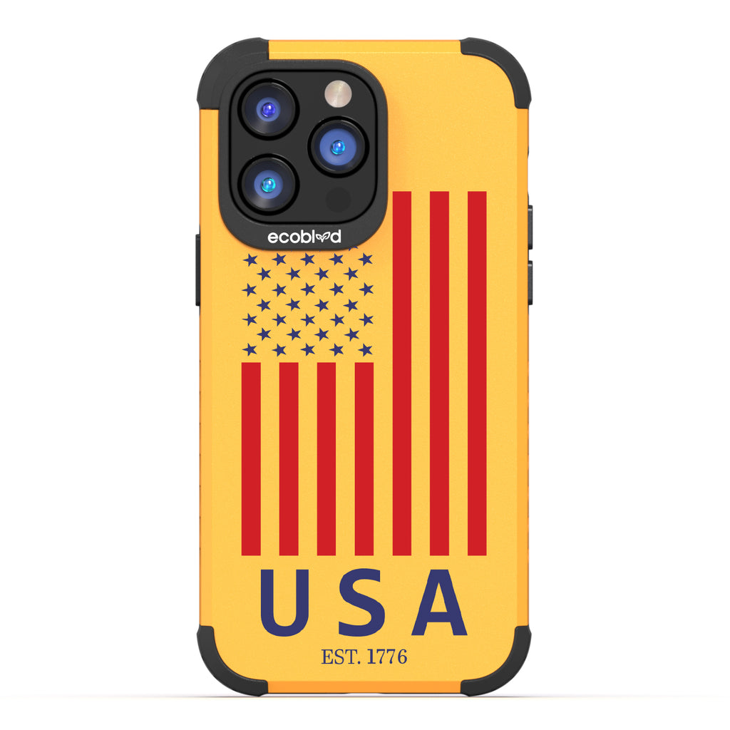 Let freedom ring loud all year long with the EST 1776 design on our Mojave rugged iPhone 14 Pro Max phone case. This design showcases the iconic stars and stripes, along with "USA" and "EST. 1776," making it the perfect accessory for all patriotic festivities and beyond.