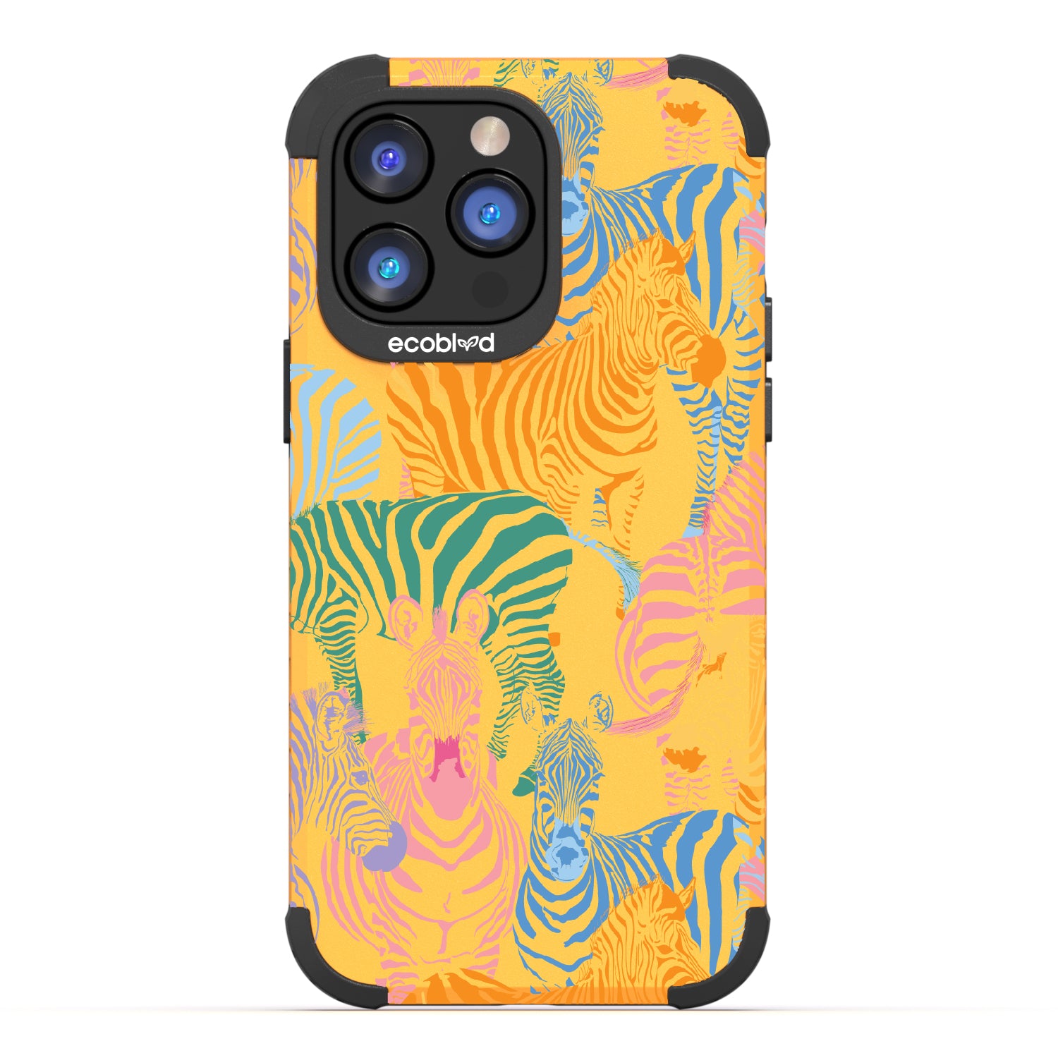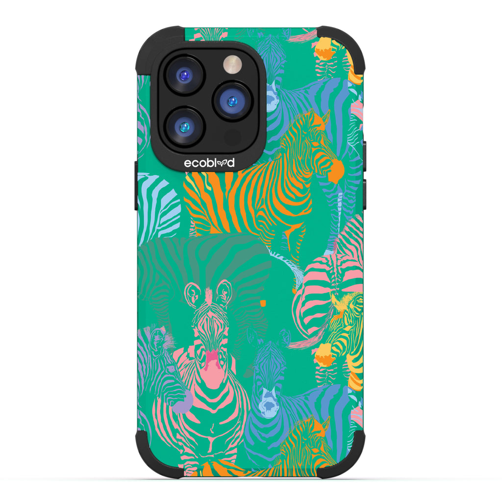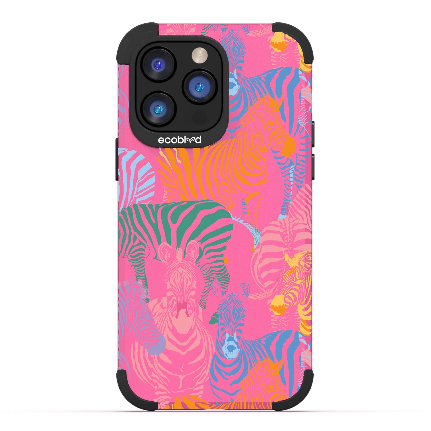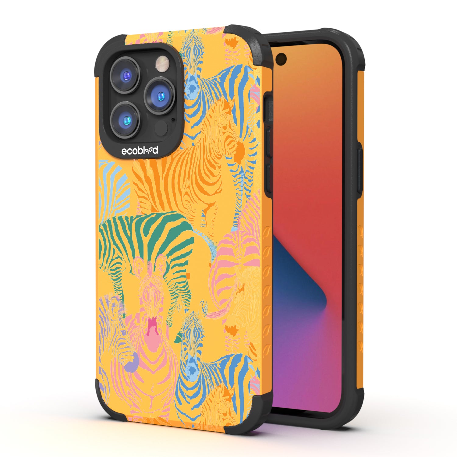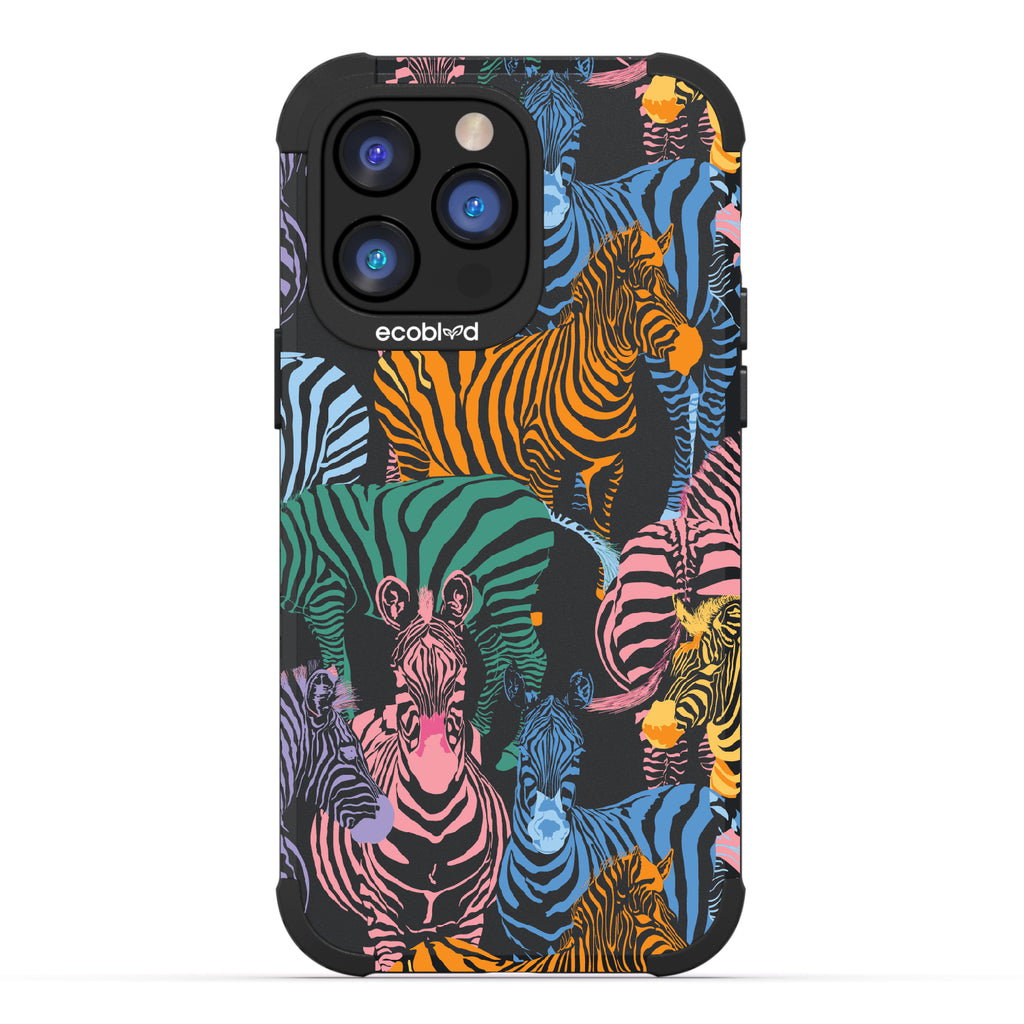 Unleash your inner zebra and join the Colorful Herd design on our Mojave rugged and compostable iPhone 14 Pro Max case. Embrace the vibrant beauty of zebras adorned in the colors of the rainbow as they become your style statement, radiating confidence, individuality, and a celebration of diversity while supporting ocean conservation efforts. Show off your true colors with the Colorful Herd phone case. This design is perfect for those who embrace their individuality and aren't afraid to stand out from the herd in five captivating colors: Midnight Black, Cascade Blue, Foliage Green, Illuminating Yellow, and Wildflower Pink. With this phone case, you carry with you a powerful reminder to stand out with pride, embracing the vibrant and untamed spirit within while celebrating the beauty of diversity and unity.