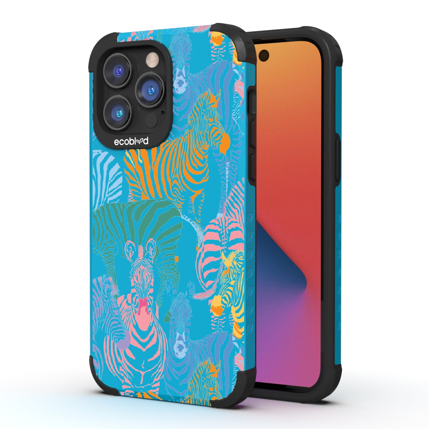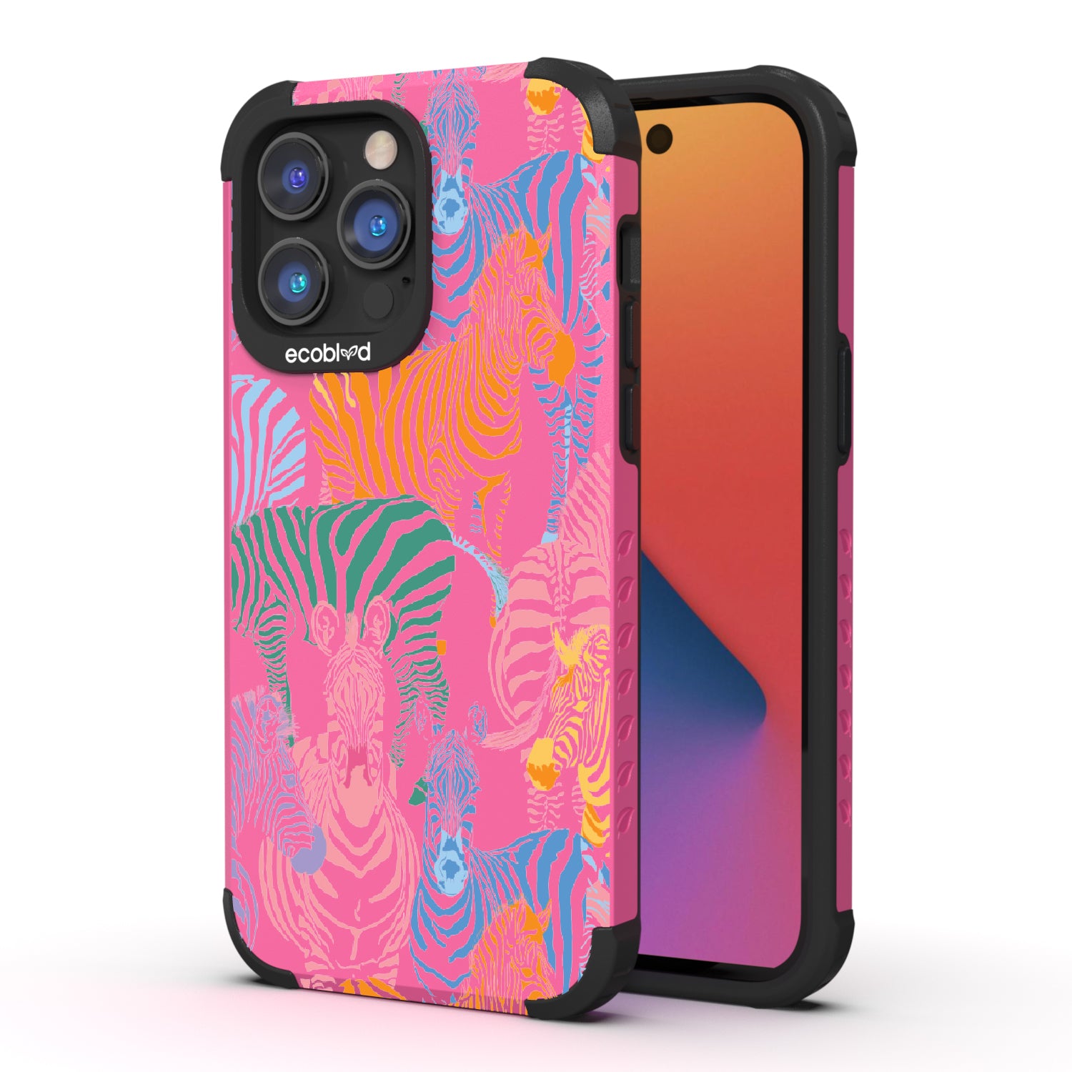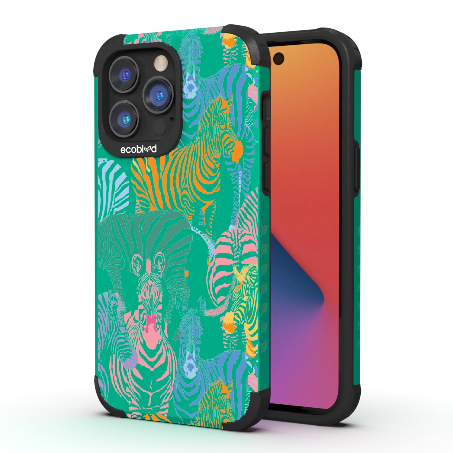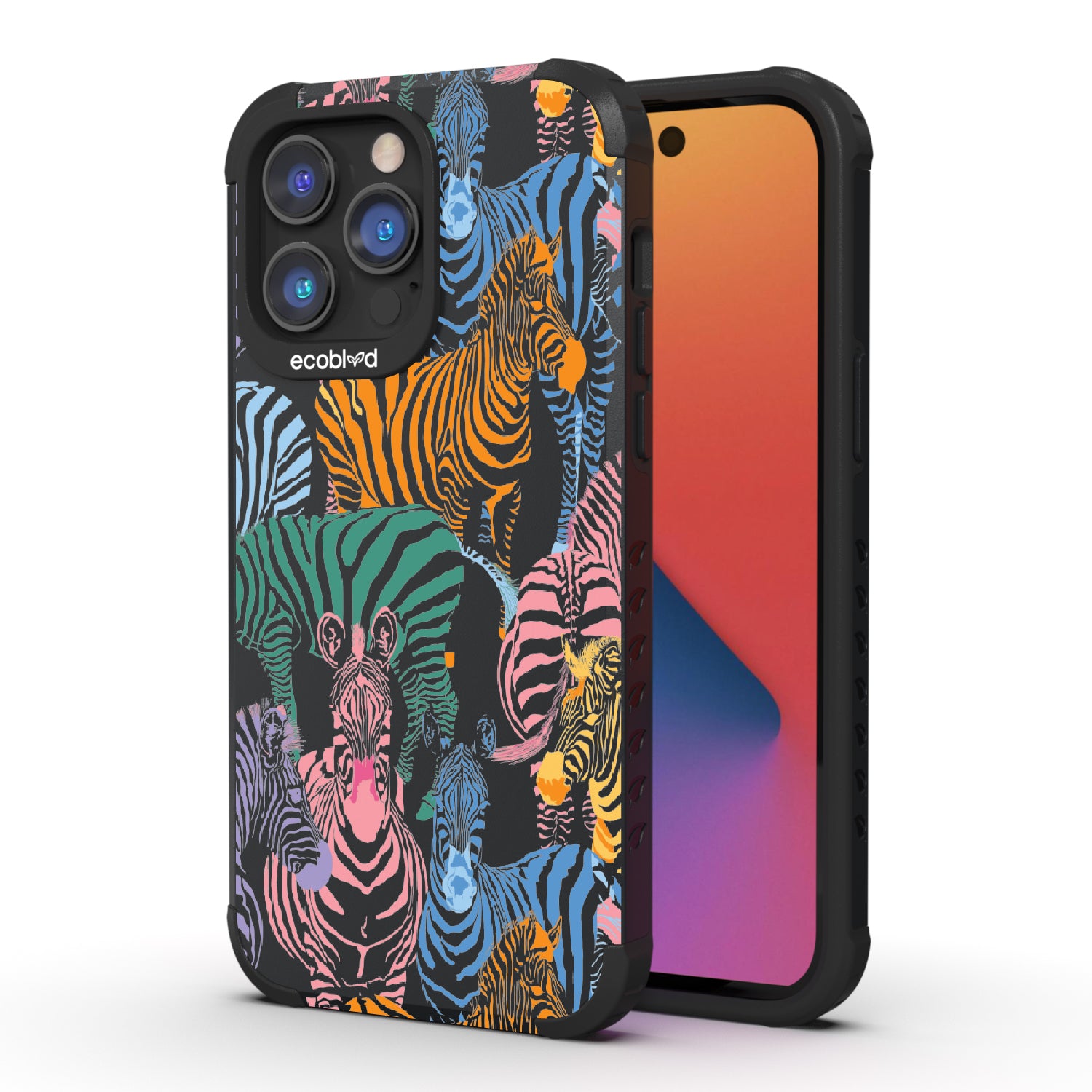 Unleash your inner zebra and join the Colorful Herd design on our Mojave rugged and compostable iPhone 14 Pro Max case. Embrace the vibrant beauty of zebras adorned in the colors of the rainbow as they become your style statement, radiating confidence, individuality, and a celebration of diversity while supporting ocean conservation efforts. Show off your true colors with the Colorful Herd phone case. This design is perfect for those who embrace their individuality and aren't afraid to stand out from the herd in five captivating colors: Midnight Black, Cascade Blue, Foliage Green, Illuminating Yellow, and Wildflower Pink. With this phone case, you carry with you a powerful reminder to stand out with pride, embracing the vibrant and untamed spirit within while celebrating the beauty of diversity and unity.