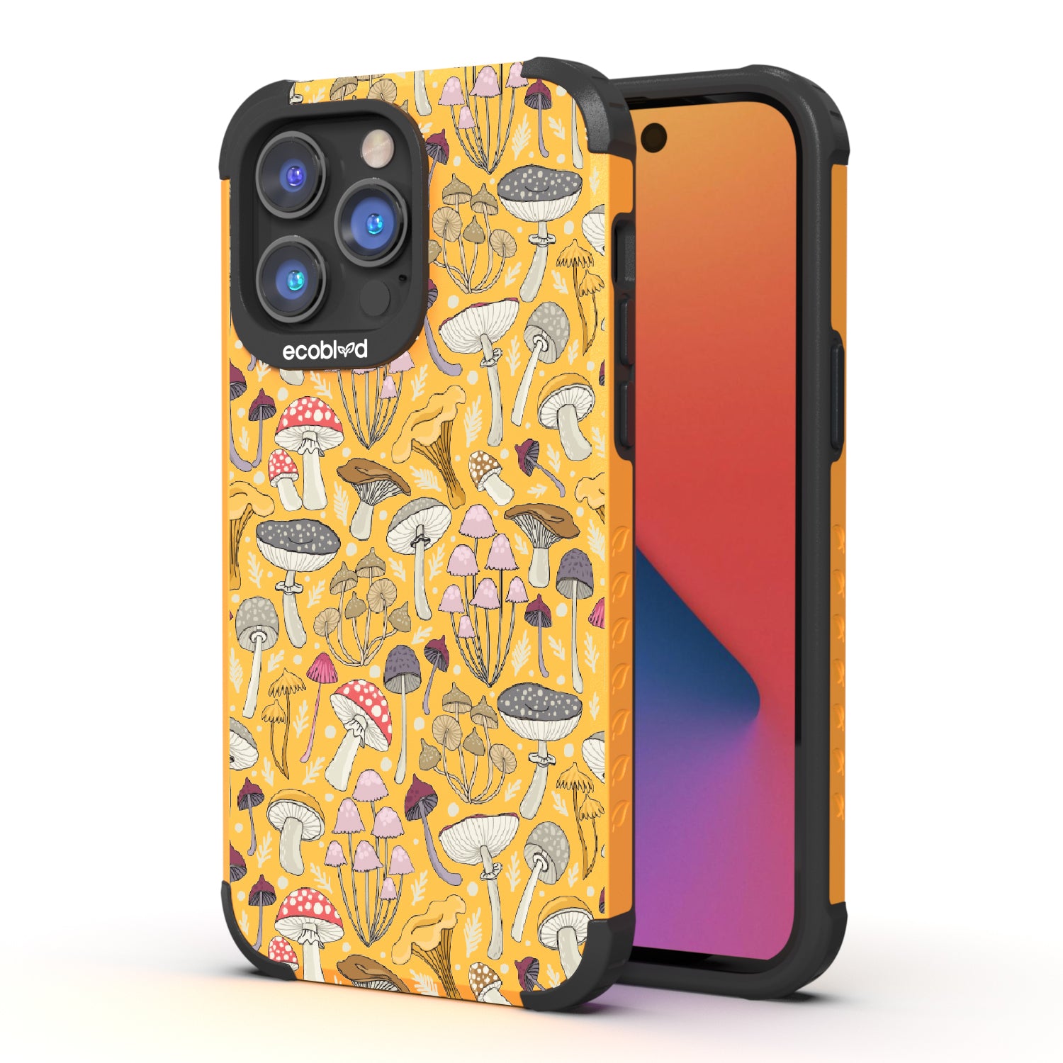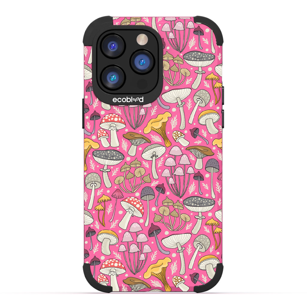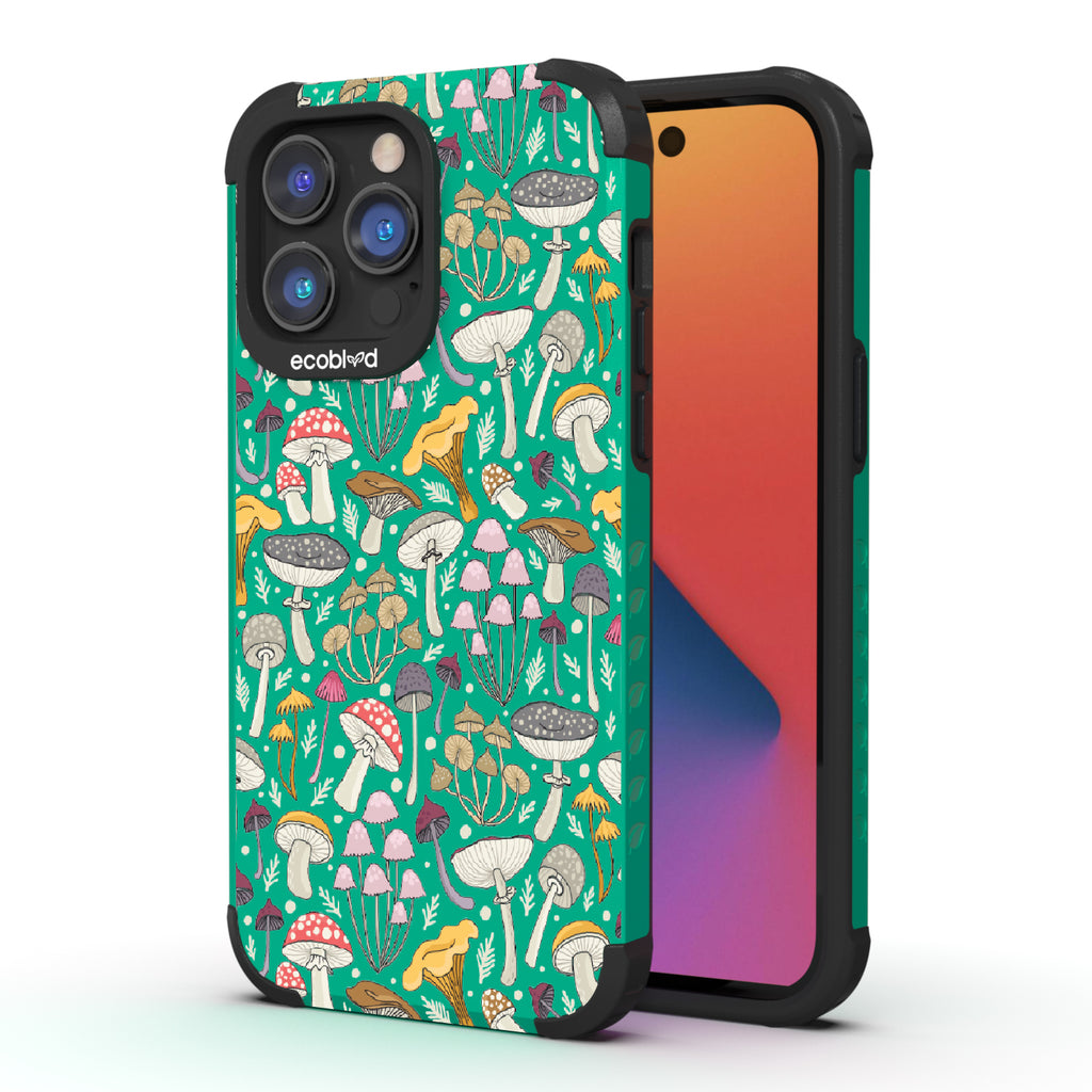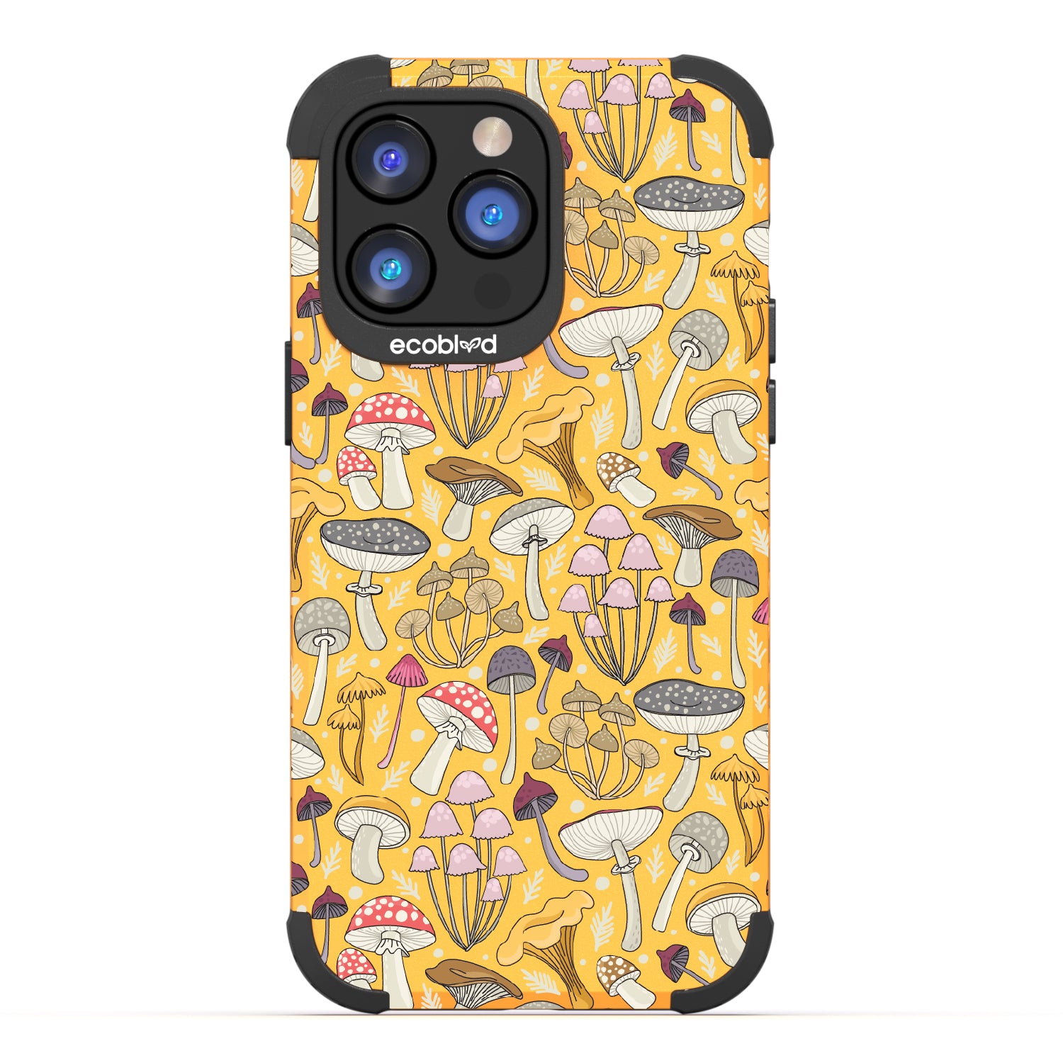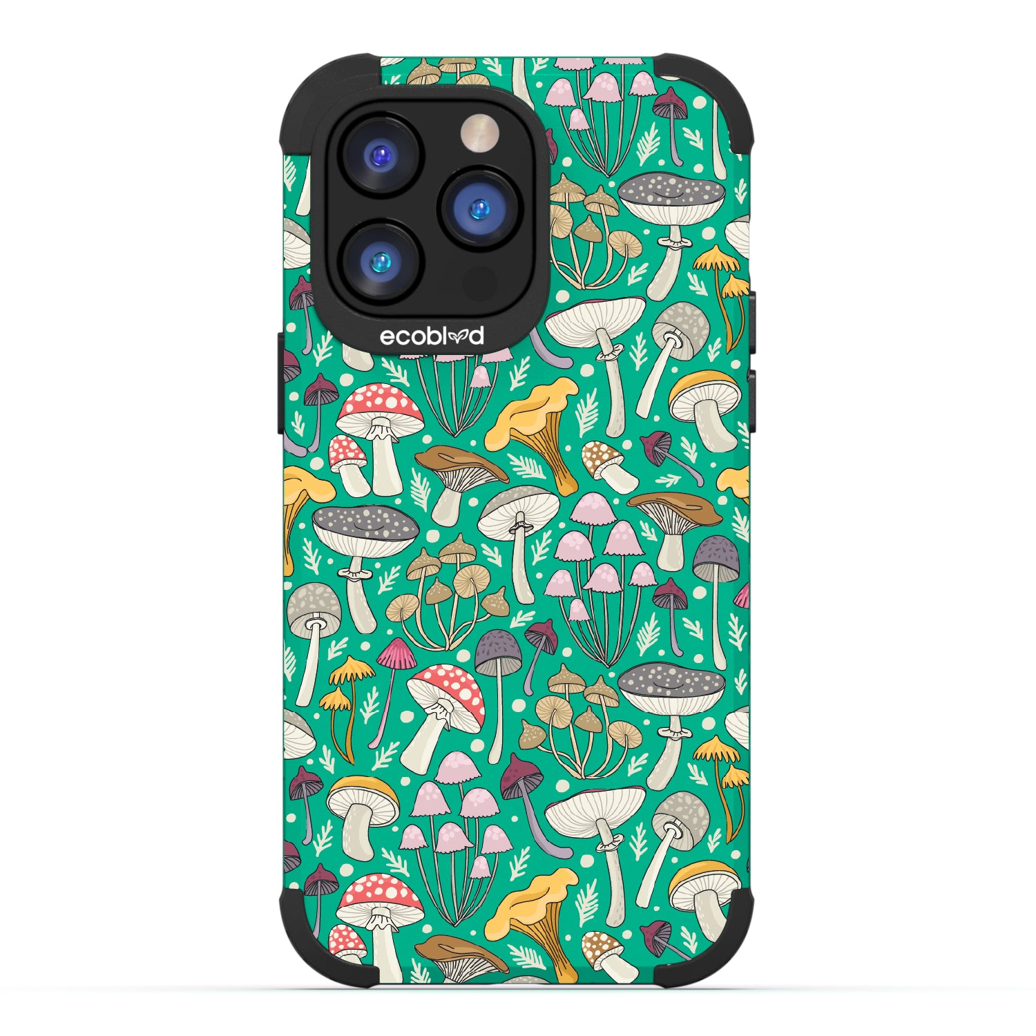 The Foraging design on our Mojave rugged and compostable iPhone 14 Pro Max case encourages you to uncover the hidden beauty of nature, as each toadstool and mushroom conceals a world of wonder just beneath the surface, adding a touch of fun-gi to your phone. Just as each mushroom bring a sense of charm to the forest floor, this playful design infuses your device with a spirit of discovery.