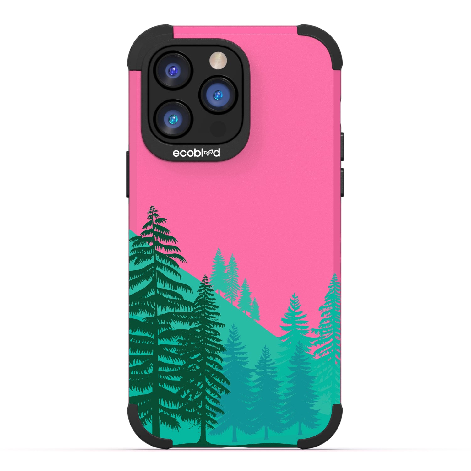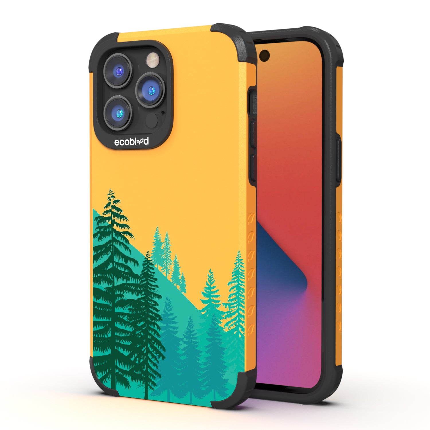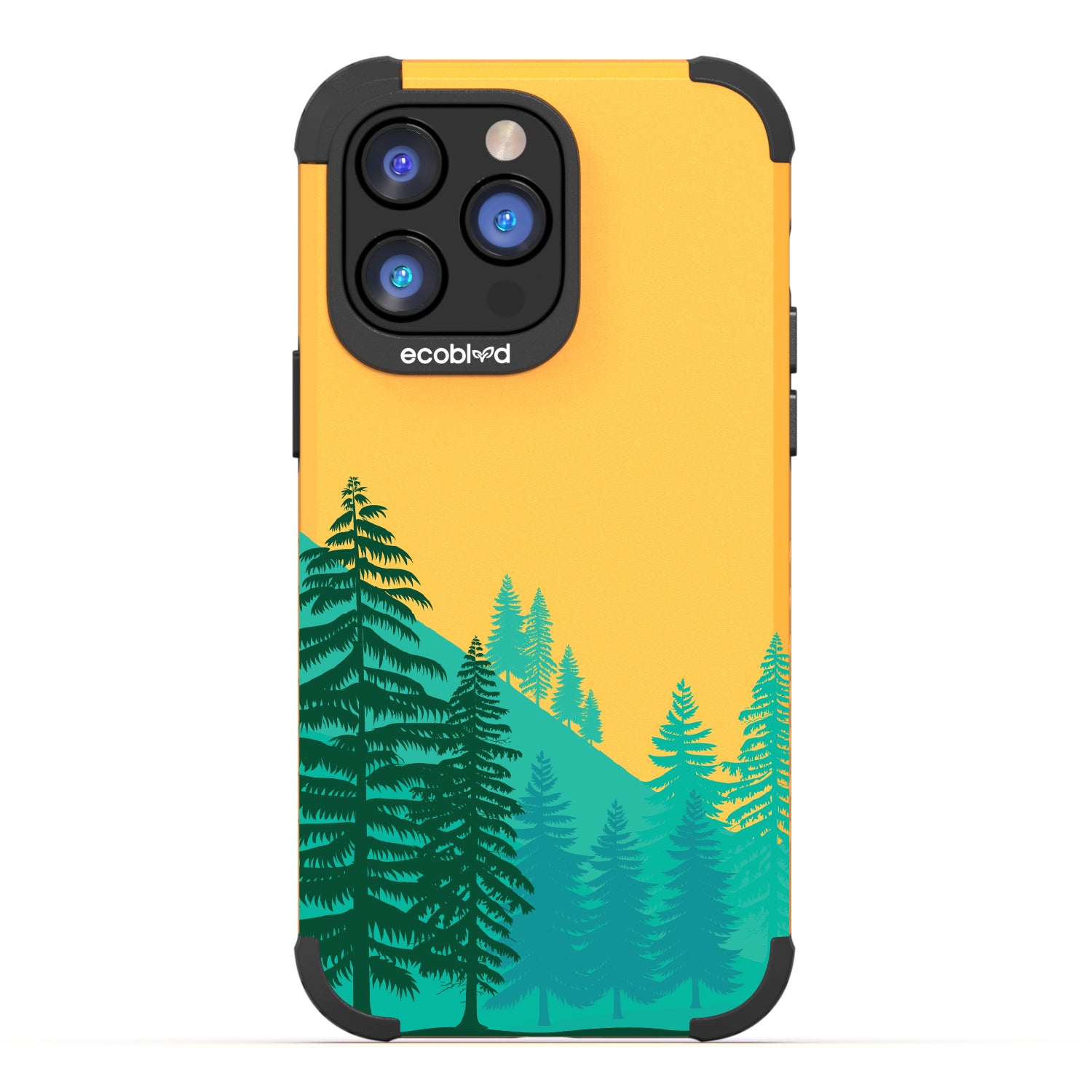 Get dialed into the wonder of nature as the Forest design on our Mojave rugged and compostable iPhone 14 Pro Max case surrounds your phone. Explore the great outdoors with a lush forest of fir trees in five vibrant colors: Midnight Black, Cascade Blue, Foliage Green, Illuminating Yellow, and Wildflower Pink.