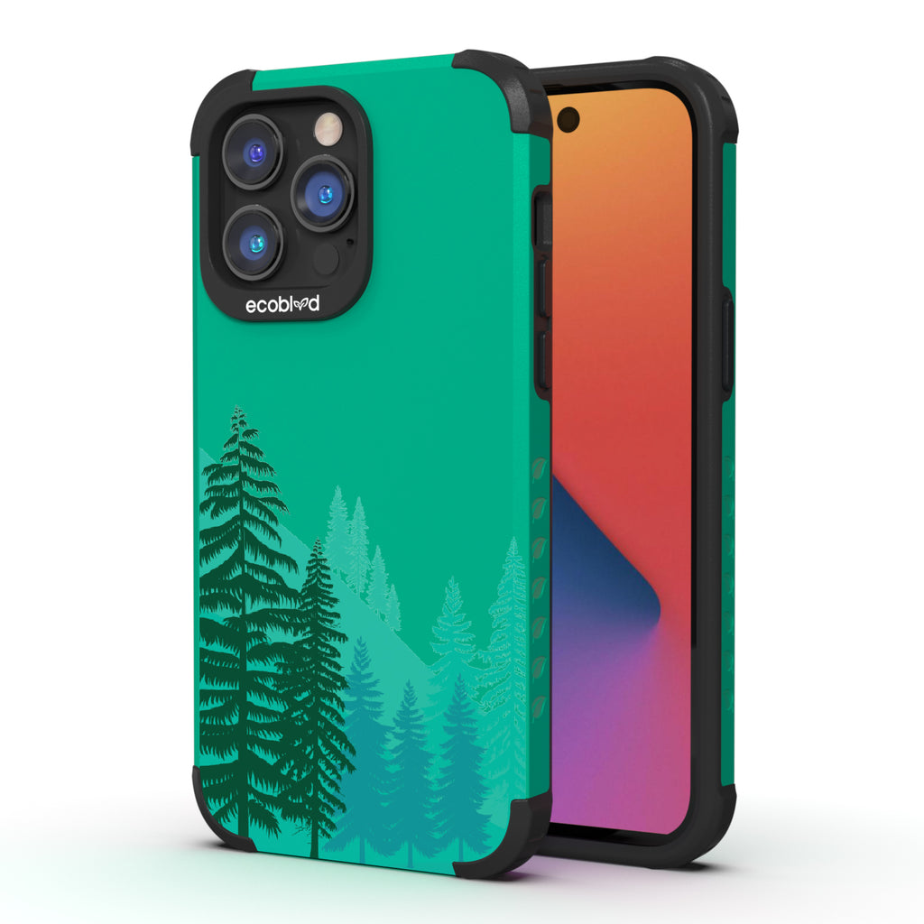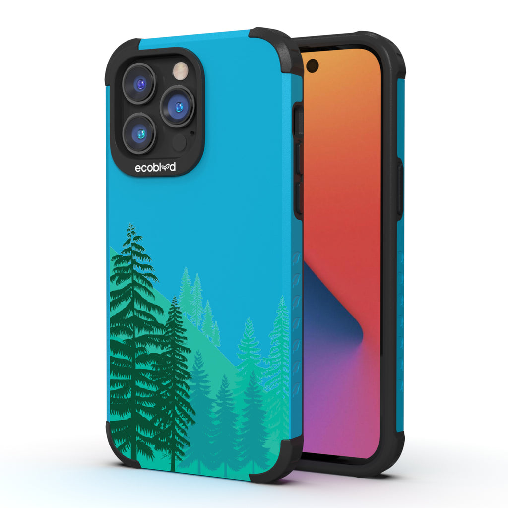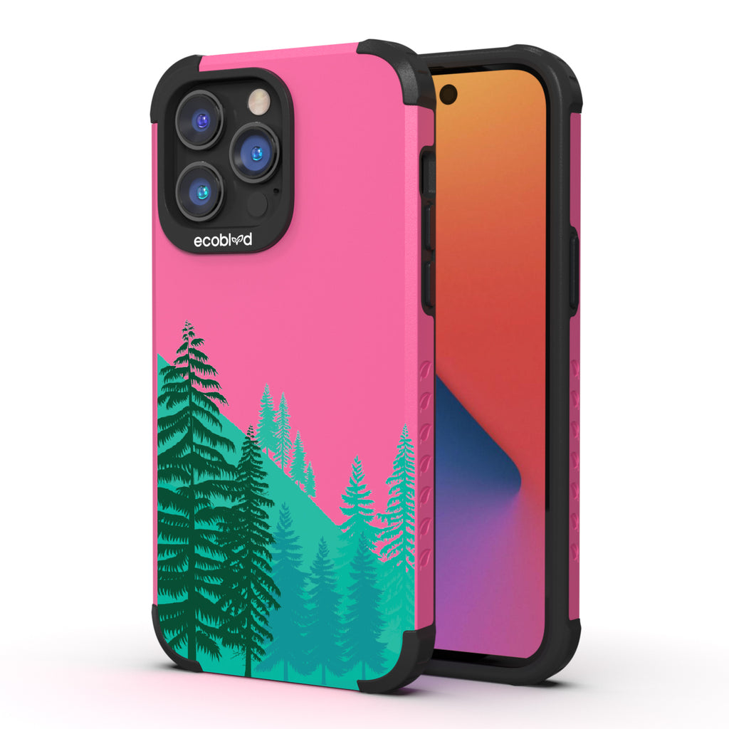 Get dialed into the wonder of nature as the Forest design on our Mojave rugged and compostable iPhone 14 Pro Max case surrounds your phone. Explore the great outdoors with a lush forest of fir trees in five vibrant colors: Midnight Black, Cascade Blue, Foliage Green, Illuminating Yellow, and Wildflower Pink.