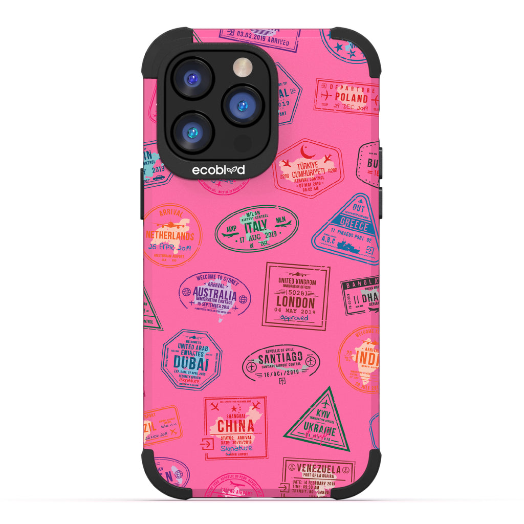 Take your phone on a world tour with the Frequent Flyer design on our Mojave rugged iPhone 14 Pro Max case. It’s a jet-setting journey across the globe, with stamps from Sydney to Rome, making every text a postcard from abroad. Gear up your phone with this travel-ready case, and let every call be a new stamp in your passport to adventure.