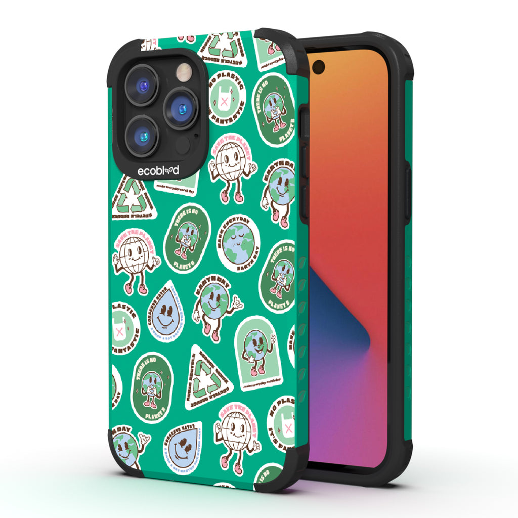 For the love of the planet, let's do it for the Greener Good with this cute design on our Mojave rugged iPhone 14 Pro Max case. Plastered with stickers that shout 'reduce, renew, recycle' and 'no plastic, it's fantastic,' this case is a walking billboard for eco-activism. Carry this message, spread the word, and let's sticker our way to a greener world together.