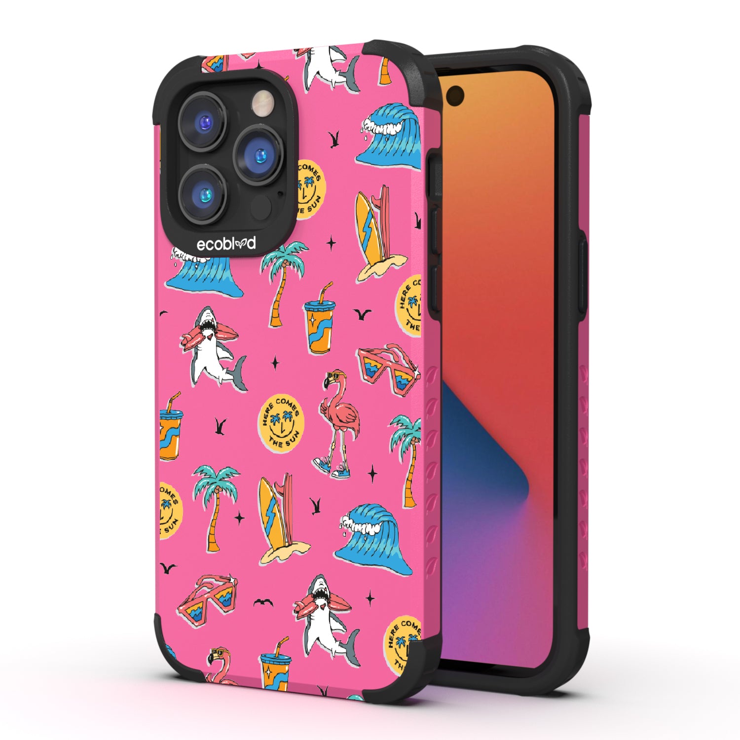 Slip on your flip-flops, grab your shades, and let the Here Comes The Sun design on our Mojave rugged and compostable iPhone 14 Pro Max phone case complete your sun-soaked style. From sunrise to sunset, it brightens your world, just like the summer sun. Here comes the fun, so make sure your phone shines wherever you roam.