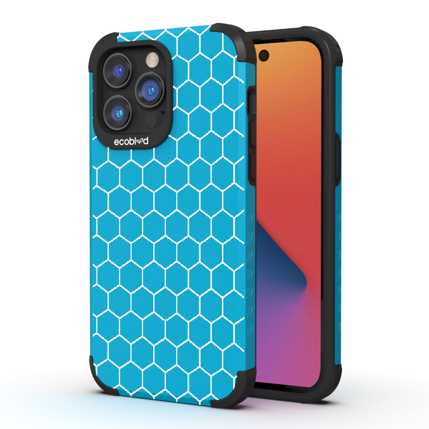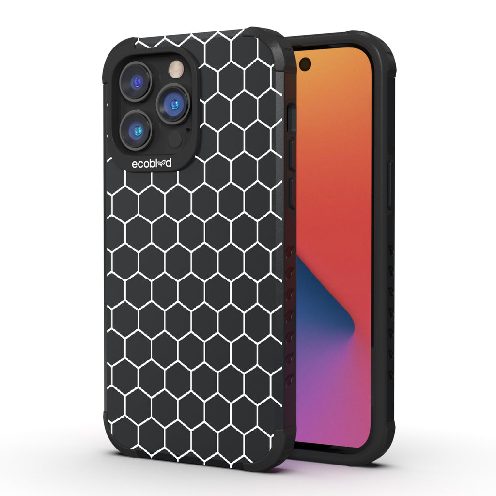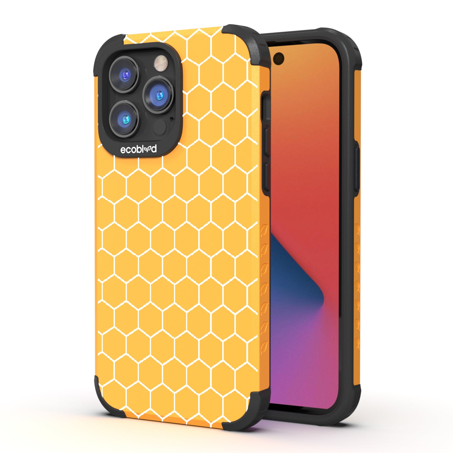 The Honeycomb design on our Mojave rugged and compostable iPhone 14 Pro Max phone case, is the perfect amount of sweet intricacy for keeping you stylish as you bumble along with your phone. Choose from five vibrant colors: Midnight Black, Cascade Blue, Foliage Green, Illuminating Yellow, and Wildflower Pink."