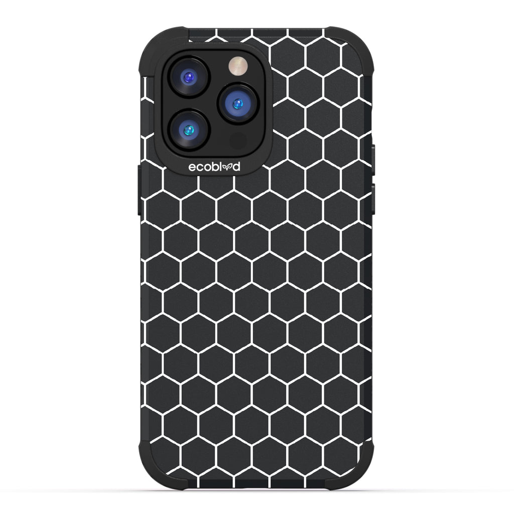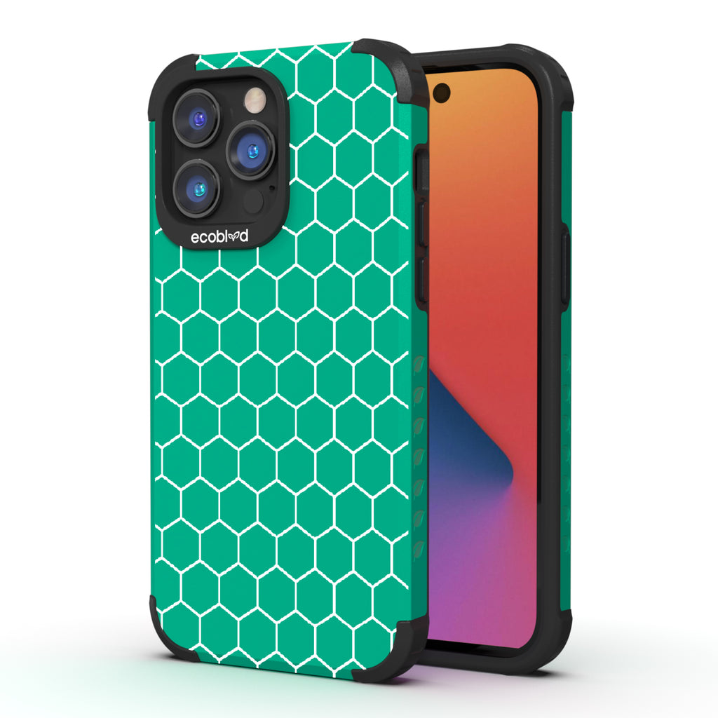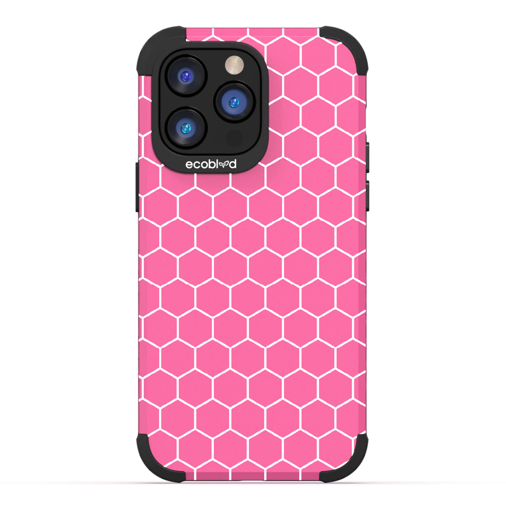 The Honeycomb design on our Mojave rugged and compostable iPhone 14 Pro Max phone case, is the perfect amount of sweet intricacy for keeping you stylish as you bumble along with your phone. Choose from five vibrant colors: Midnight Black, Cascade Blue, Foliage Green, Illuminating Yellow, and Wildflower Pink."