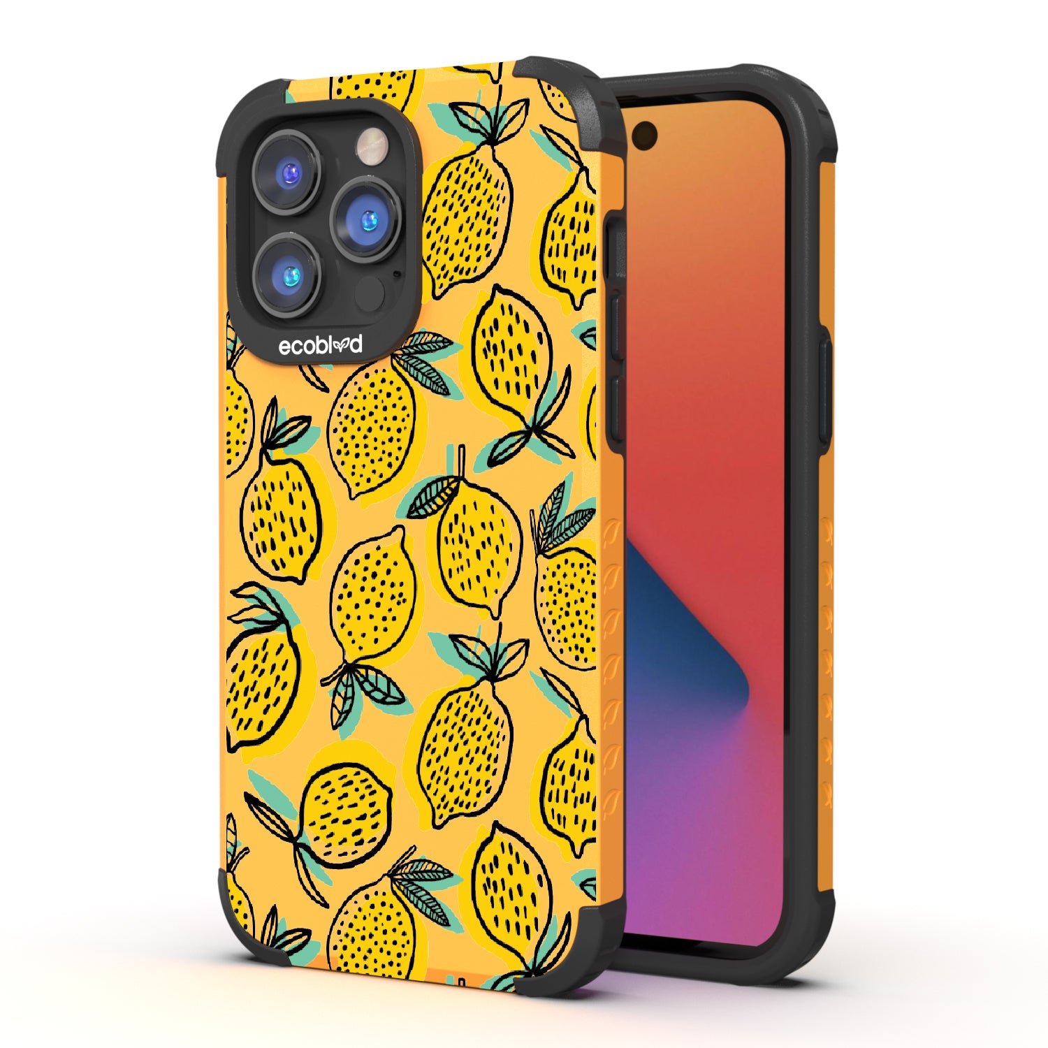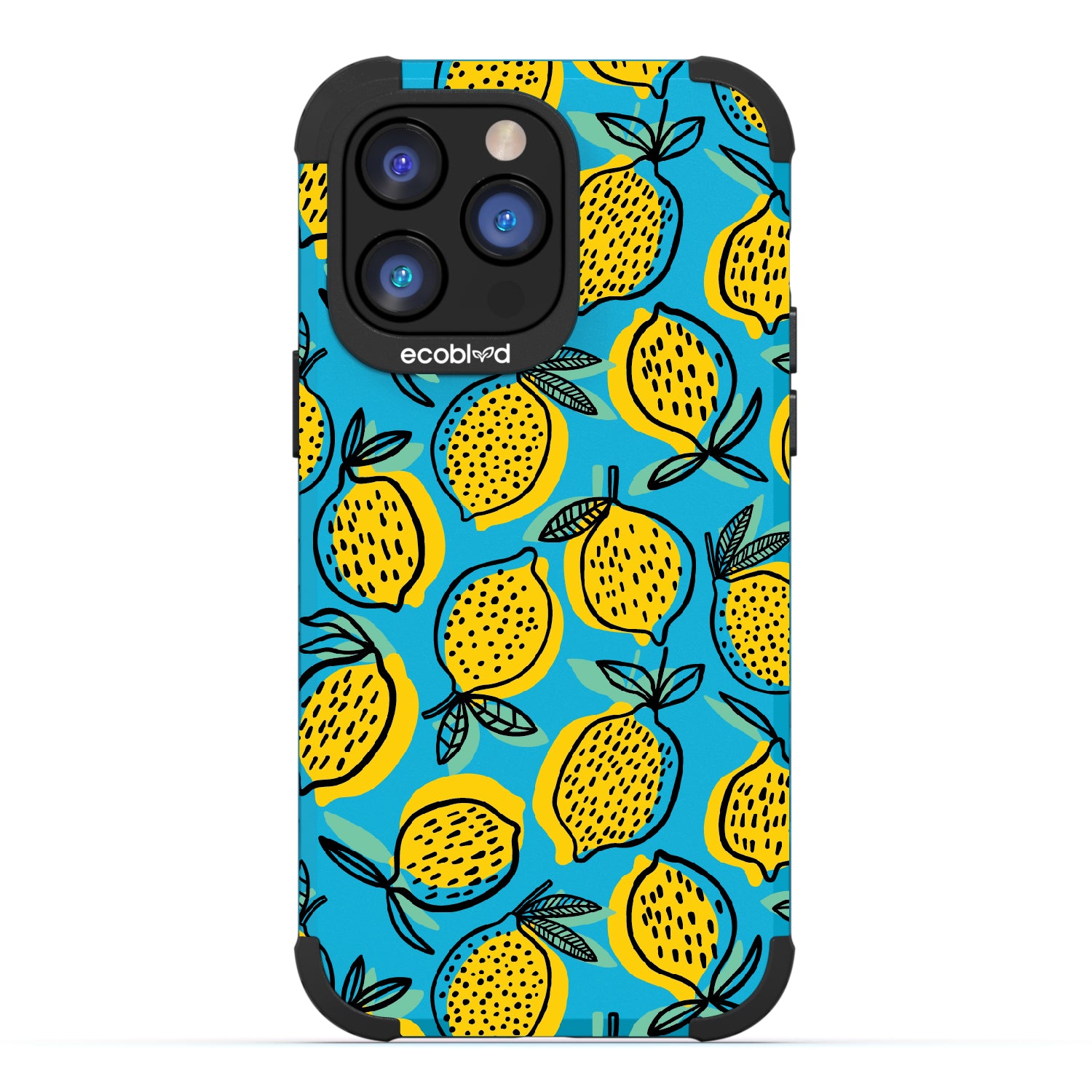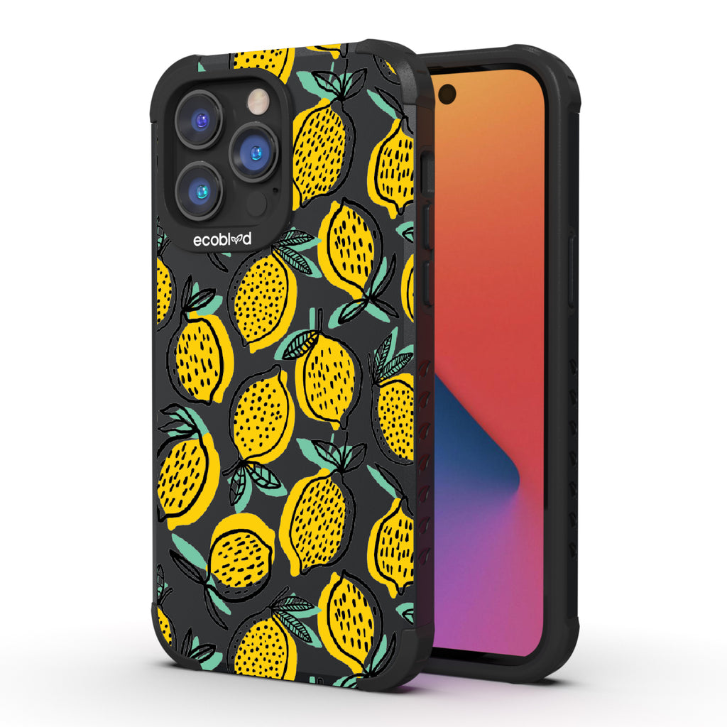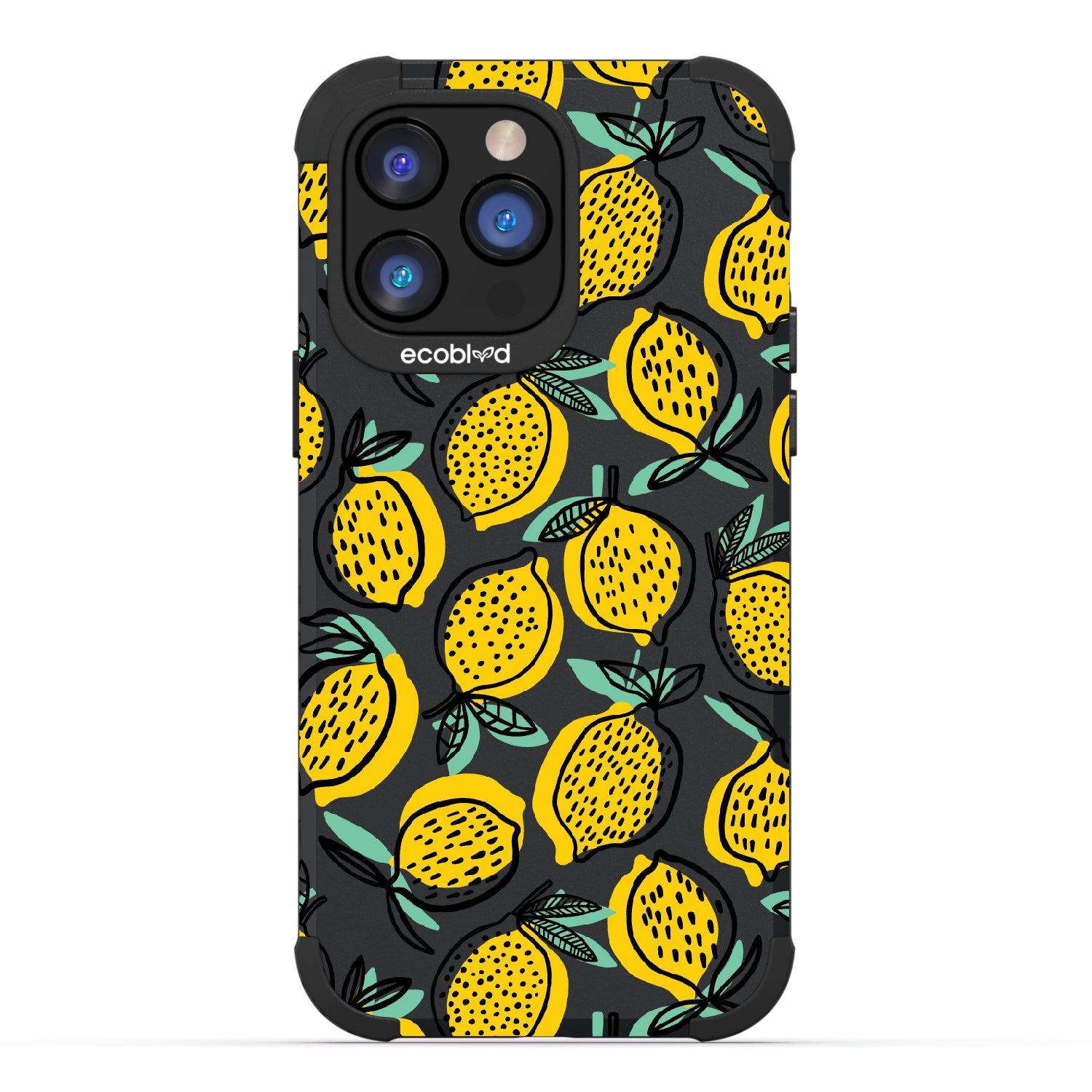 Add a refreshing twist to your style with the Lemon Drop design on our Mojave rugged and compostable iPhone 14 Pro Max phone case. Its retro lemon print is like a slice of sunshine, infusing your look with a pop of vibrant energy. This design is your daily dose of fresh charm that reminds you to enjoy summer's sunny moments. Get ready to squeeze every drop of joy out of life and spruce up your phone with lemony flavor.
