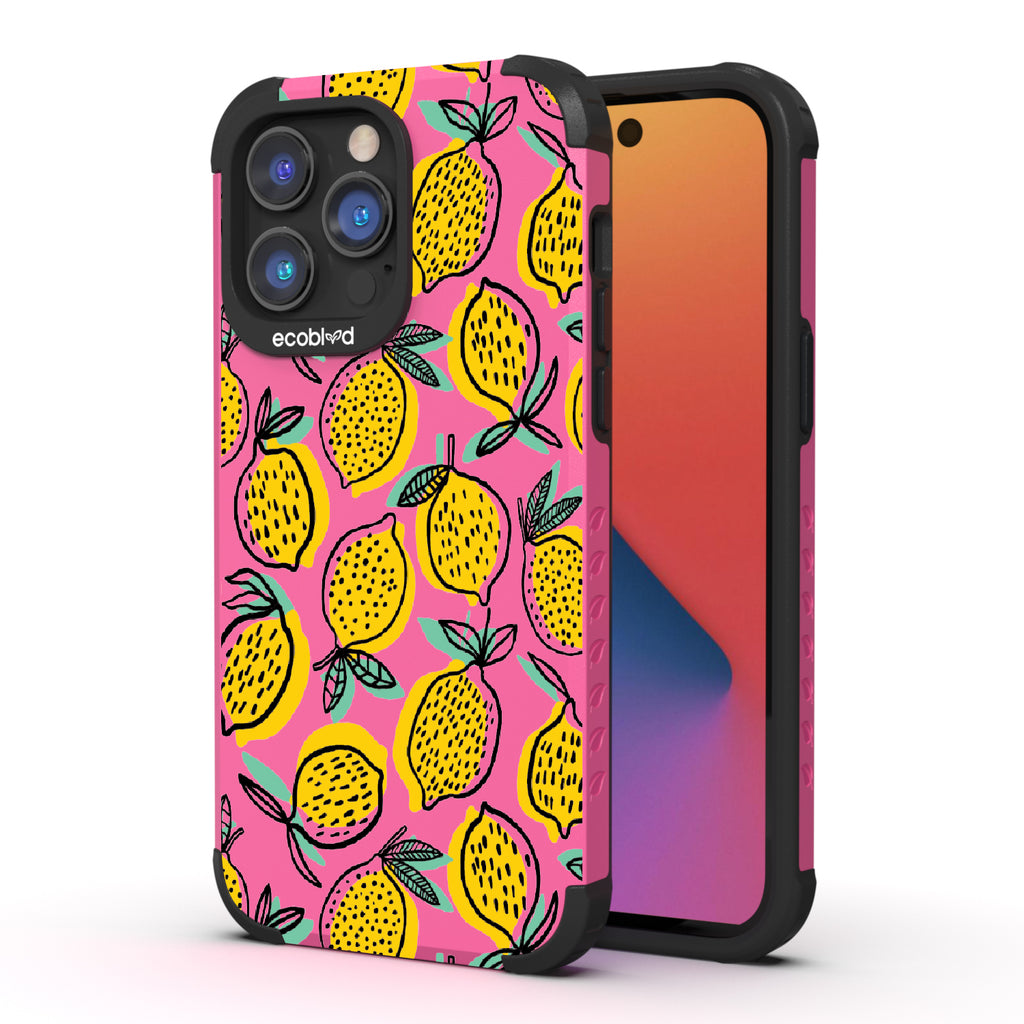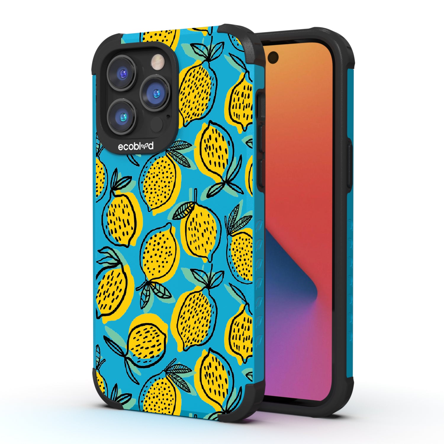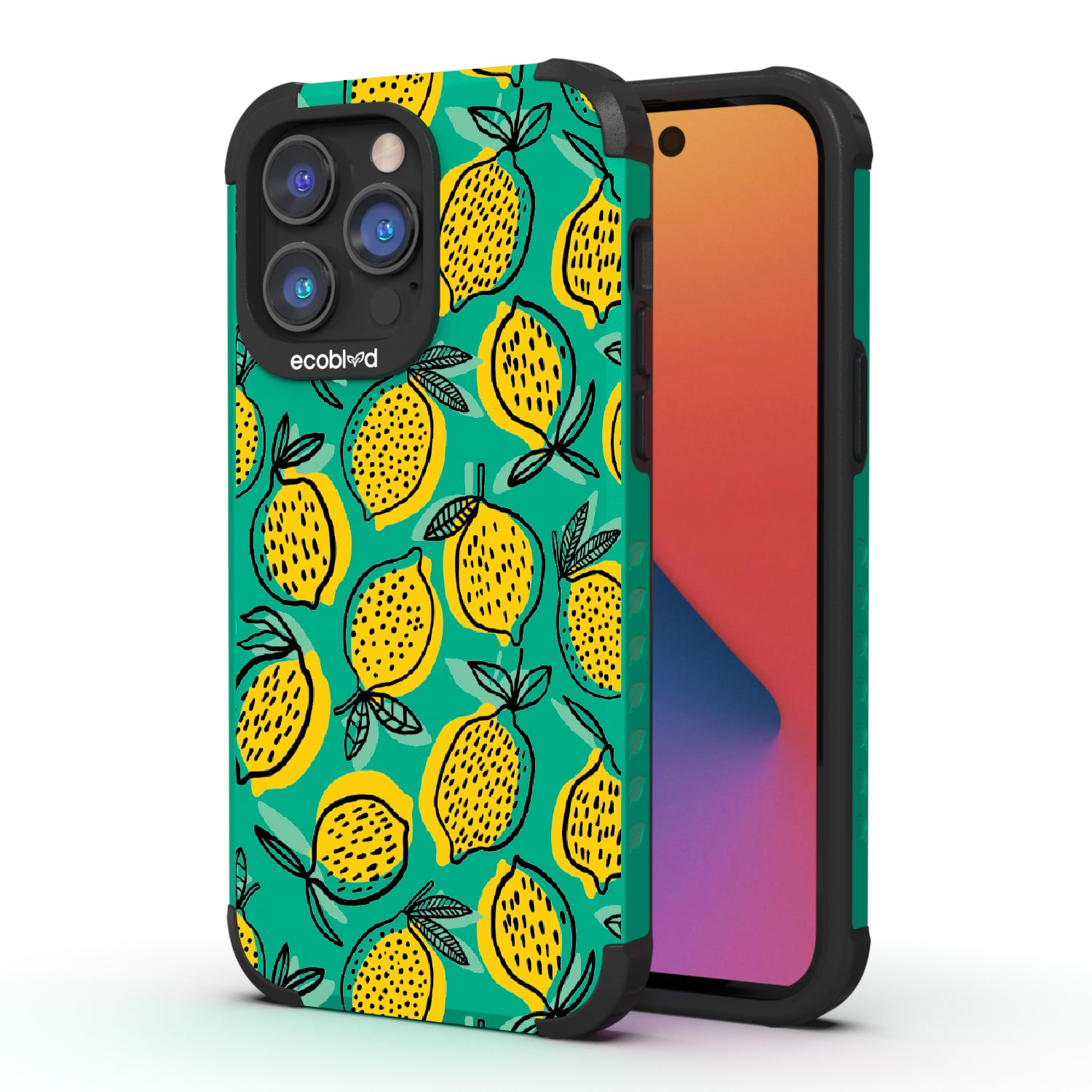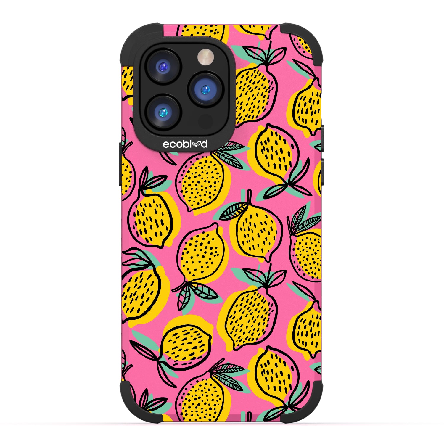 Add a refreshing twist to your style with the Lemon Drop design on our Mojave rugged and compostable iPhone 14 Pro Max phone case. Its retro lemon print is like a slice of sunshine, infusing your look with a pop of vibrant energy. This design is your daily dose of fresh charm that reminds you to enjoy summer's sunny moments. Get ready to squeeze every drop of joy out of life and spruce up your phone with lemony flavor.