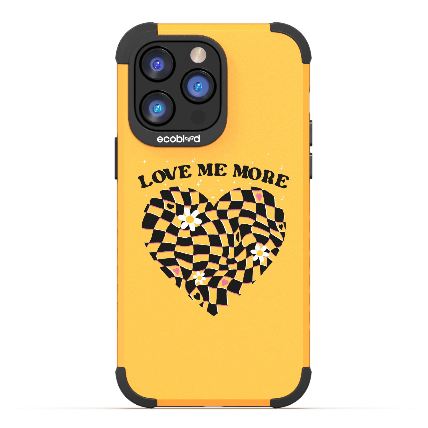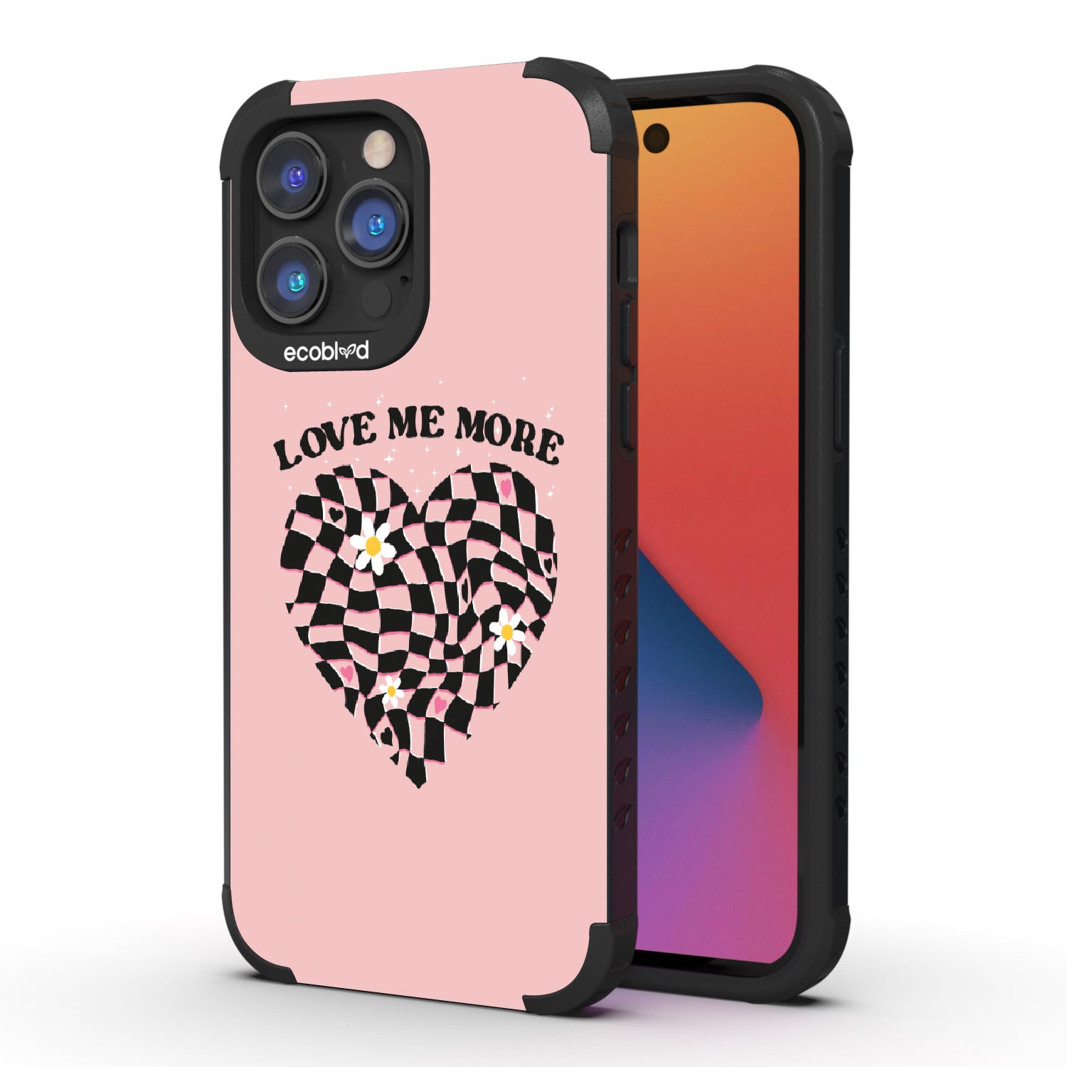 On our Mojave rugged and compostable iPhone 14 Pro Max phone case, Love Me More intricately portrays the language of desire, with a checkered heart adorned by an intoxicating symphony of blossoms. The patterns speak volumes of yearnings, while the text passionately conveys the plea for more passion, leaving an indelible mark that echoes "Forever in Your Heart."