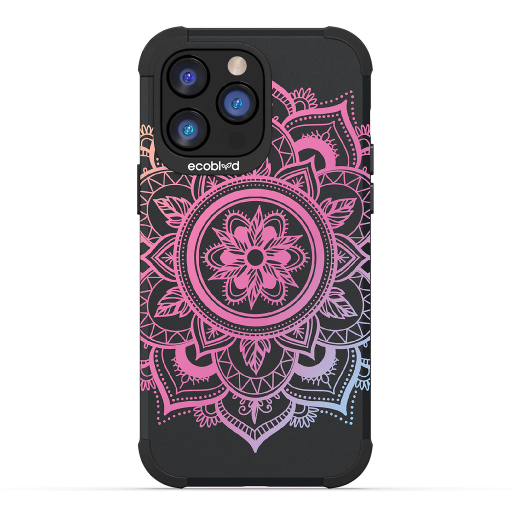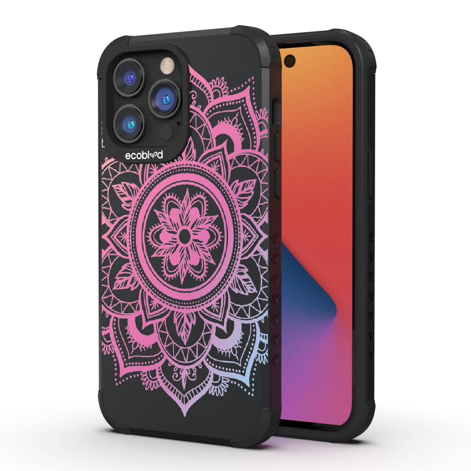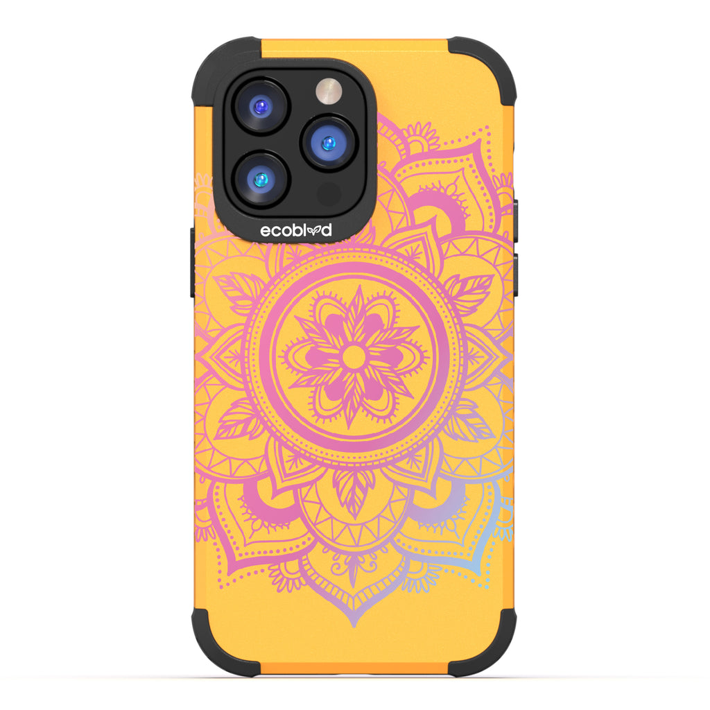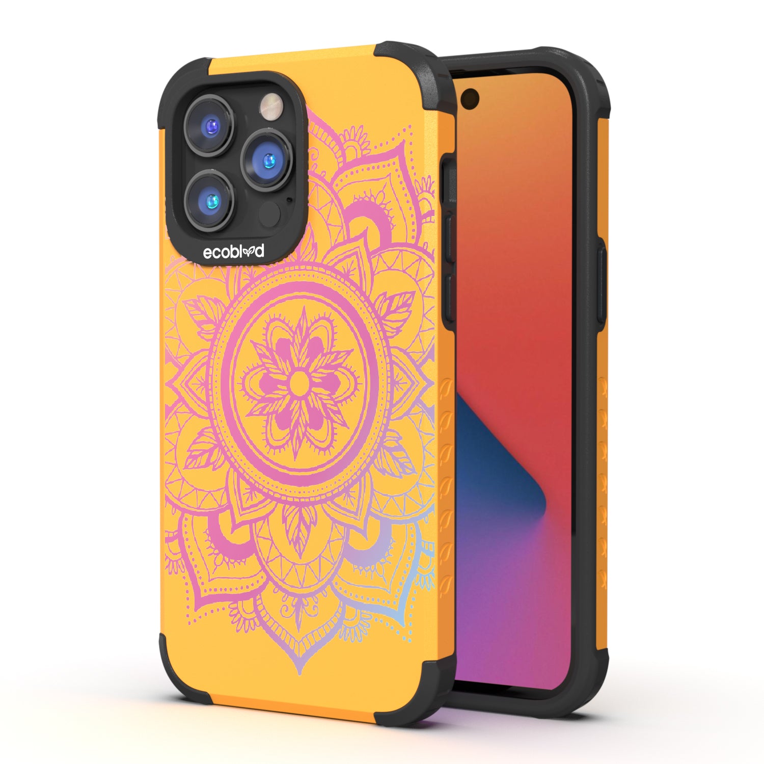 Get closer to inner peace and let your spiritual side shine in the Mandala design on our Mojave rugged and compostable iPhone 14 Pro Max phone case as it centers your phone and style! Choose from five vibrant colors: Midnight Black, Cascade Blue, Foliage Green, Illuminating Yellow, and Wildflower Pink.