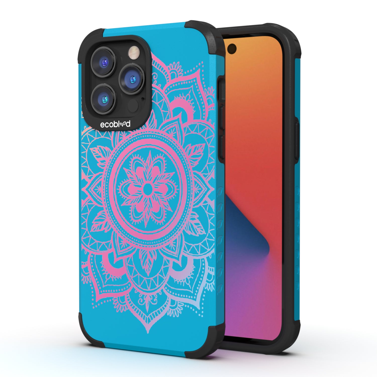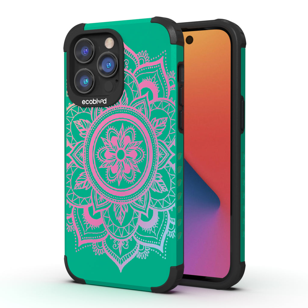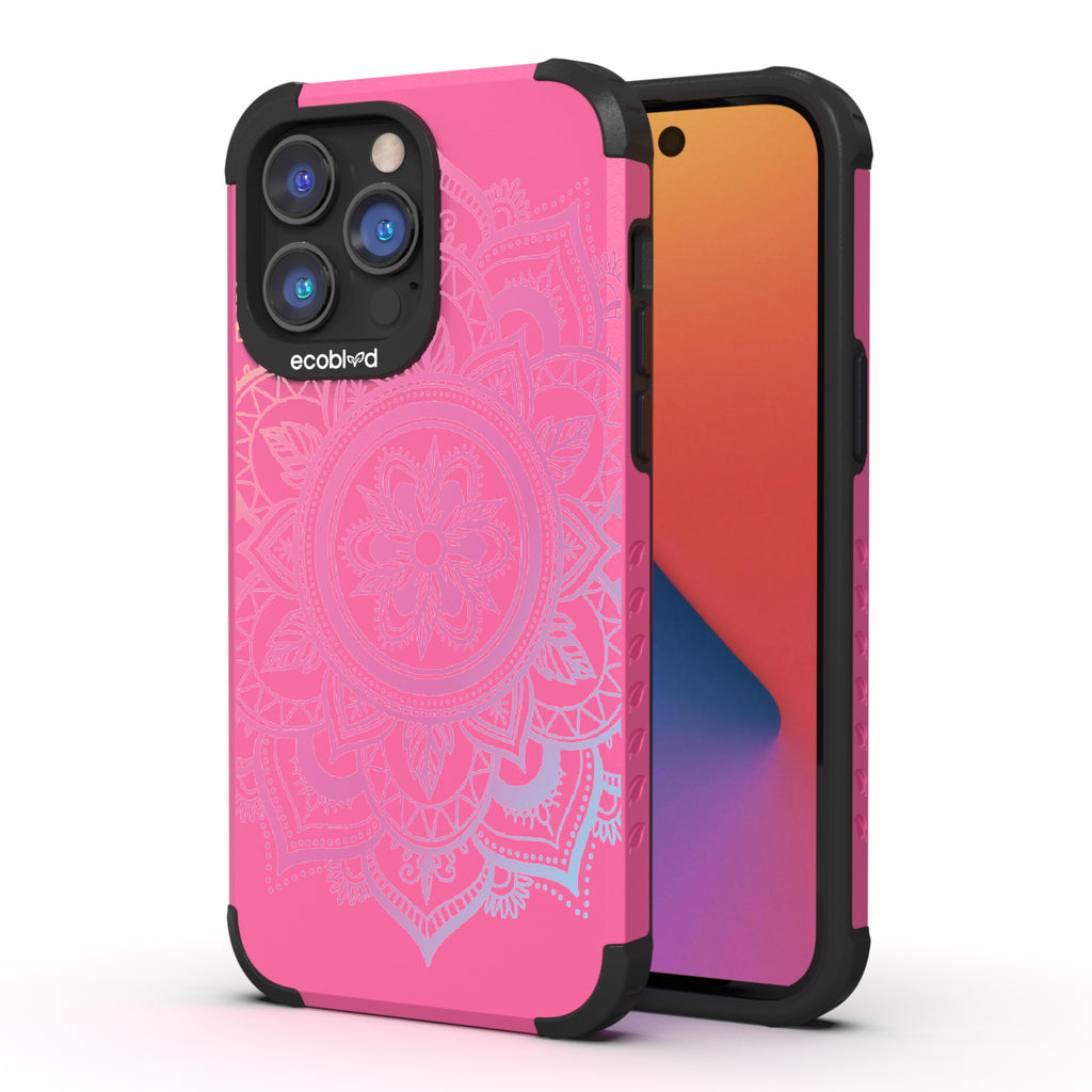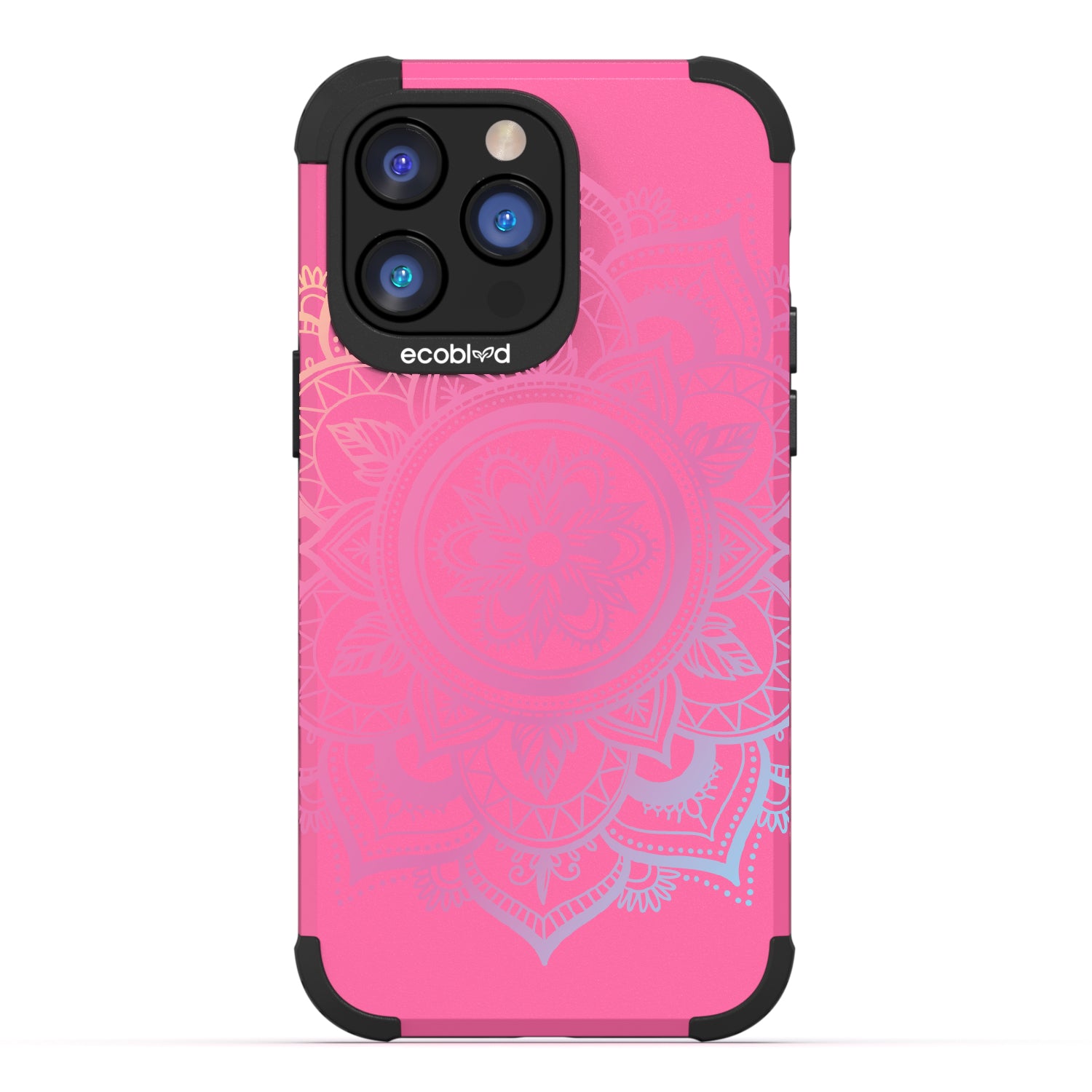 Get closer to inner peace and let your spiritual side shine in the Mandala design on our Mojave rugged and compostable iPhone 14 Pro Max phone case as it centers your phone and style! Choose from five vibrant colors: Midnight Black, Cascade Blue, Foliage Green, Illuminating Yellow, and Wildflower Pink.