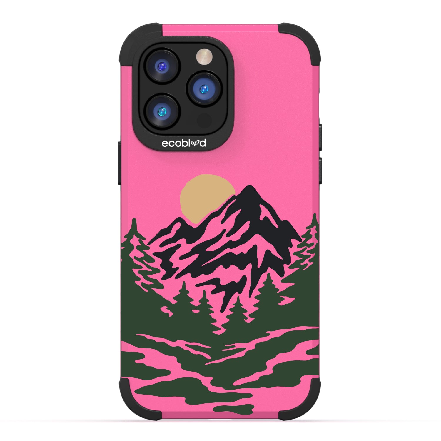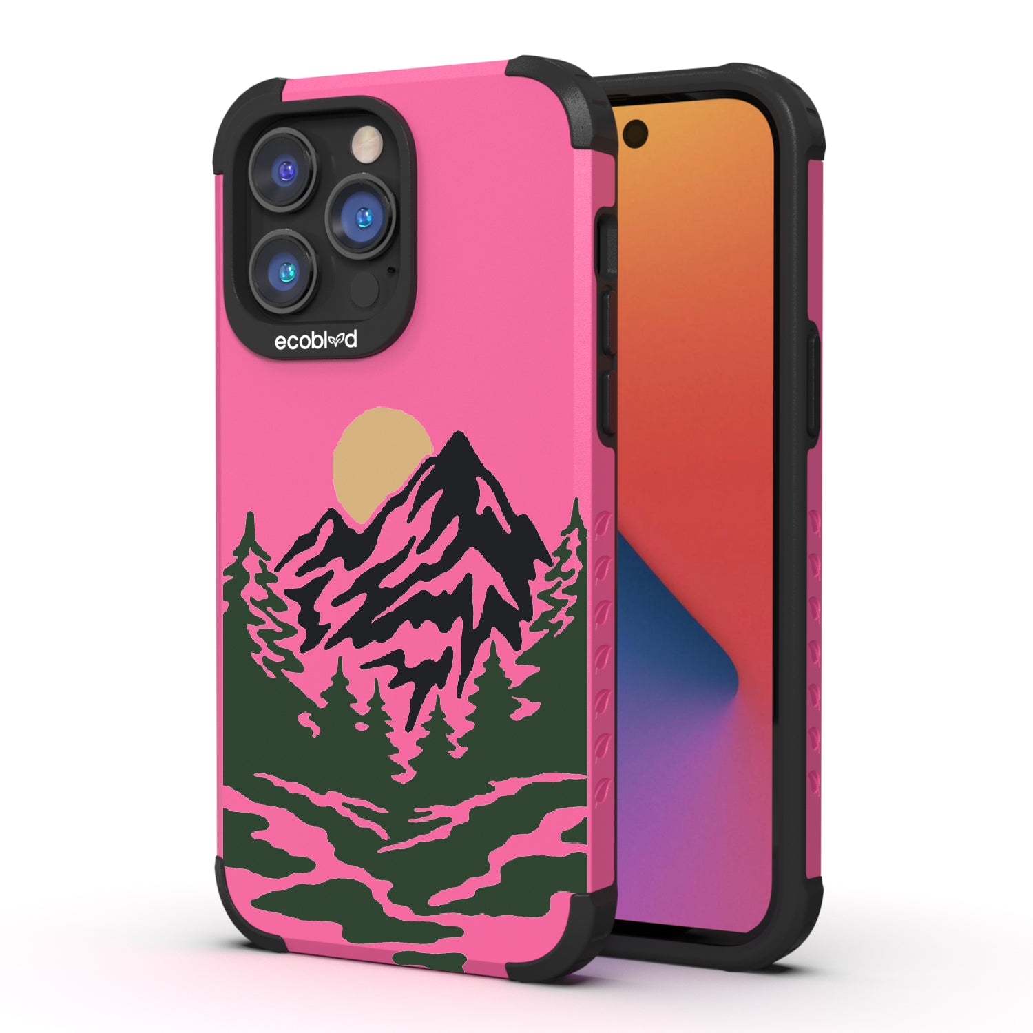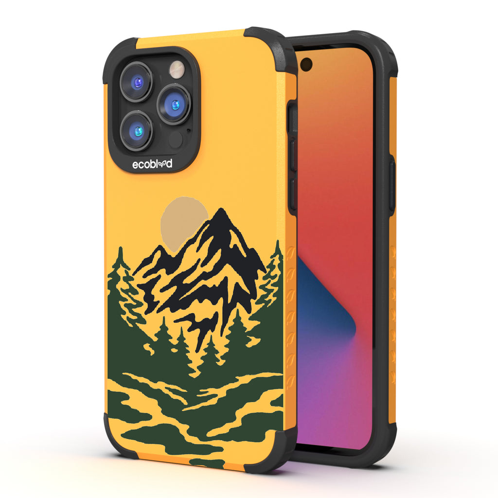Like a breath of fresh air, the Mountains phone design on our Mojave rugged and compostable iPhone 14 Pro Max phone case puts your phone in the middle of a stunning moonlit wooded mountain trail that captures the excitement of camping and hiking. Choose from five vibrant colors: Midnight Black, Cascade Blue, Foliage Green, Illuminating Yellow, and Wildflower Pink.